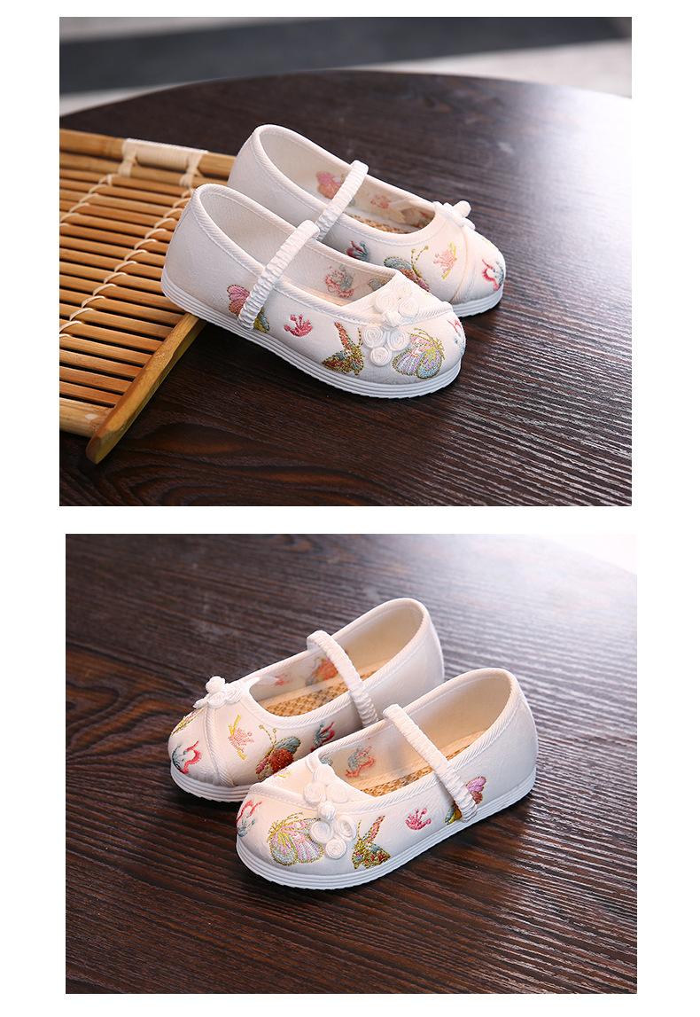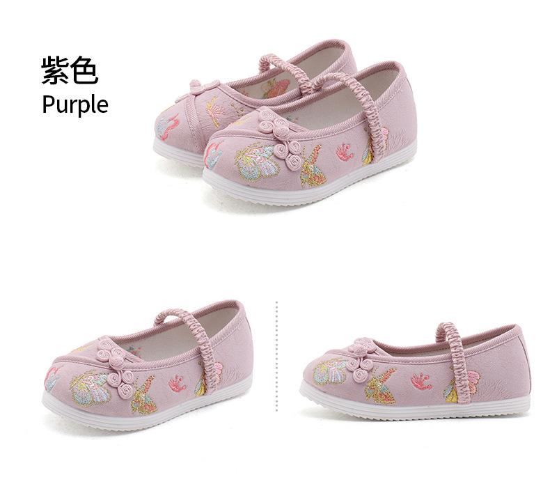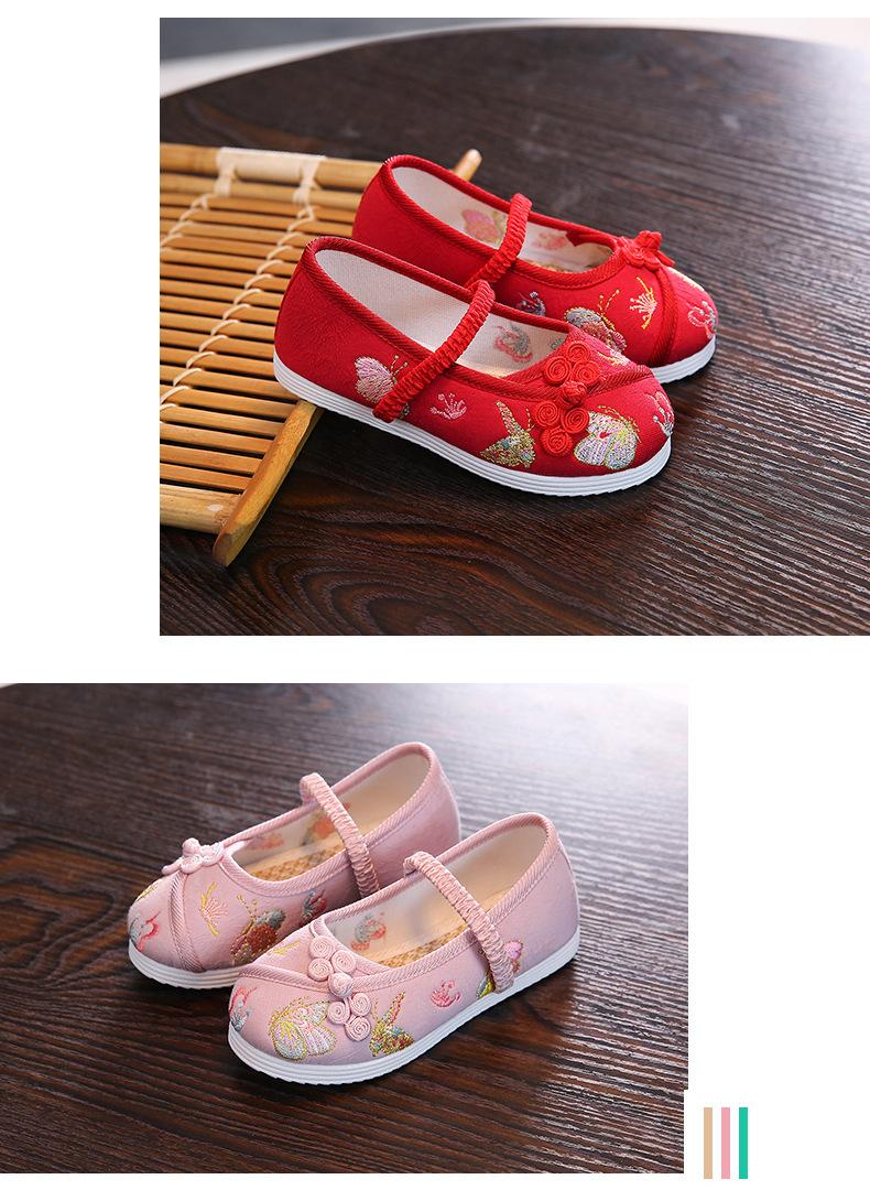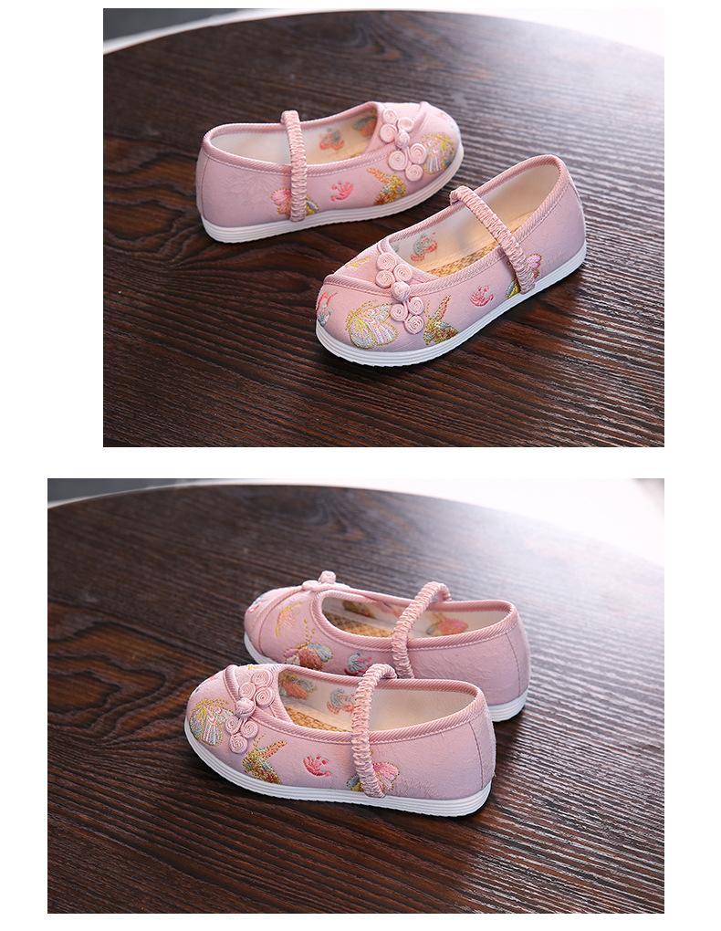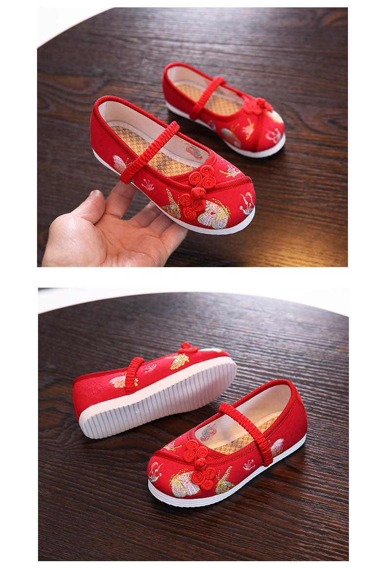 Zapatos Bordados para Niños, Zapatos para Actuación de Disfraces, Zapatos de la Dinastía Han para Niñas, Zapatos Cheongsam de Estilo Antiguo, Zapatos de Tela de Disfraz de Estilo Chino Antiguo de Beijing