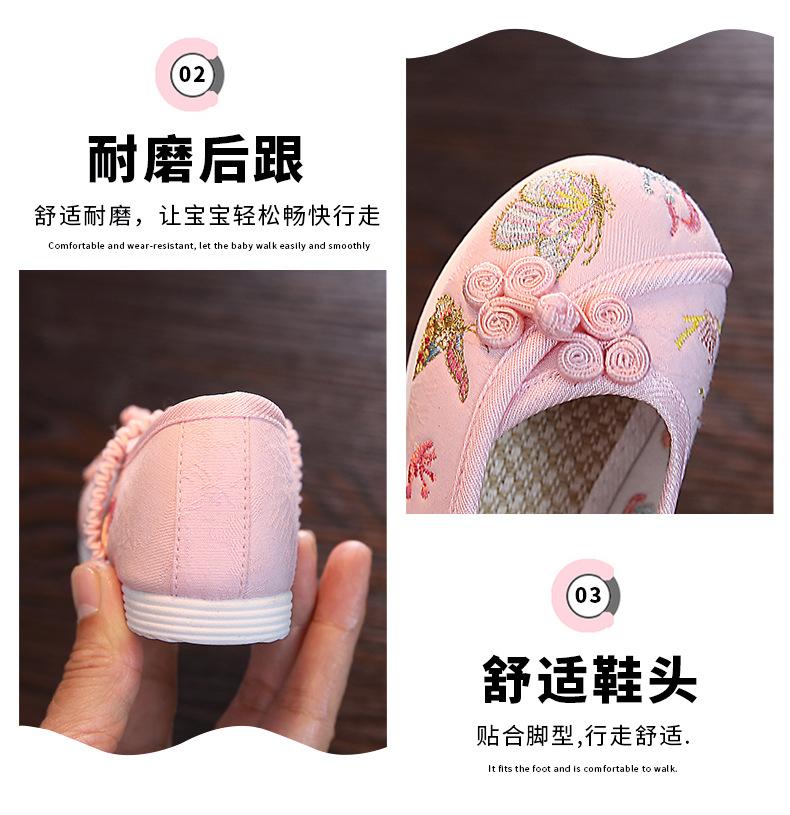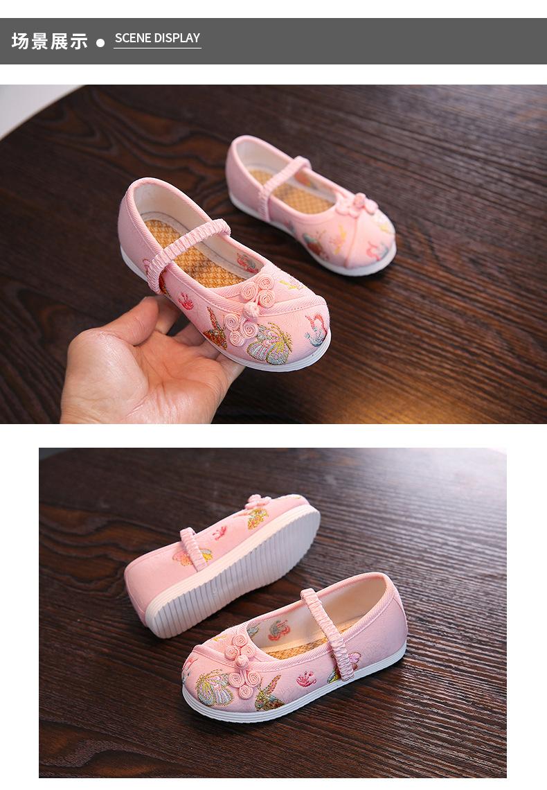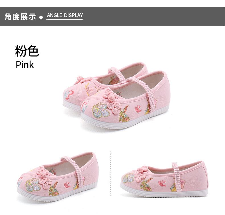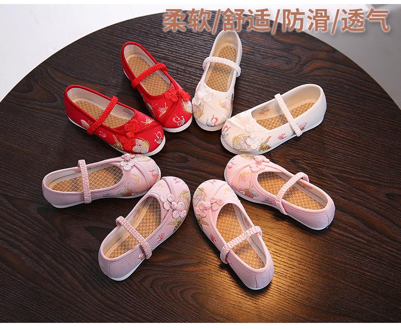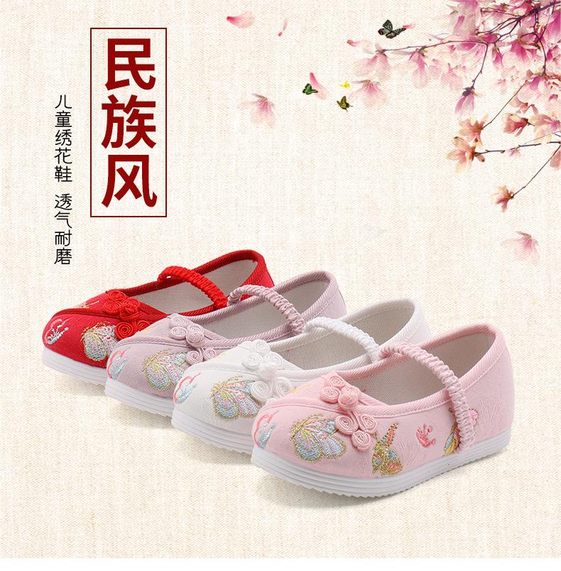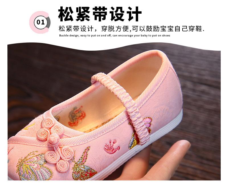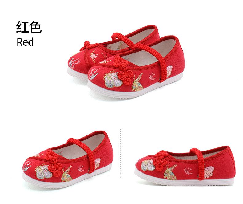 Zapatos Bordados para Niños, Zapatos para Actuación de Disfraces, Zapatos de la Dinastía Han para Niñas, Zapatos Cheongsam de Estilo Antiguo, Zapatos de Tela de Disfraz de Estilo Chino Antiguo de Beijing