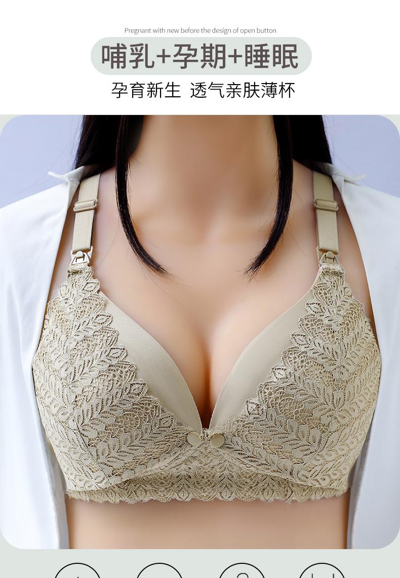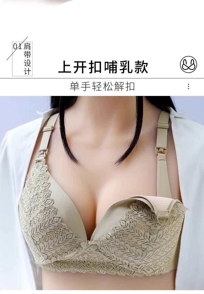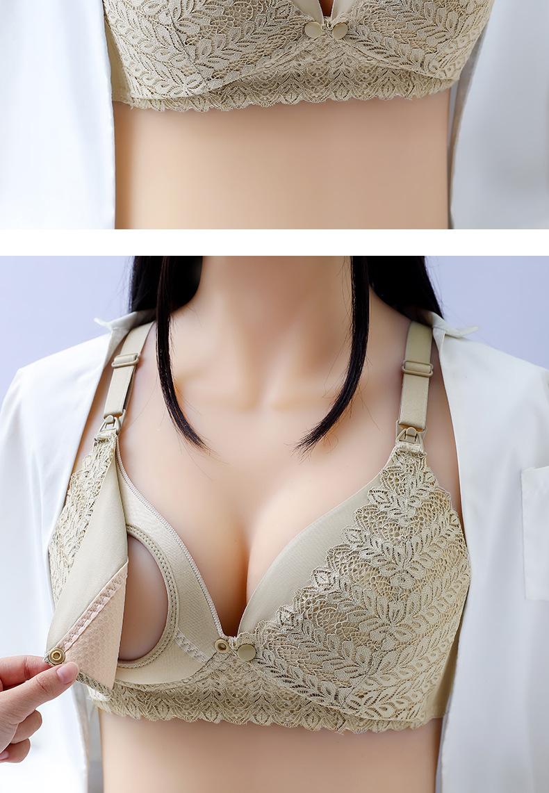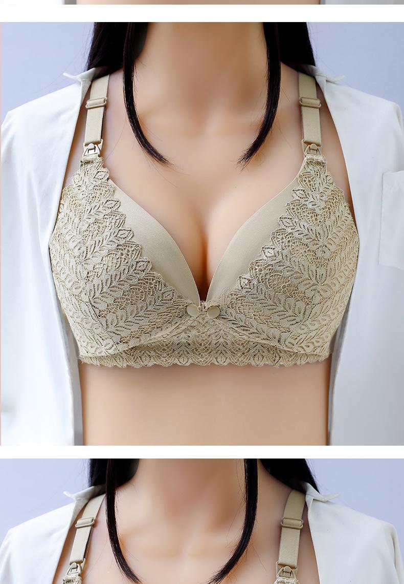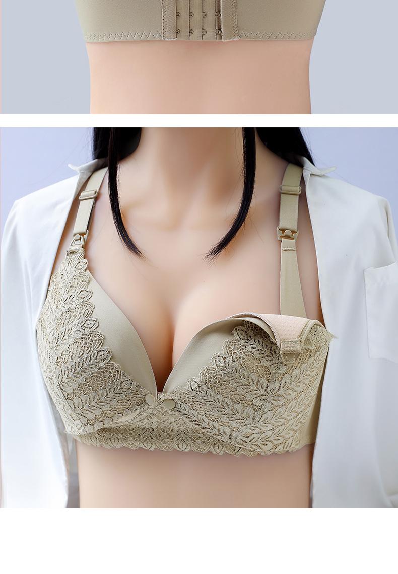 Sujetador de lactancia posparto con aros de acero, encaje fino, parte superior abierta, botones, ropa interior