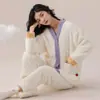 Pijama de lana coral para mujer, otoño e invierno, grueso y cálido, de franela, ropa de casa