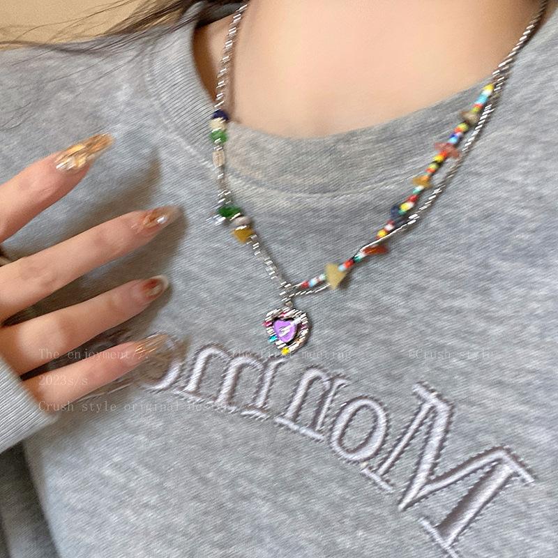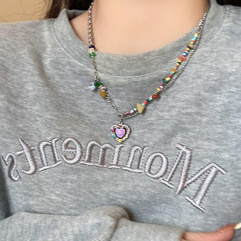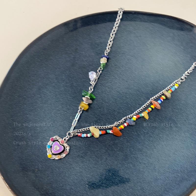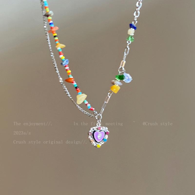 Collar con colgante de gota de amor y piedras de colores para mujer, verano 2023, nuevo nicho, accesorios, internet, popular, dulce, fresco, cadena de especias.