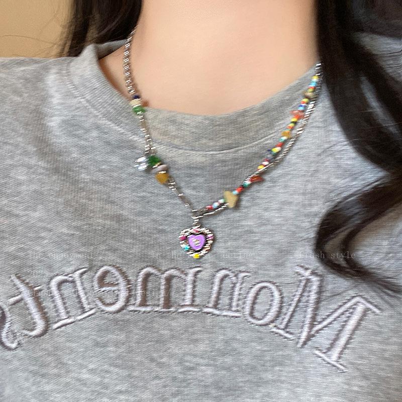 Colorful Stone Love Necklace M-188, Colorful Stone Flower Smiley M-195