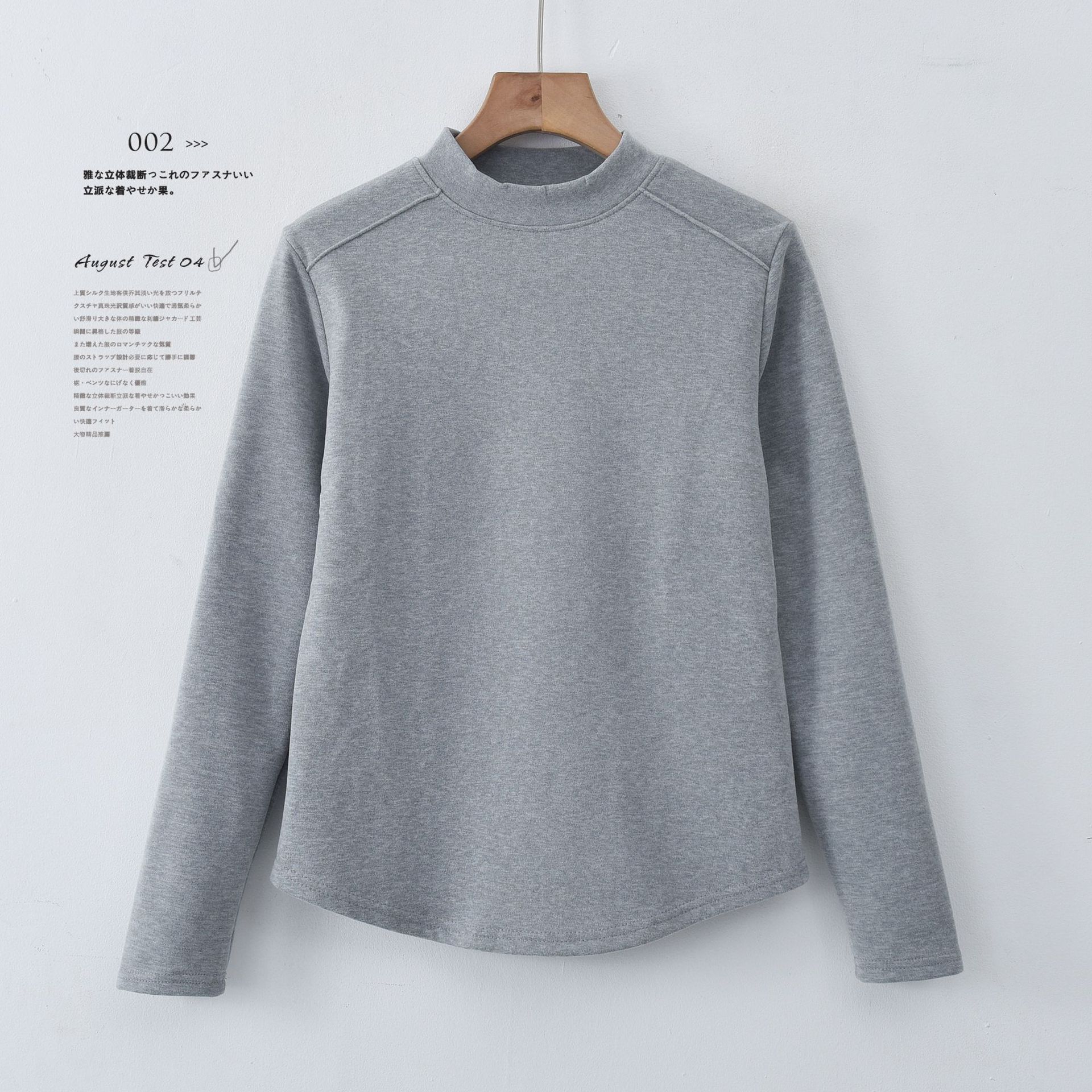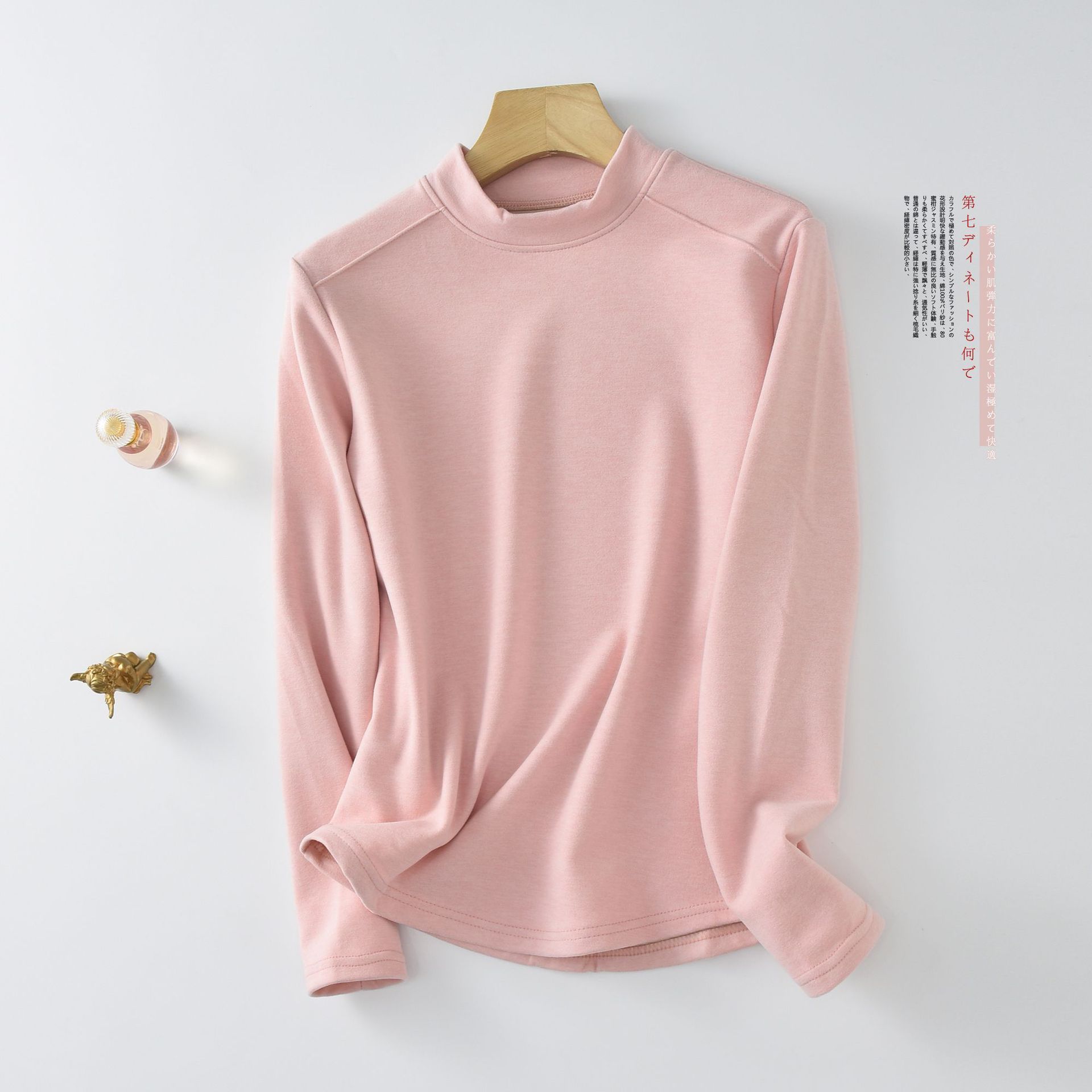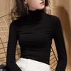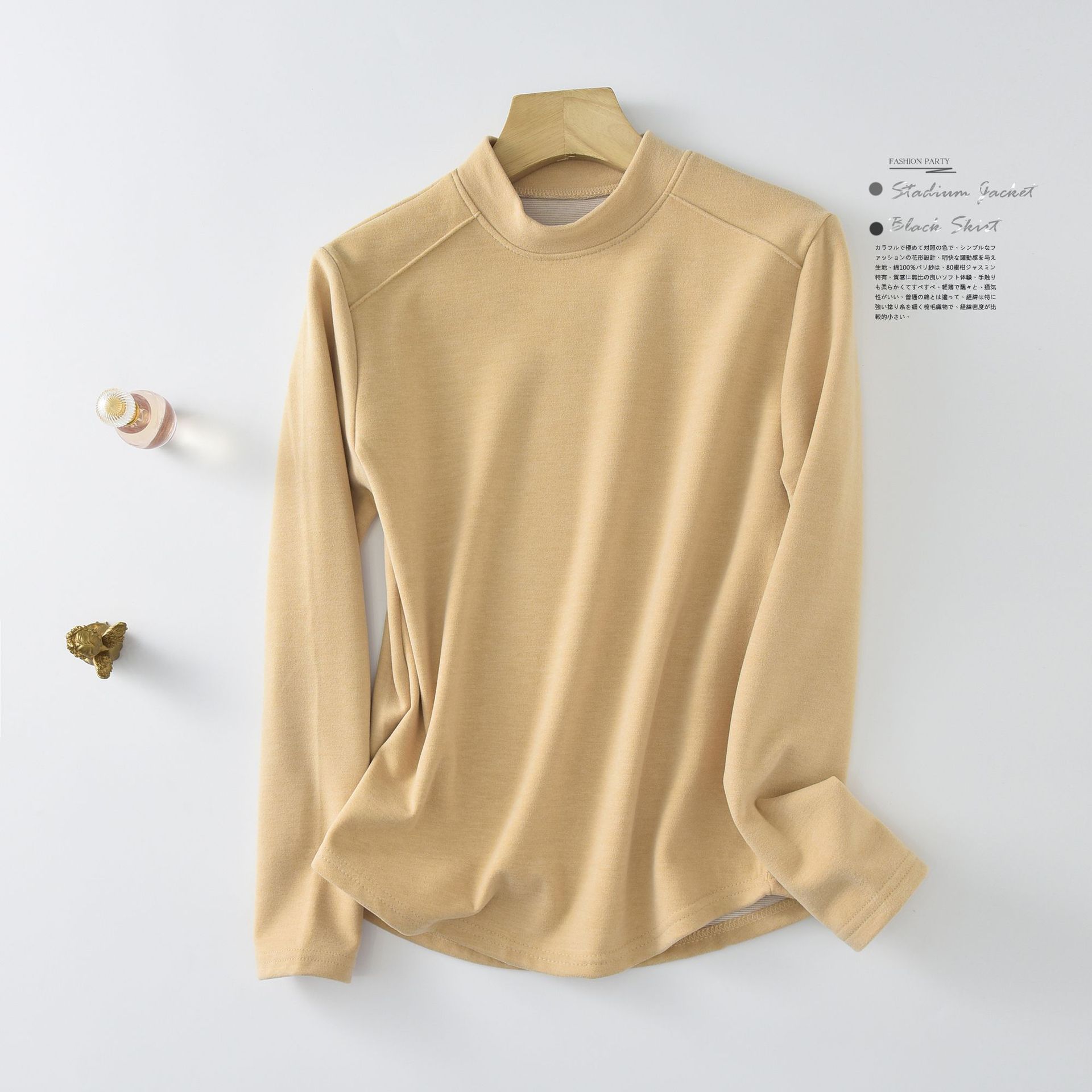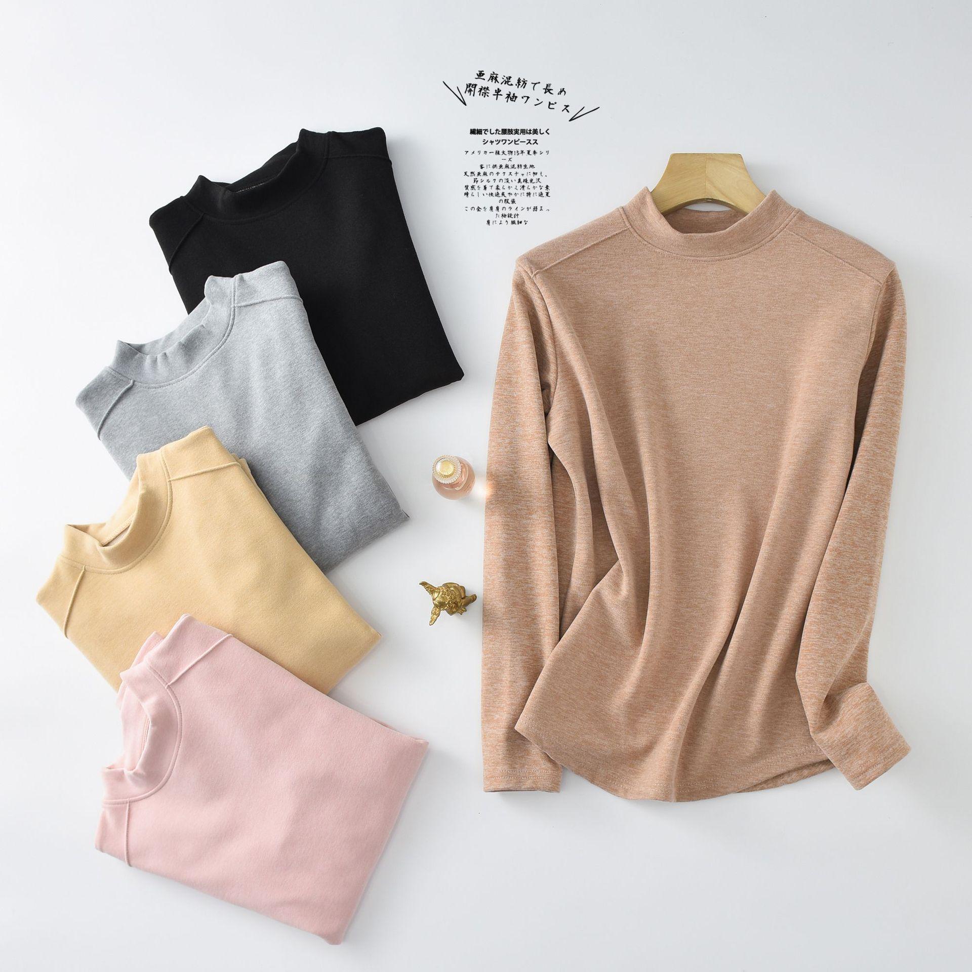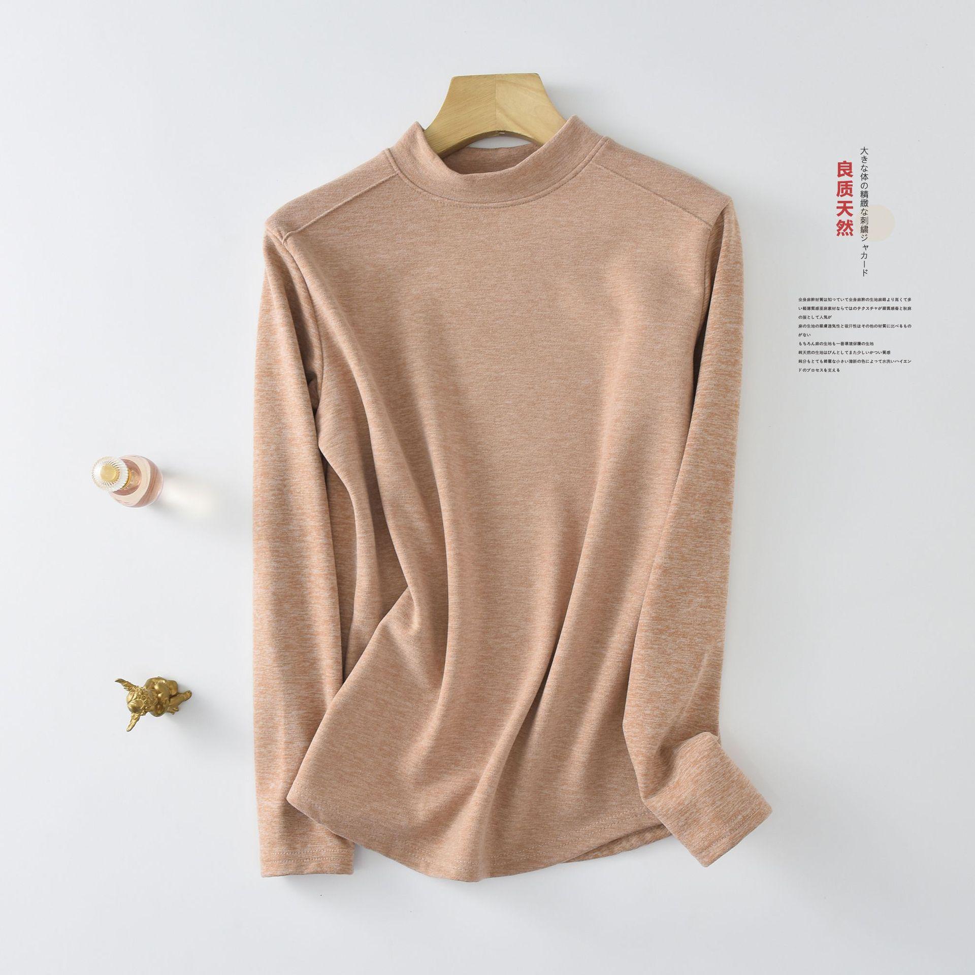 Camiseta cálida de manga larga con cuello alto y terciopelo de seda para otoño e invierno, camisa con parte inferior cepillada para mujer, ropa interior de piel calefactora, ropa de otoño engrosada