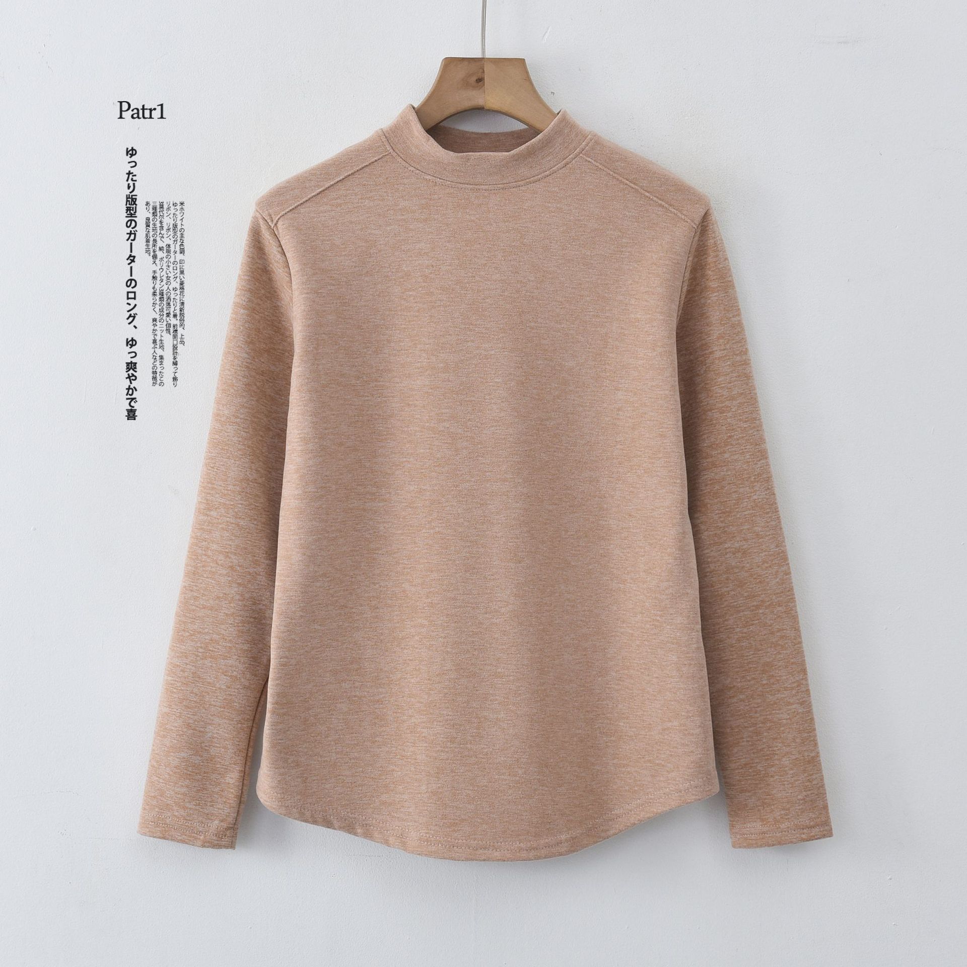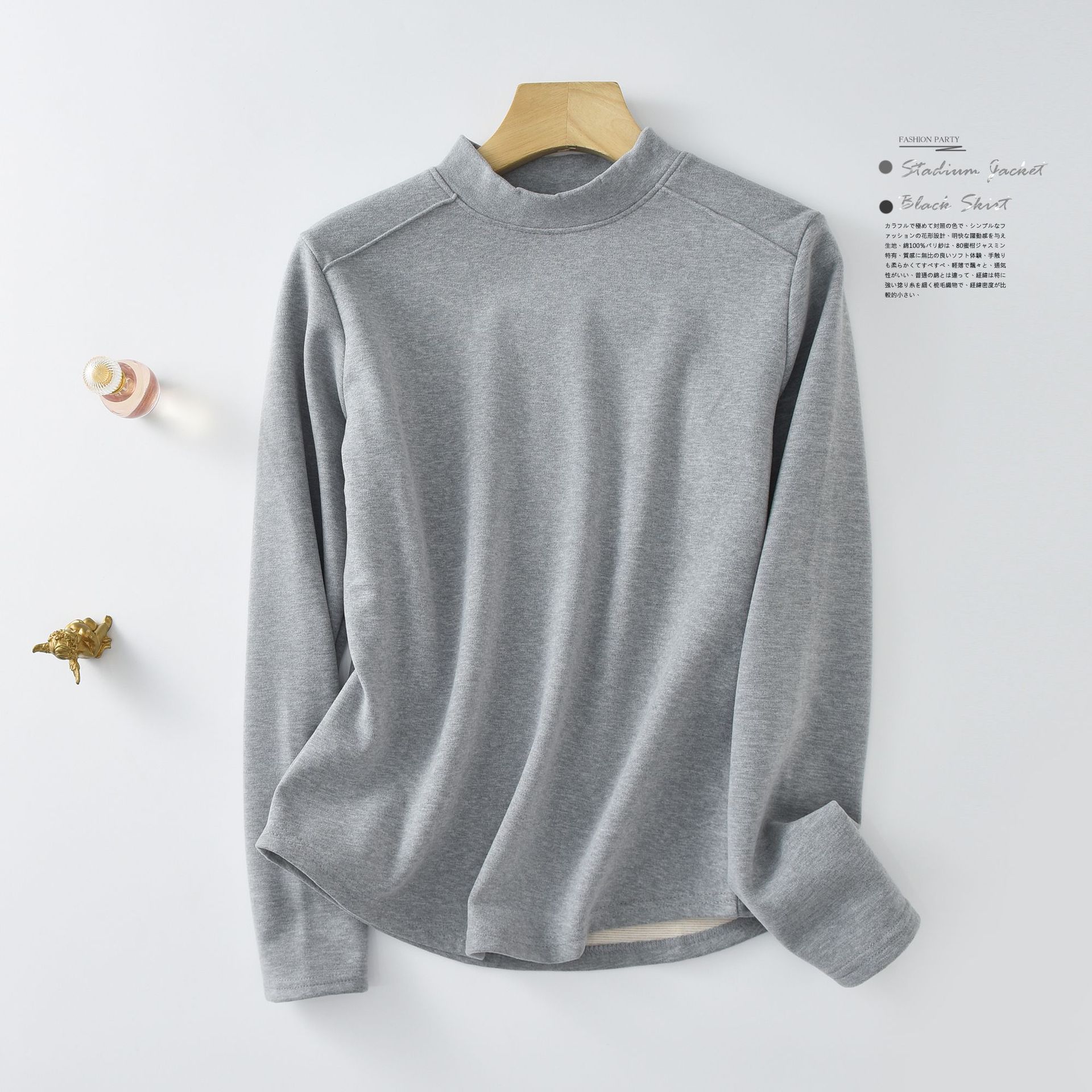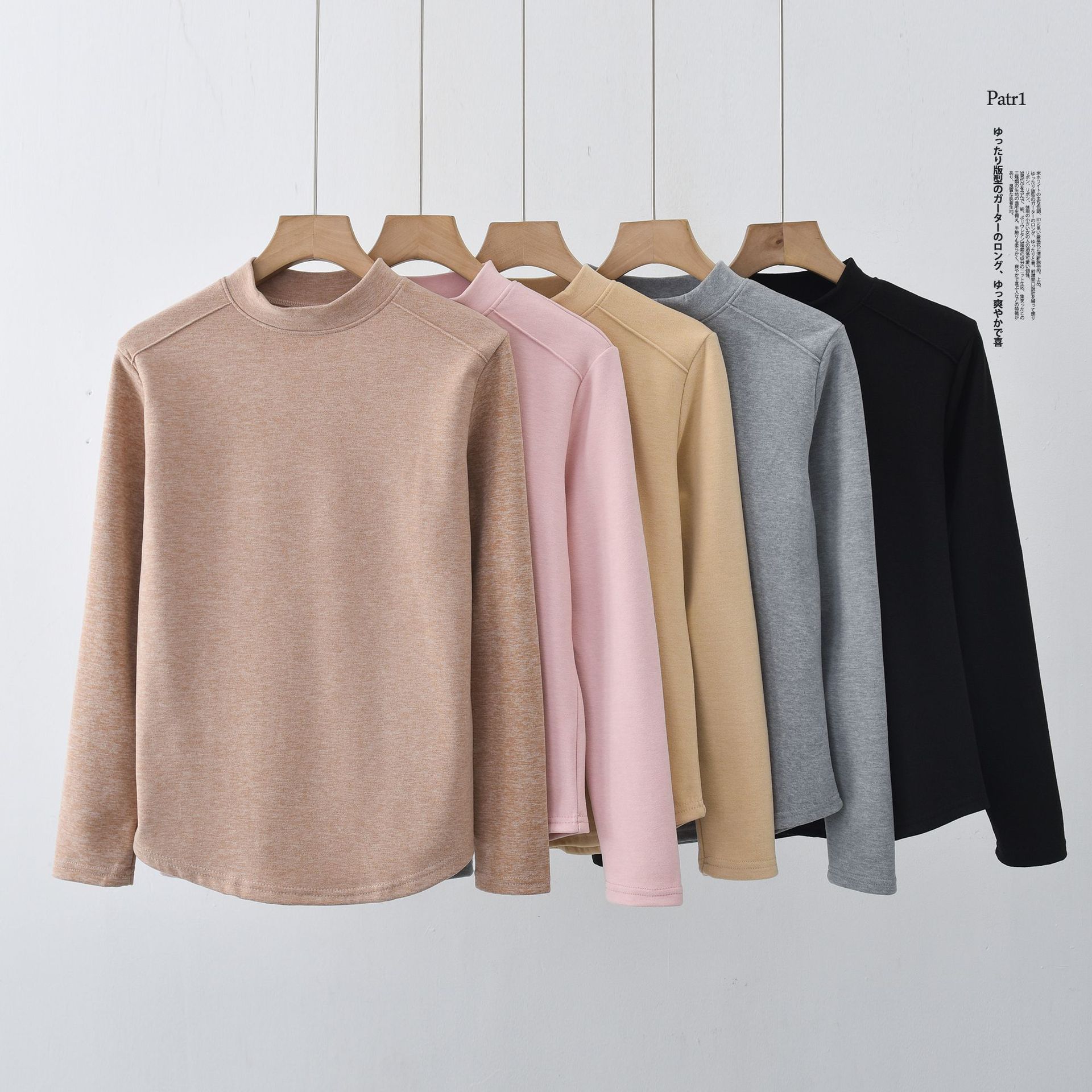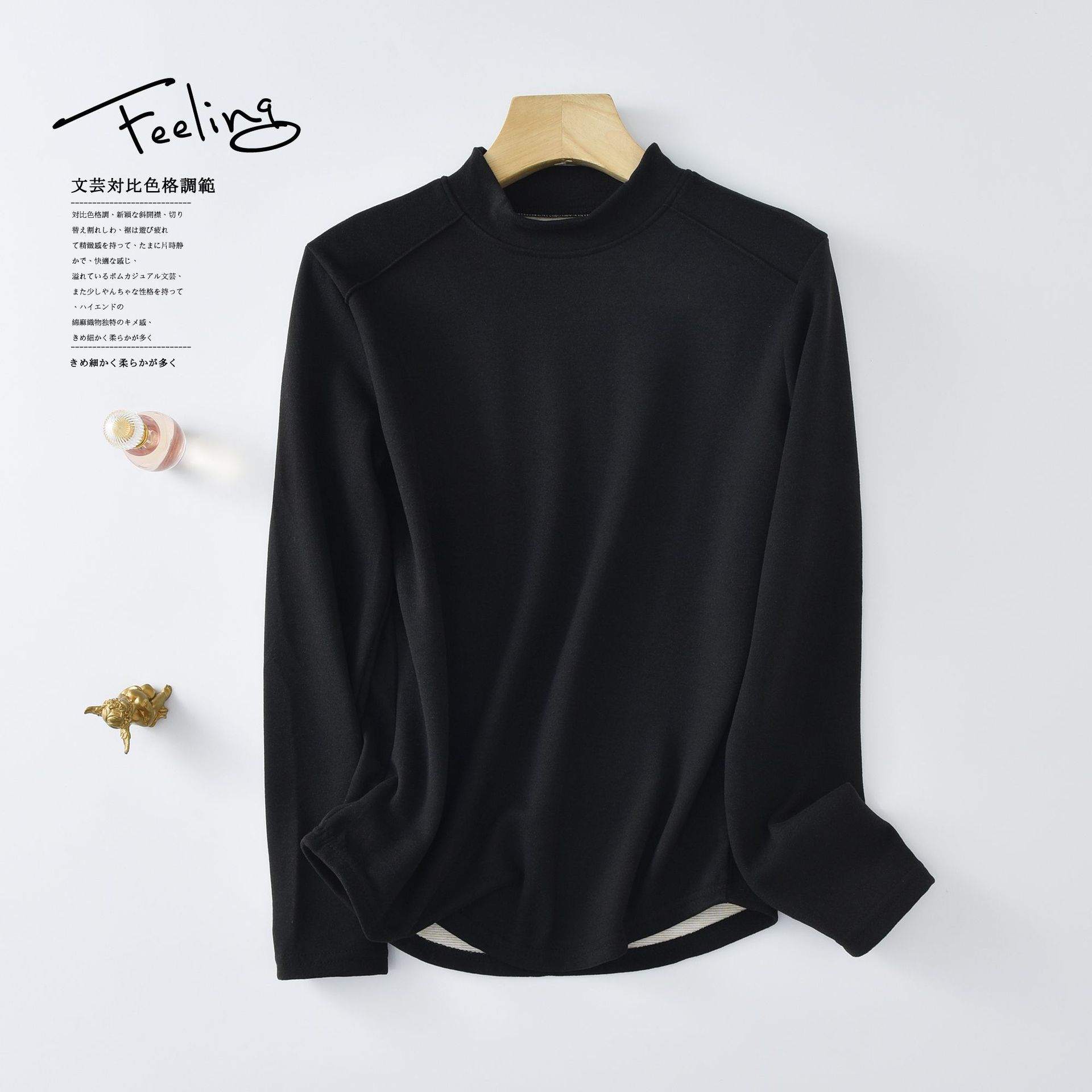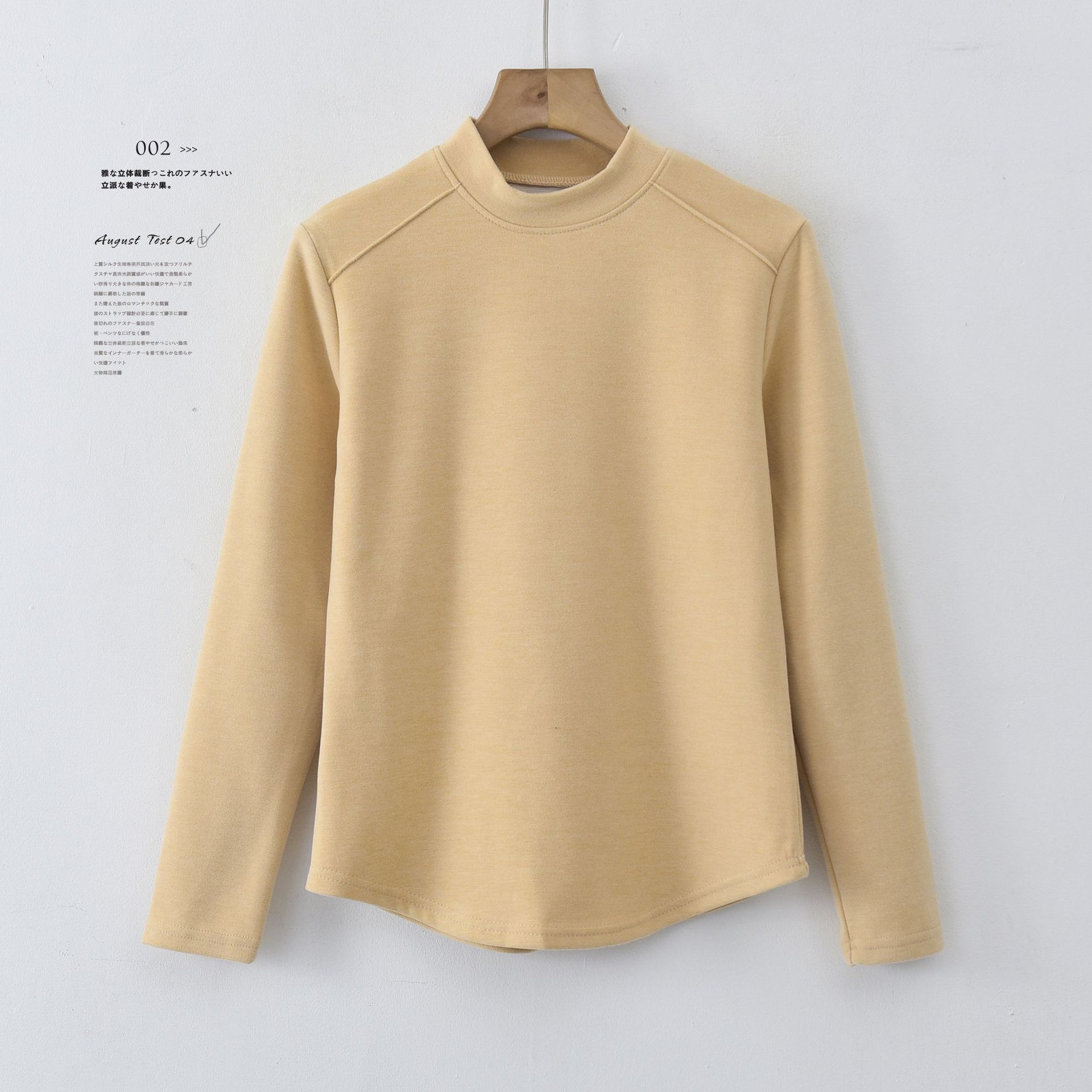Camiseta cálida de manga larga con cuello alto y terciopelo de seda para otoño e invierno, camisa con parte inferior cepillada para mujer, ropa interior de piel calefactora, ropa de otoño engrosada