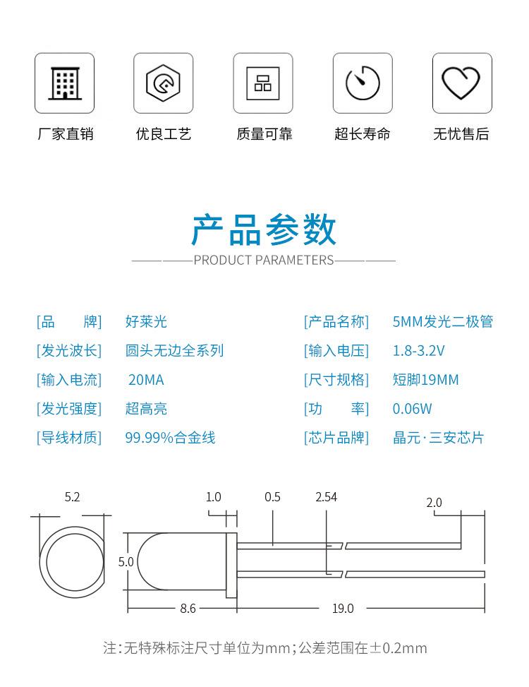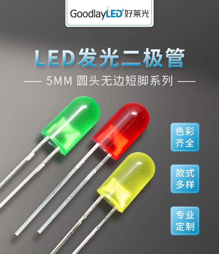F5/5mm cabeza redonda pata corta sin borde color LED diodo emisor de luz blanco rojo azul verde amarillo luz LED en línea cuentas de lámpara