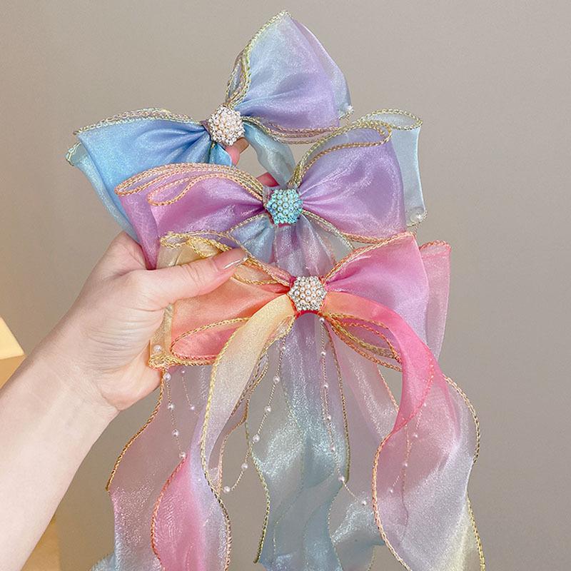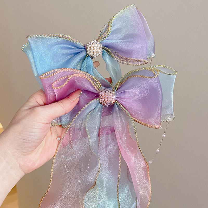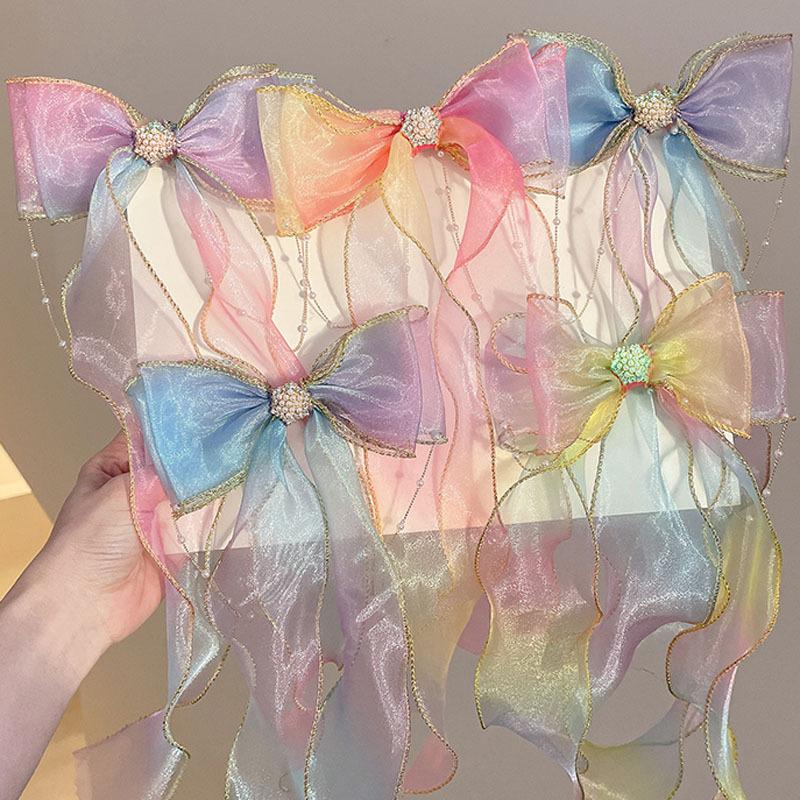 FJ088-1# rainbow pearl chain bow hairpin