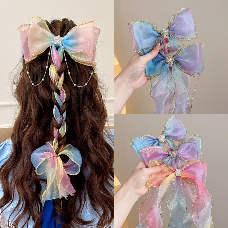 Horquilla con lazo de cinta para el pelo, tocado de princesa con trenzas para niña pequeña, bonita horquilla para el pelo, pinza para niña, accesorios para el pelo para niña