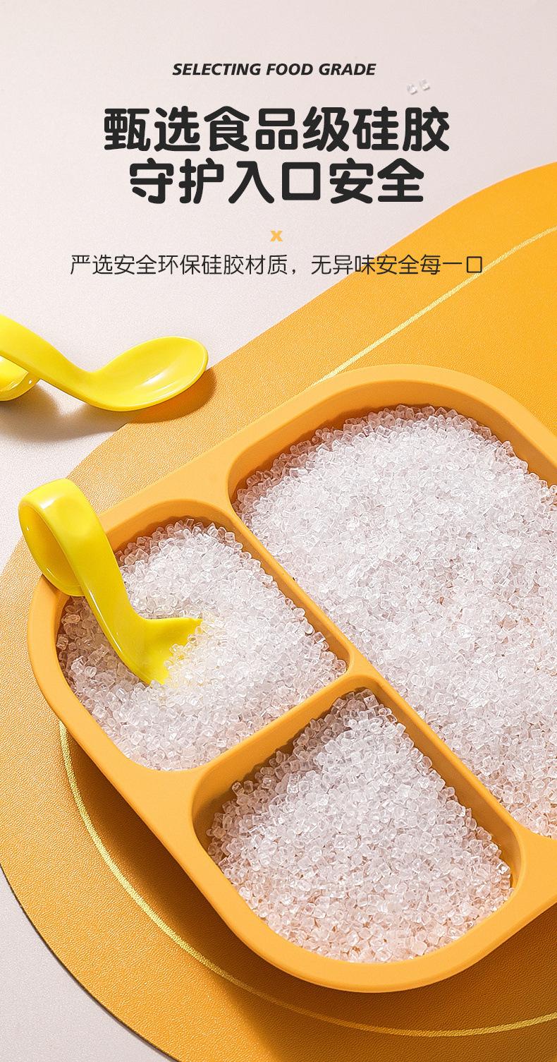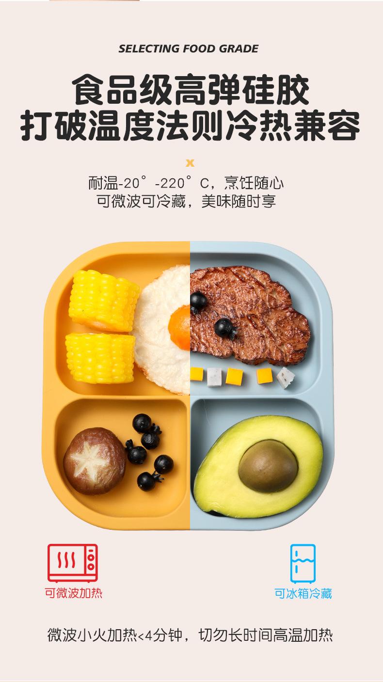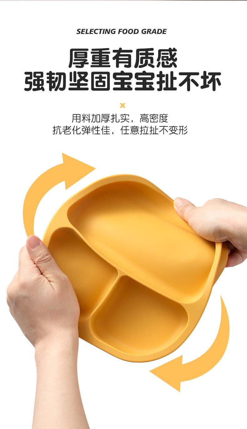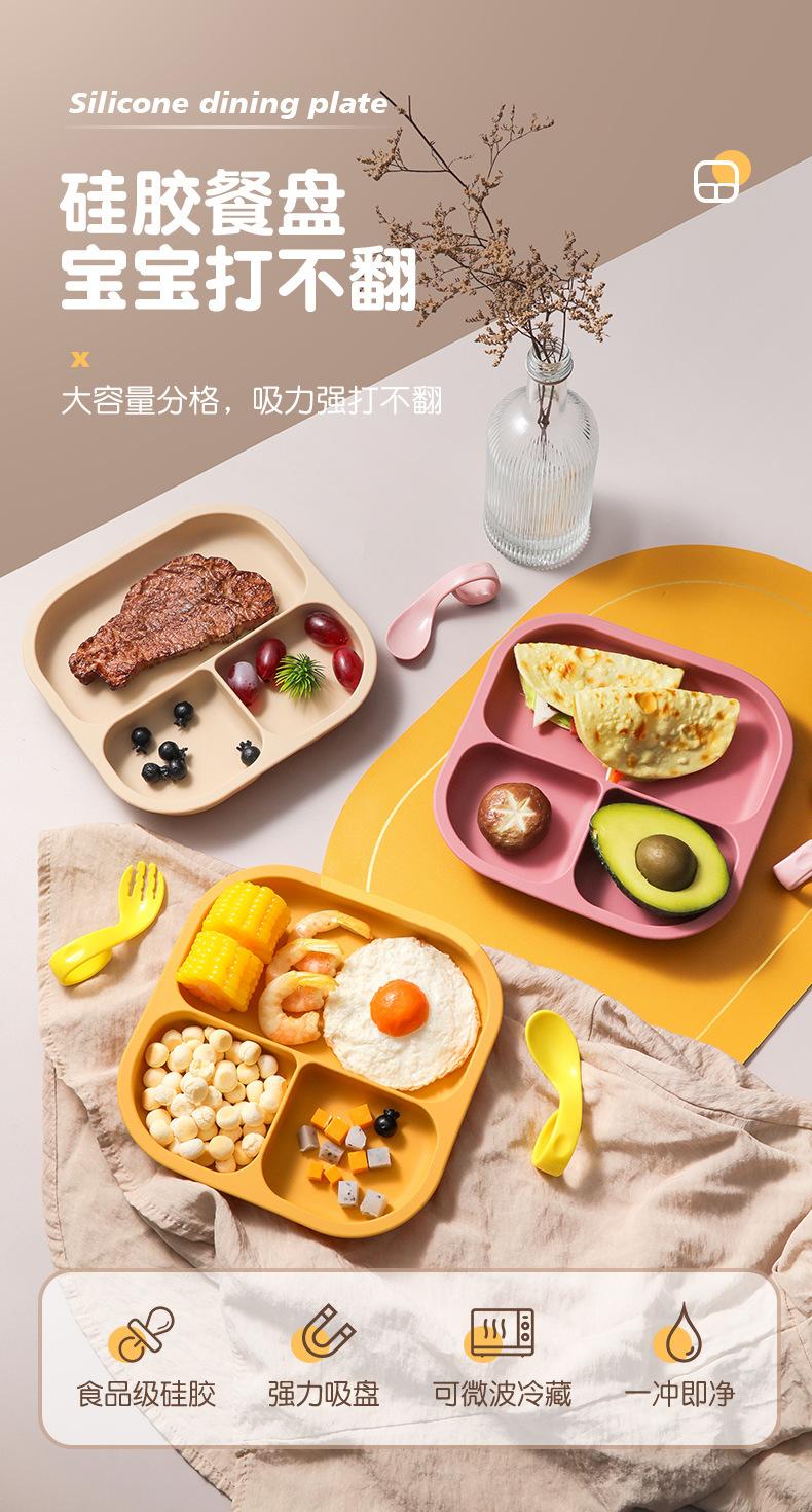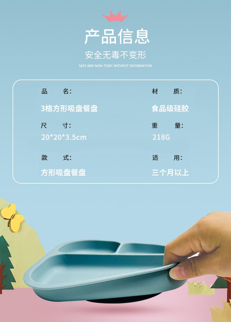 Plato de silicona para niños, apto para alimentos, con ventosa, cuadrado, grueso y resistente a caídas.