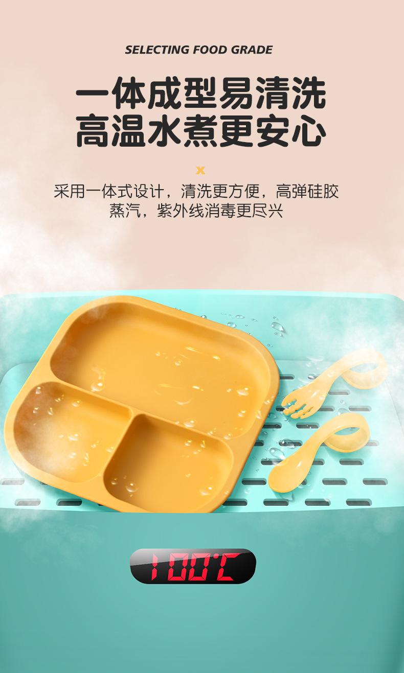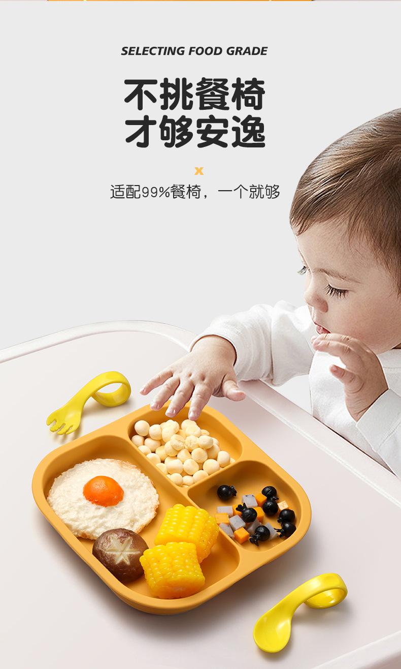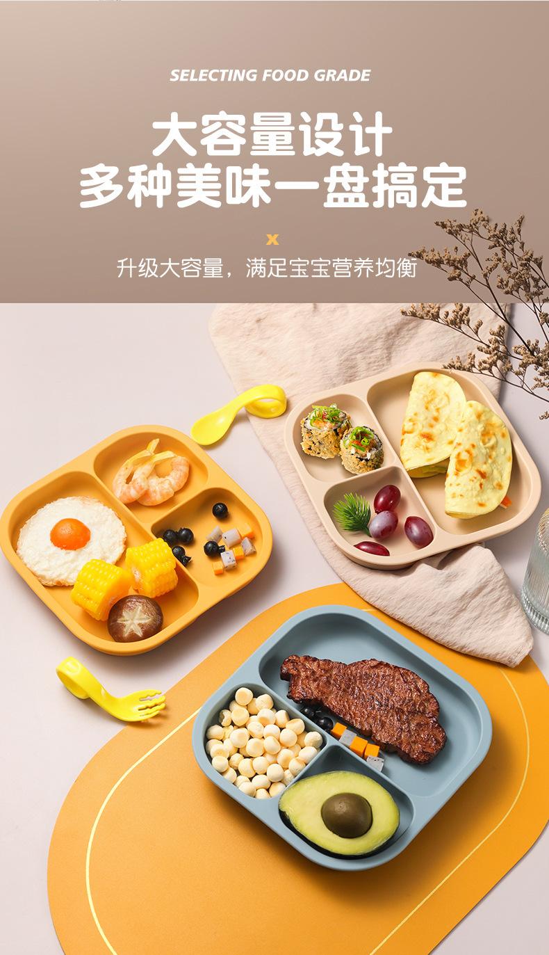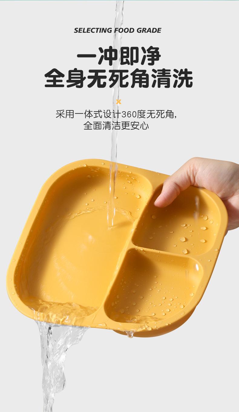 Plato de silicona para niños, apto para alimentos, con ventosa, cuadrado, grueso y resistente a caídas.