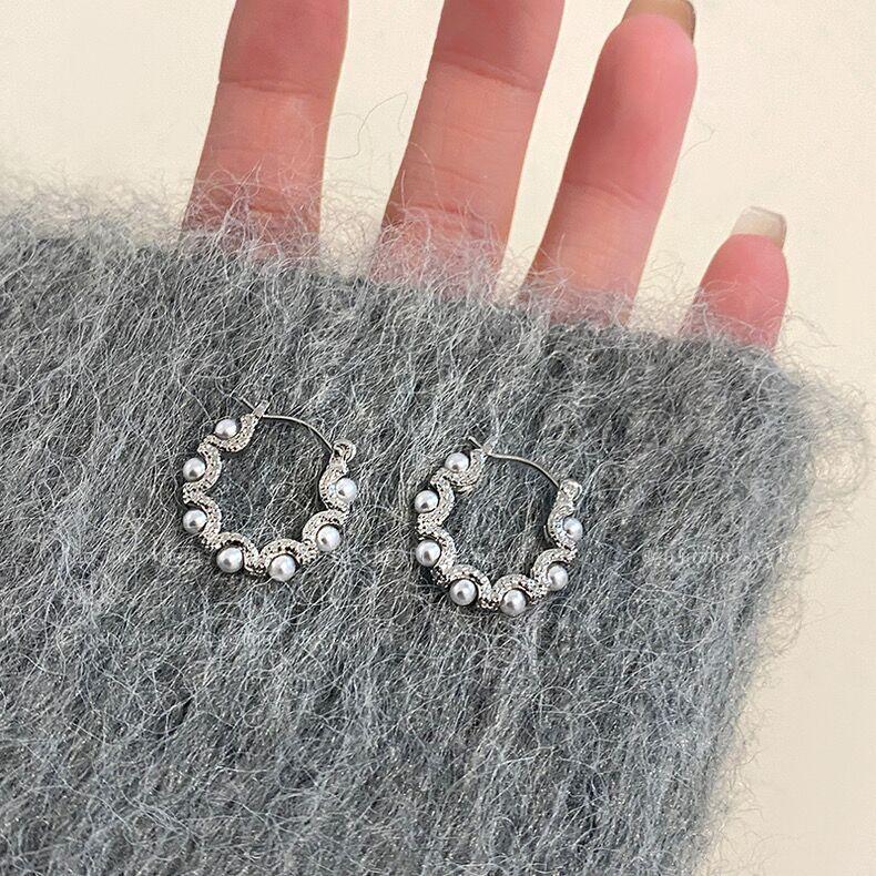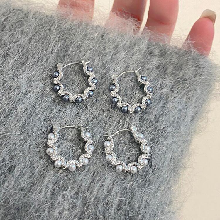 Metal white pearl ear buckle, Metal gray pearl ear buckle