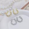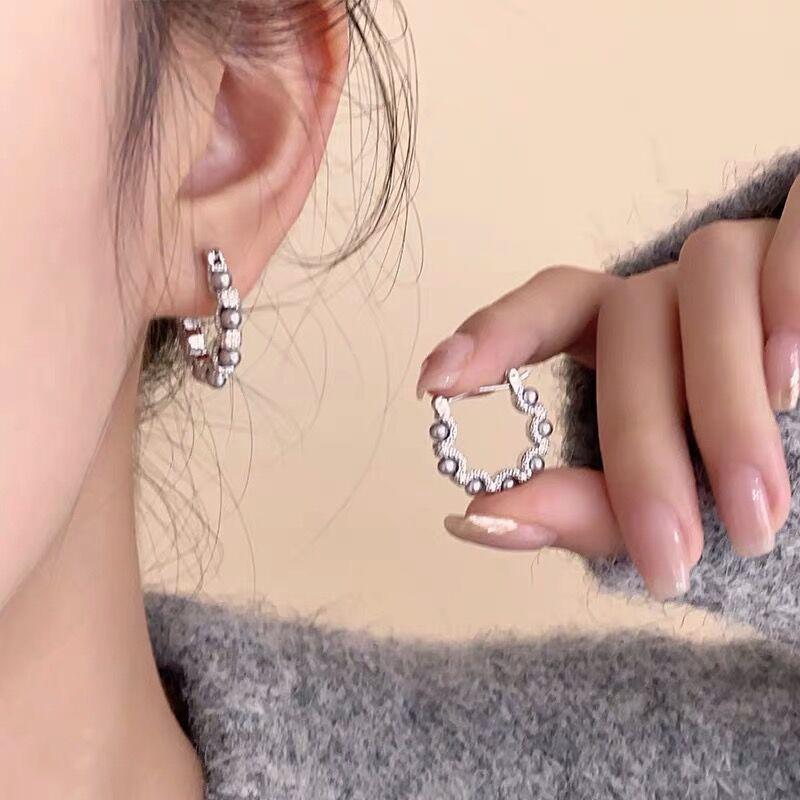 Pendientes de diseño de nicho con forma de círculo de metal y perla para mujer, con hebilla de oreja, estilo retro, ligeros, de lujo, elegantes y con personalidad, a la moda, combinables con todo.