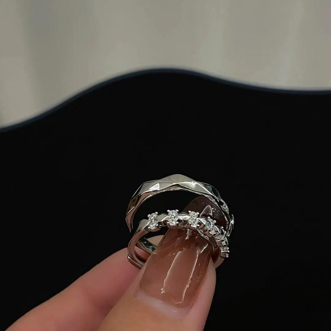 Anillo de plata de ley S925 con forma de corona para parejas, un anillo de apertura con un diseño de nicho ligero y lujoso para hombres y mujeres, venta al por mayor.