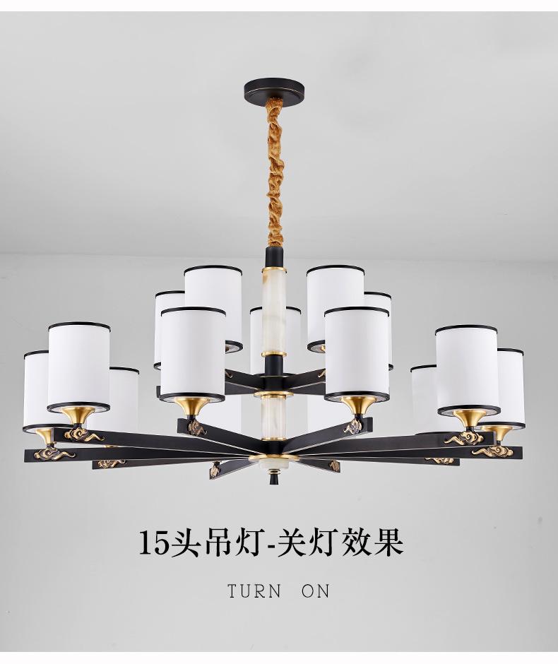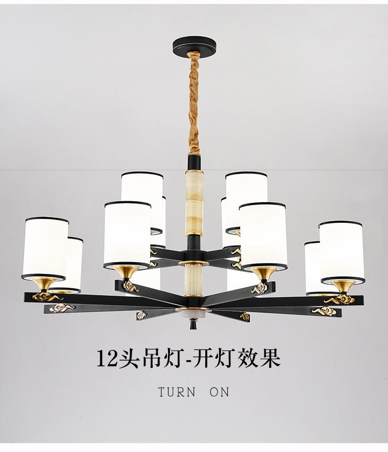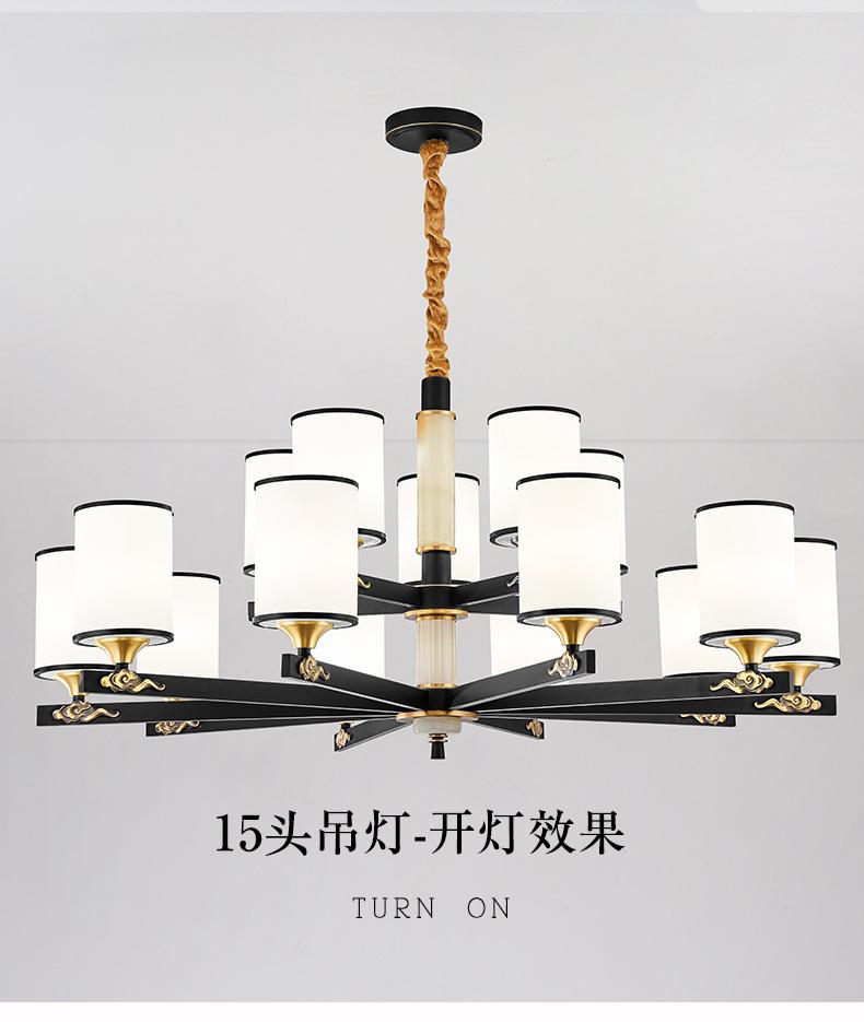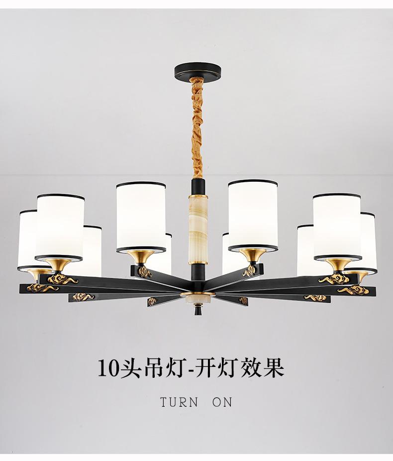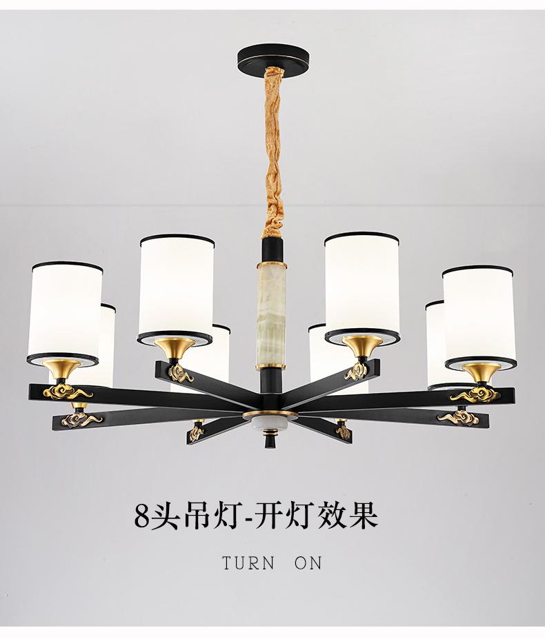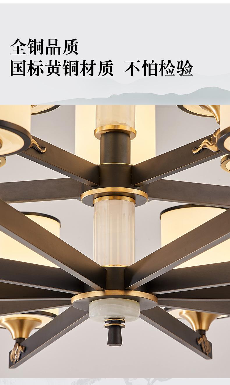Nuevo candelabro de estilo chino para sala de estar, lámpara de cobre, luz de estilo chino, lujo simple y moderno, lámpara de comedor, dormitorio, ambiente, lámpara Zen