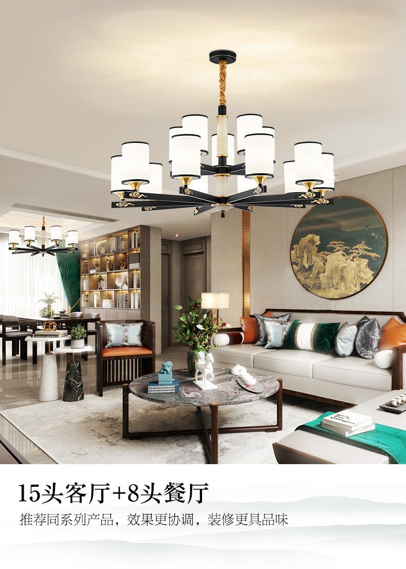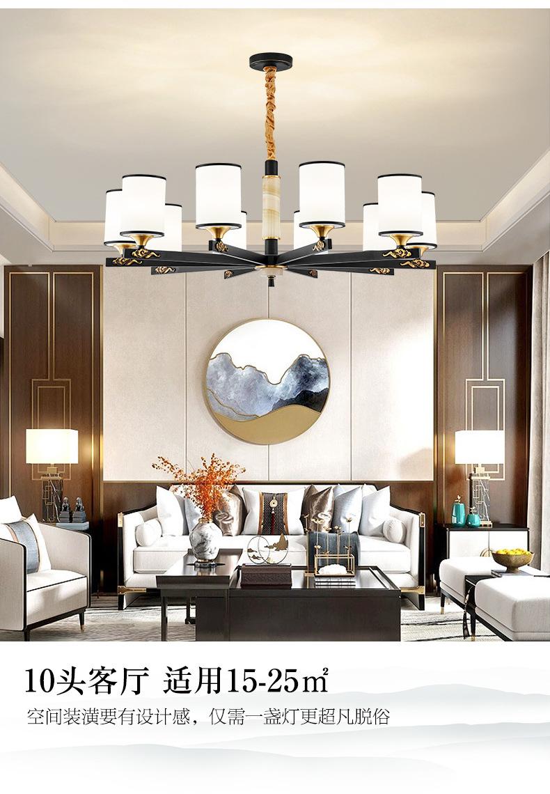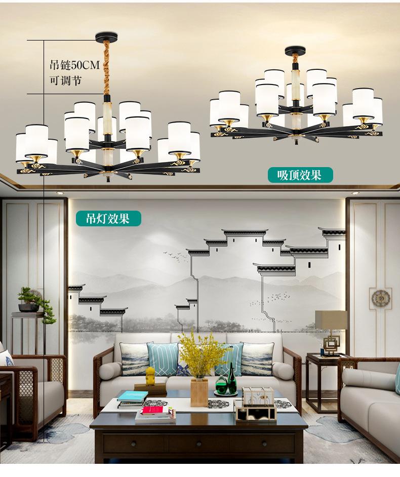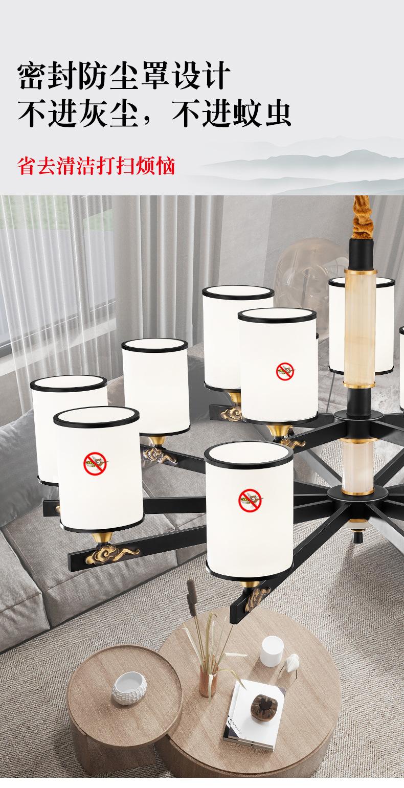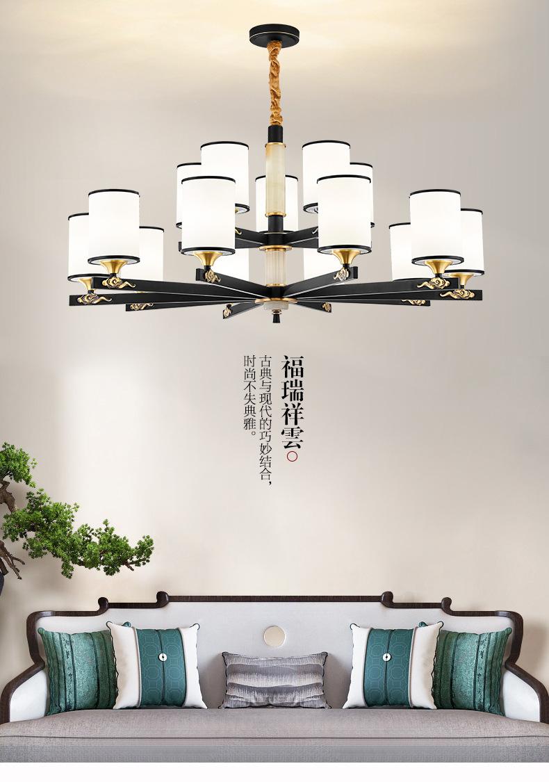 Nuevo candelabro de estilo chino para sala de estar, lámpara de cobre, luz de estilo chino, lujo simple y moderno, lámpara de comedor, dormitorio, ambiente, lámpara Zen