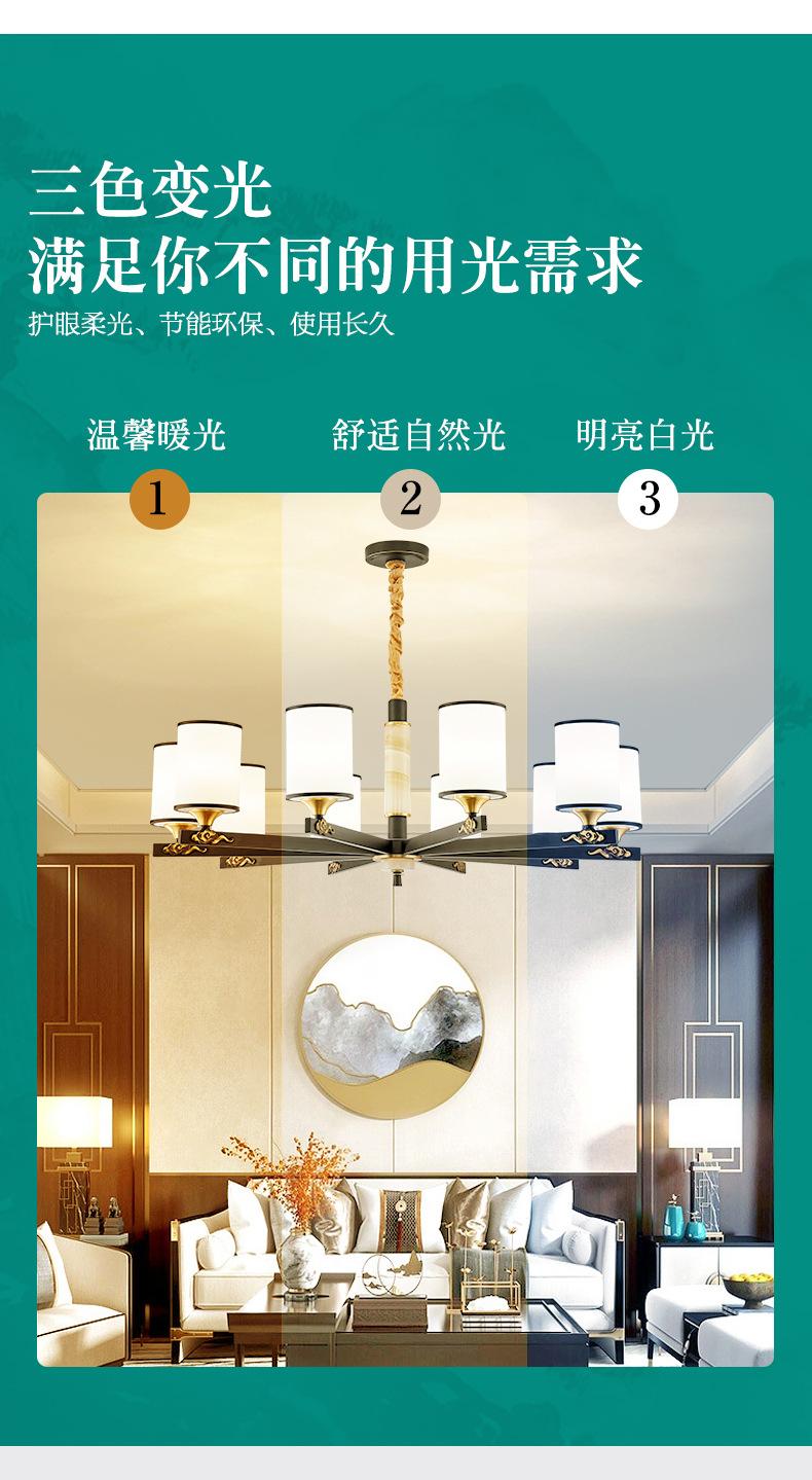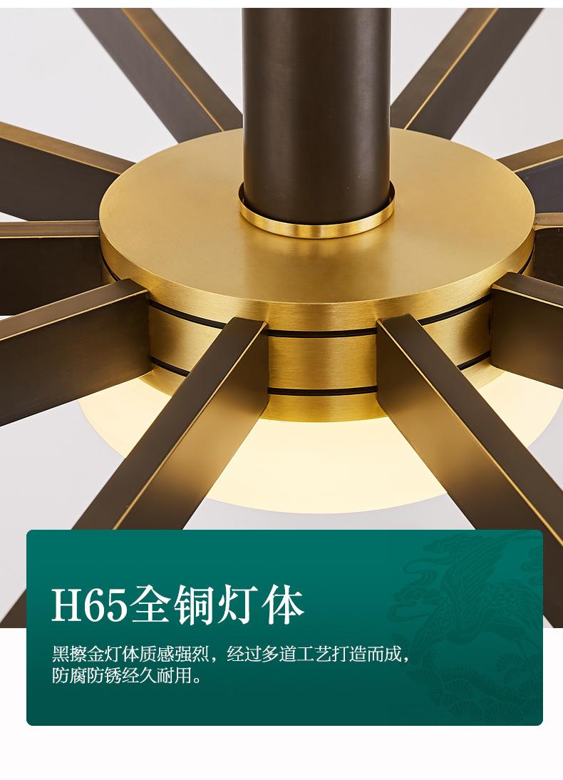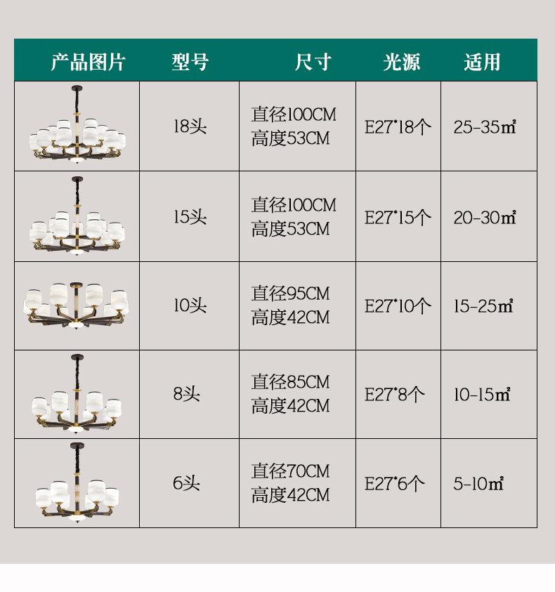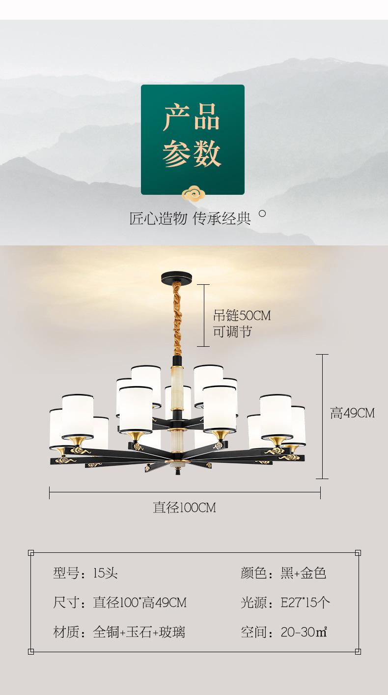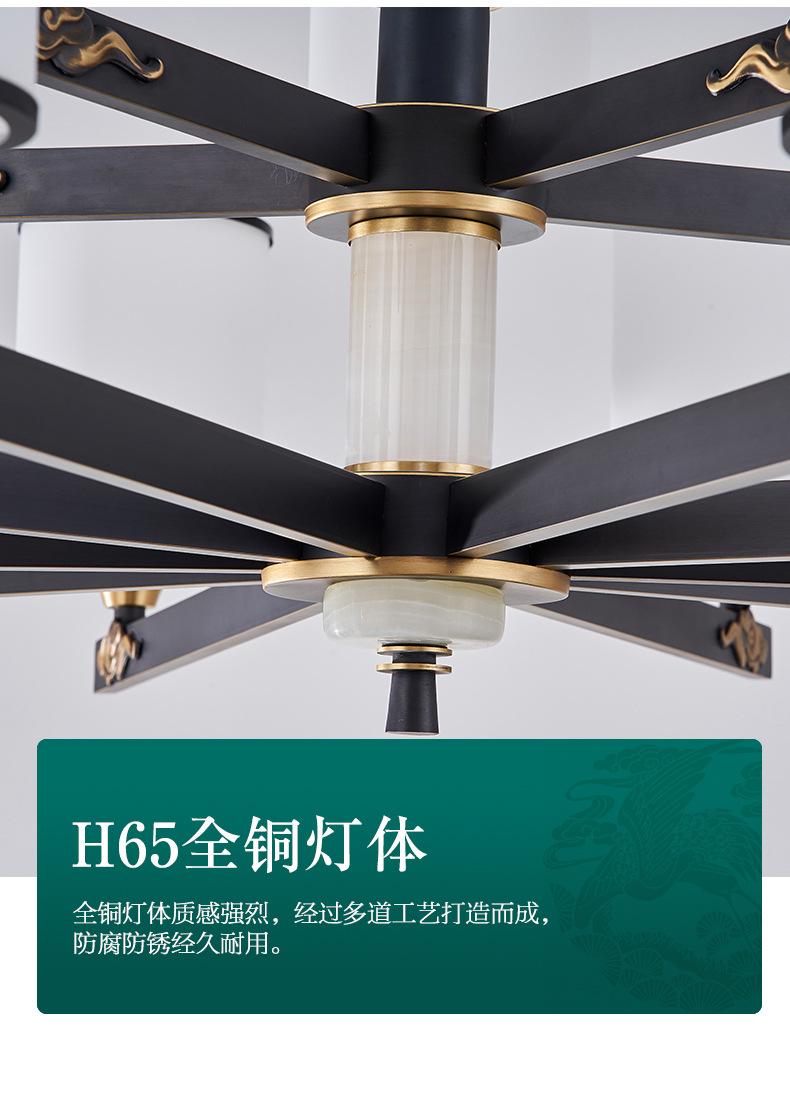 Nuevo candelabro de estilo chino para sala de estar, lámpara de cobre, luz de estilo chino, lujo simple y moderno, lámpara de comedor, dormitorio, ambiente, lámpara Zen