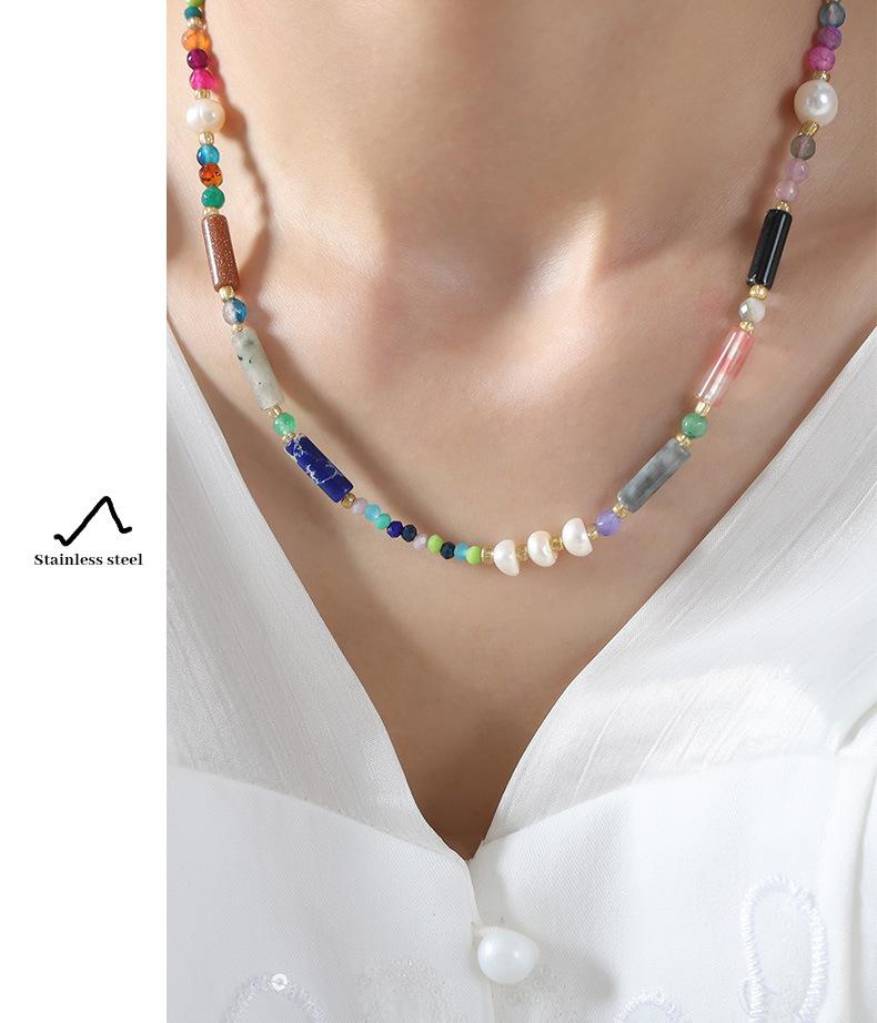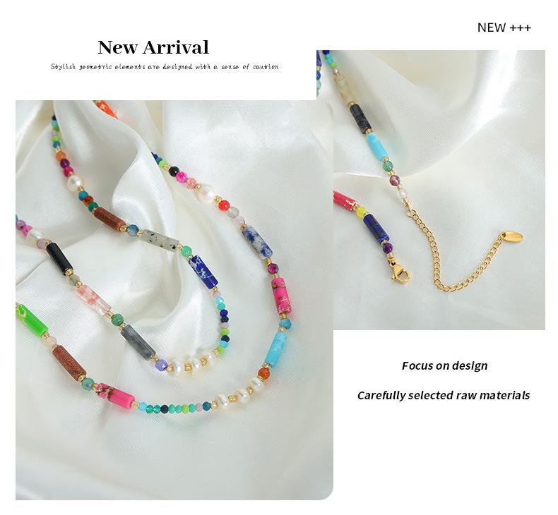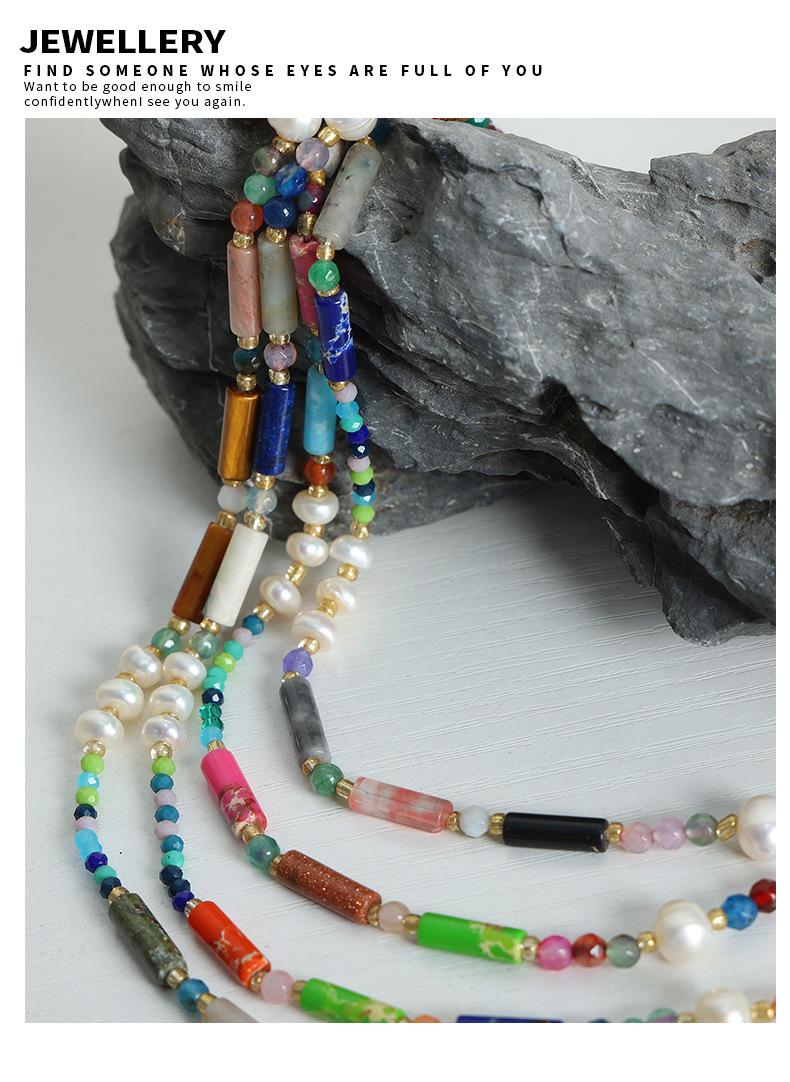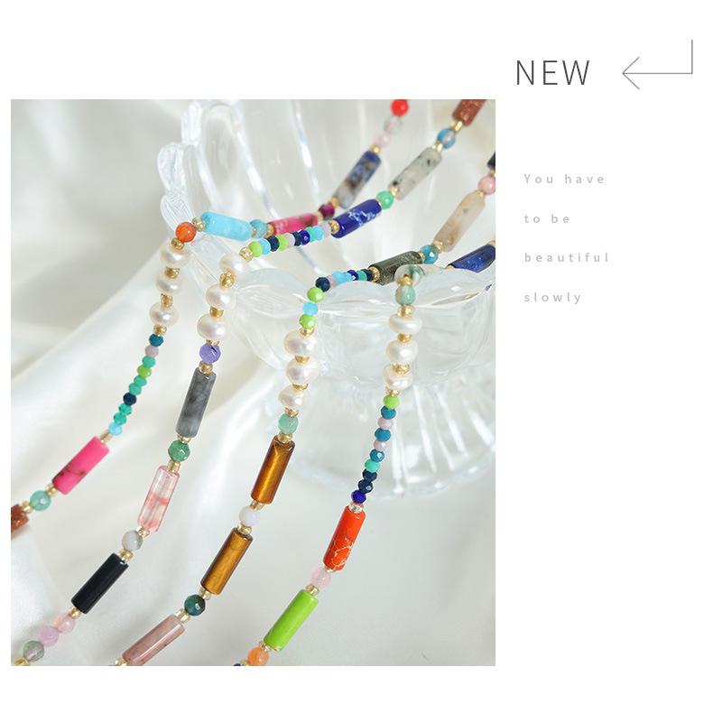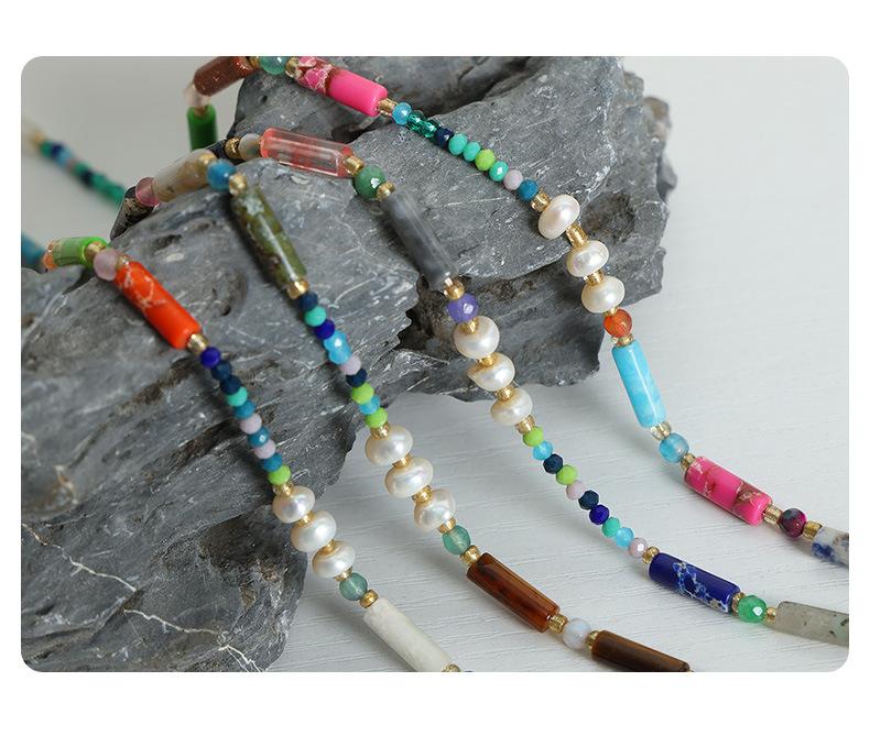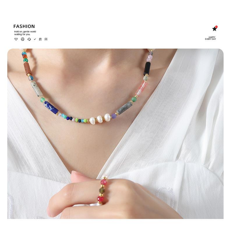 Collar de cuentas hecho a mano con piedra natural de perla de agua dulce de alta calidad, estilo retro, ligero y de lujo, con personalidad de nueva moda europea y americana