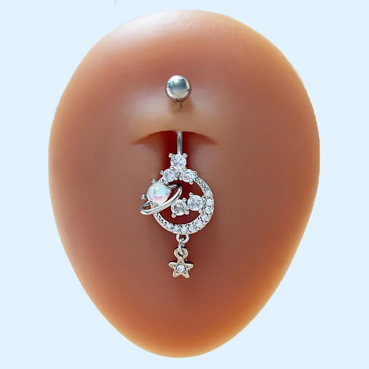 Anillo de ombligo con forma de garra de gato, diseño de cruz en forma de corazón, con asiento invertido, piercing para el ombligo con forma de luna estrellada.