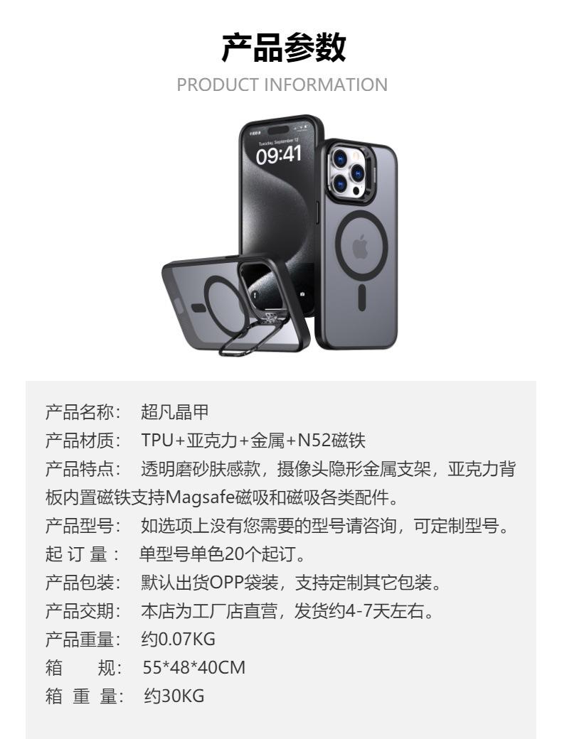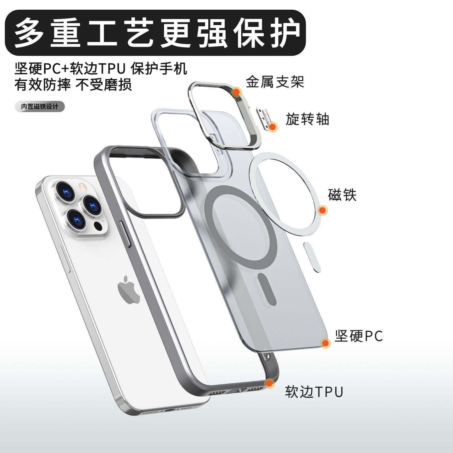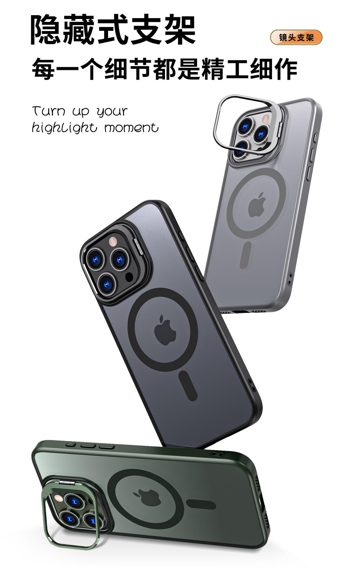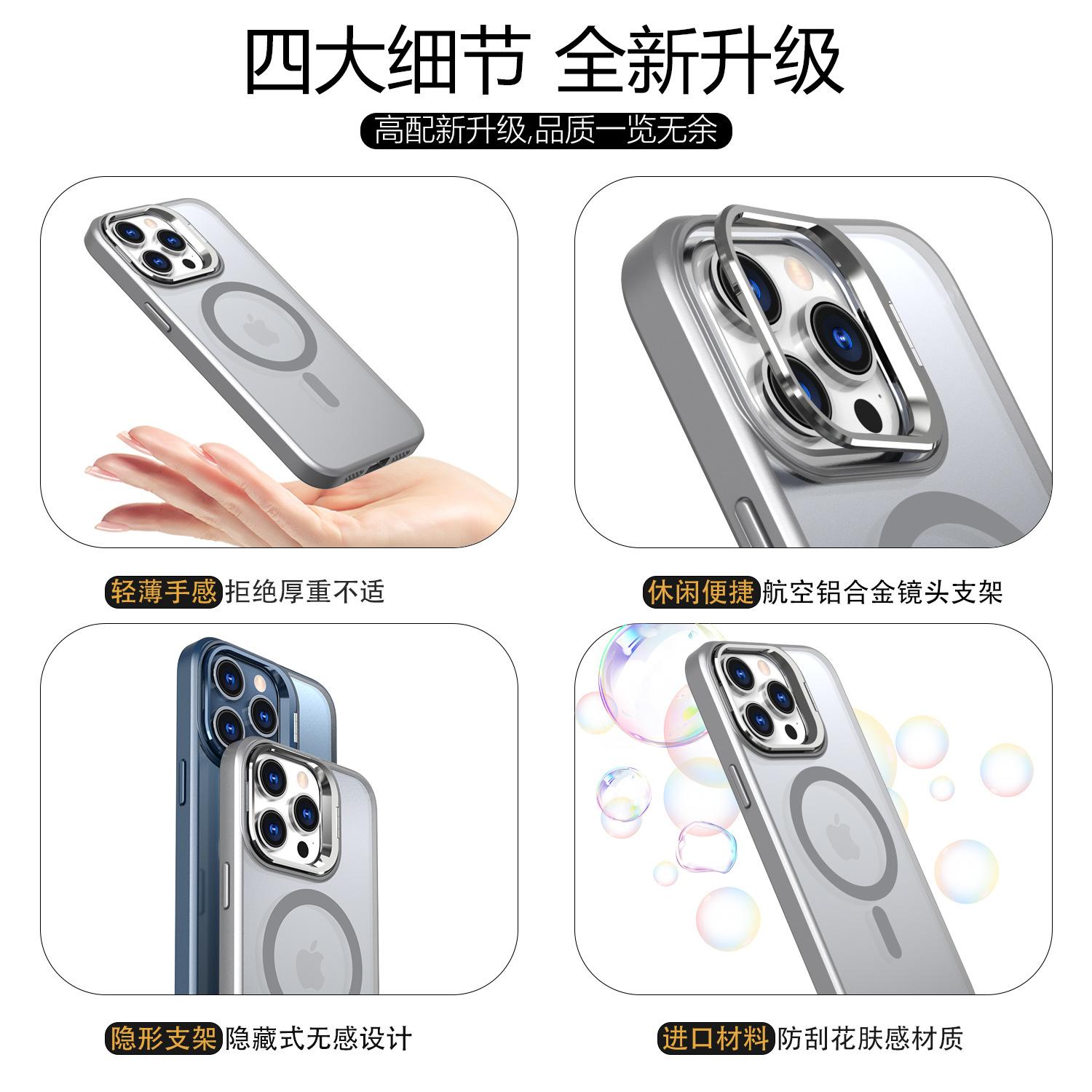 Funda protectora para Apple 15ProMax con ventosa magnética Magsafe y soporte de lente metálico para iPhone 15
