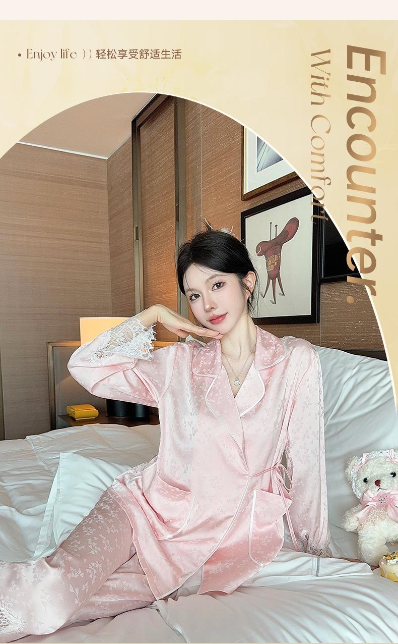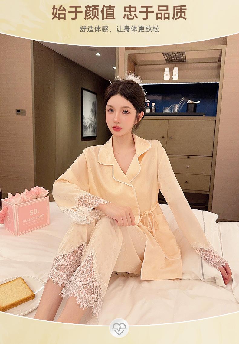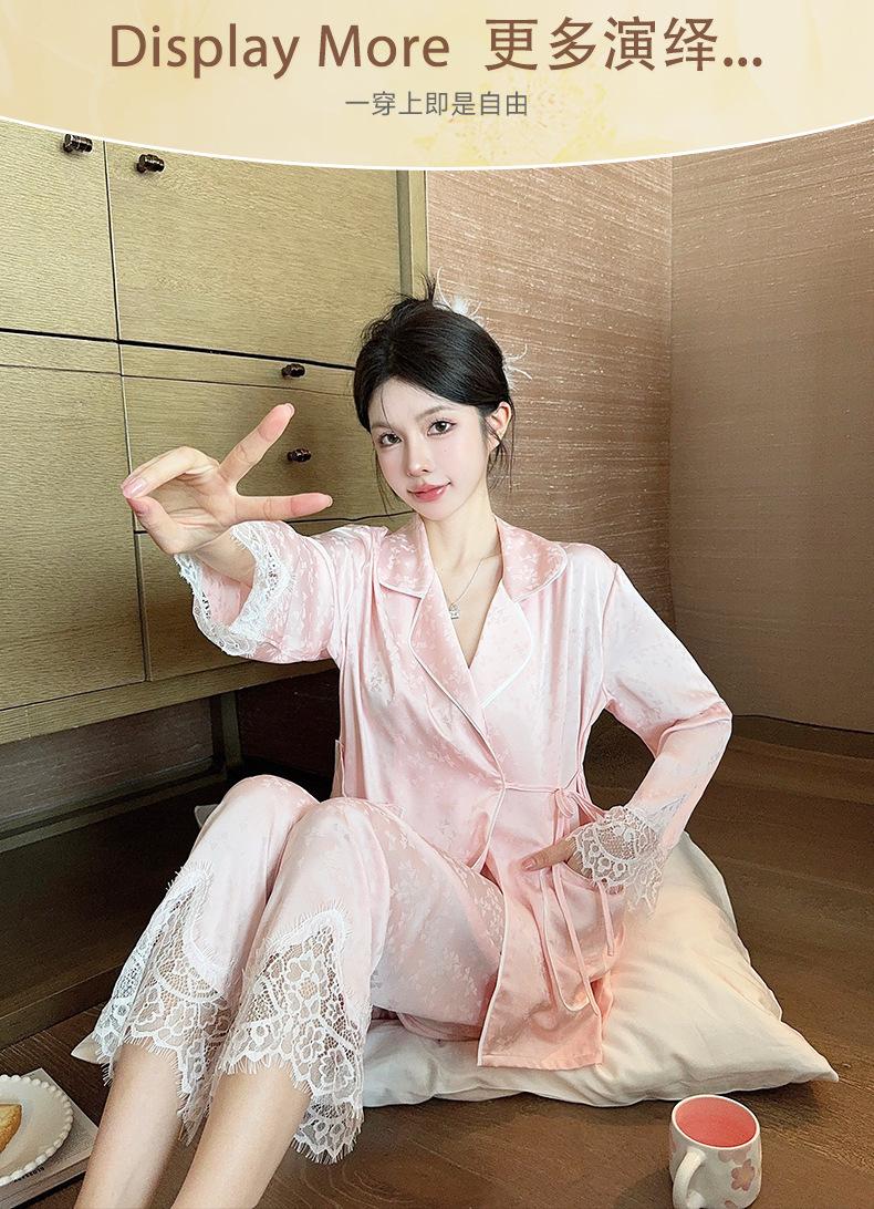 Nuevo pijama de jacquard de seda helada de primavera y otoño, nuevo traje de estilo chino antiguo con cordones, ropa de hogar para exteriores