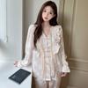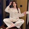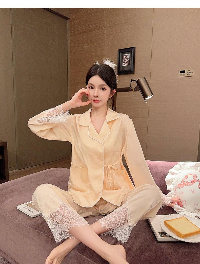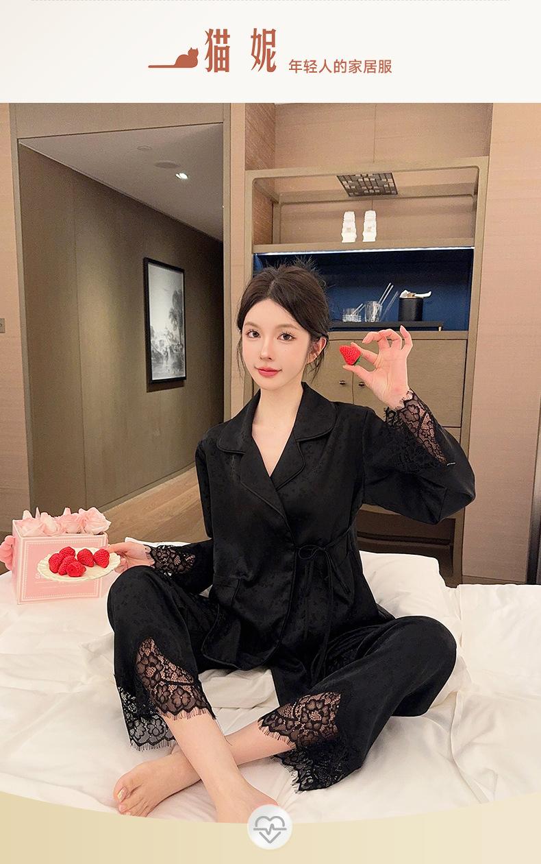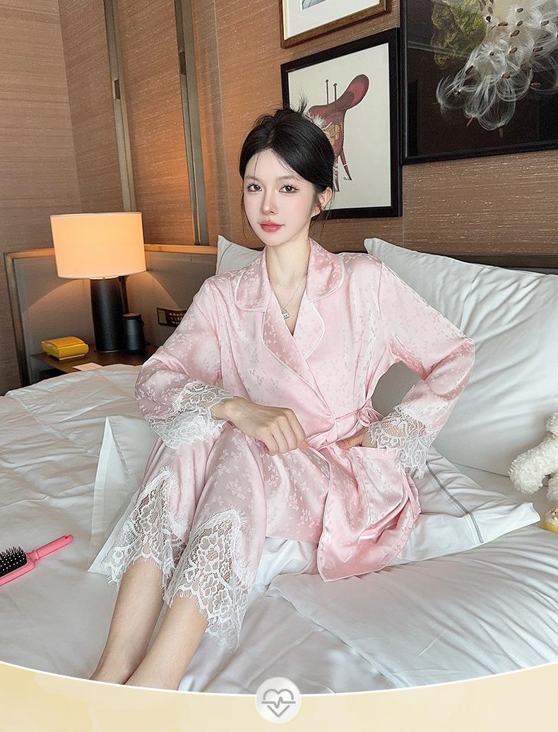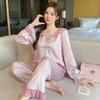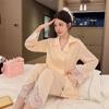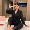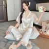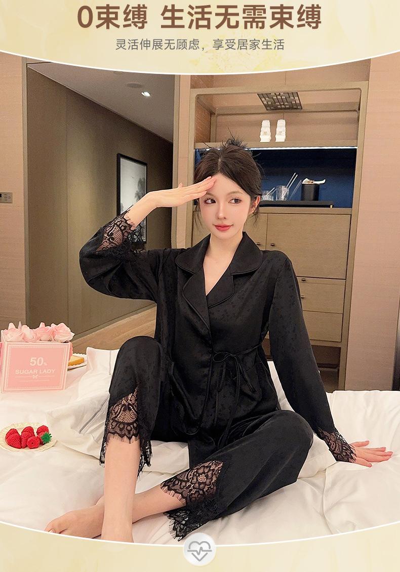 Nuevo pijama de jacquard de seda helada de primavera y otoño, nuevo traje de estilo chino antiguo con cordones, ropa de hogar para exteriores
