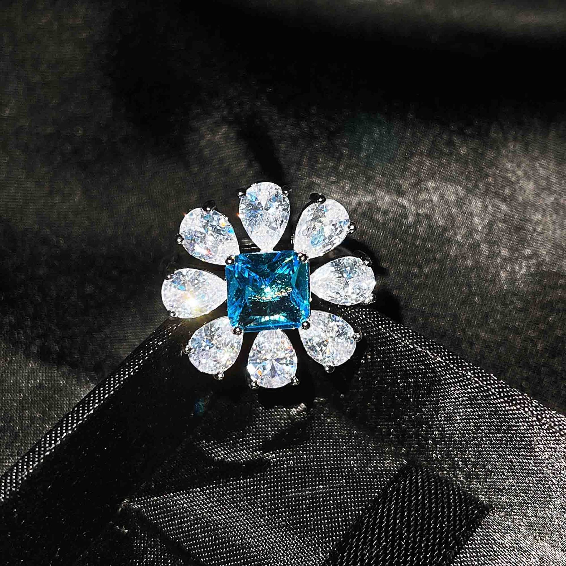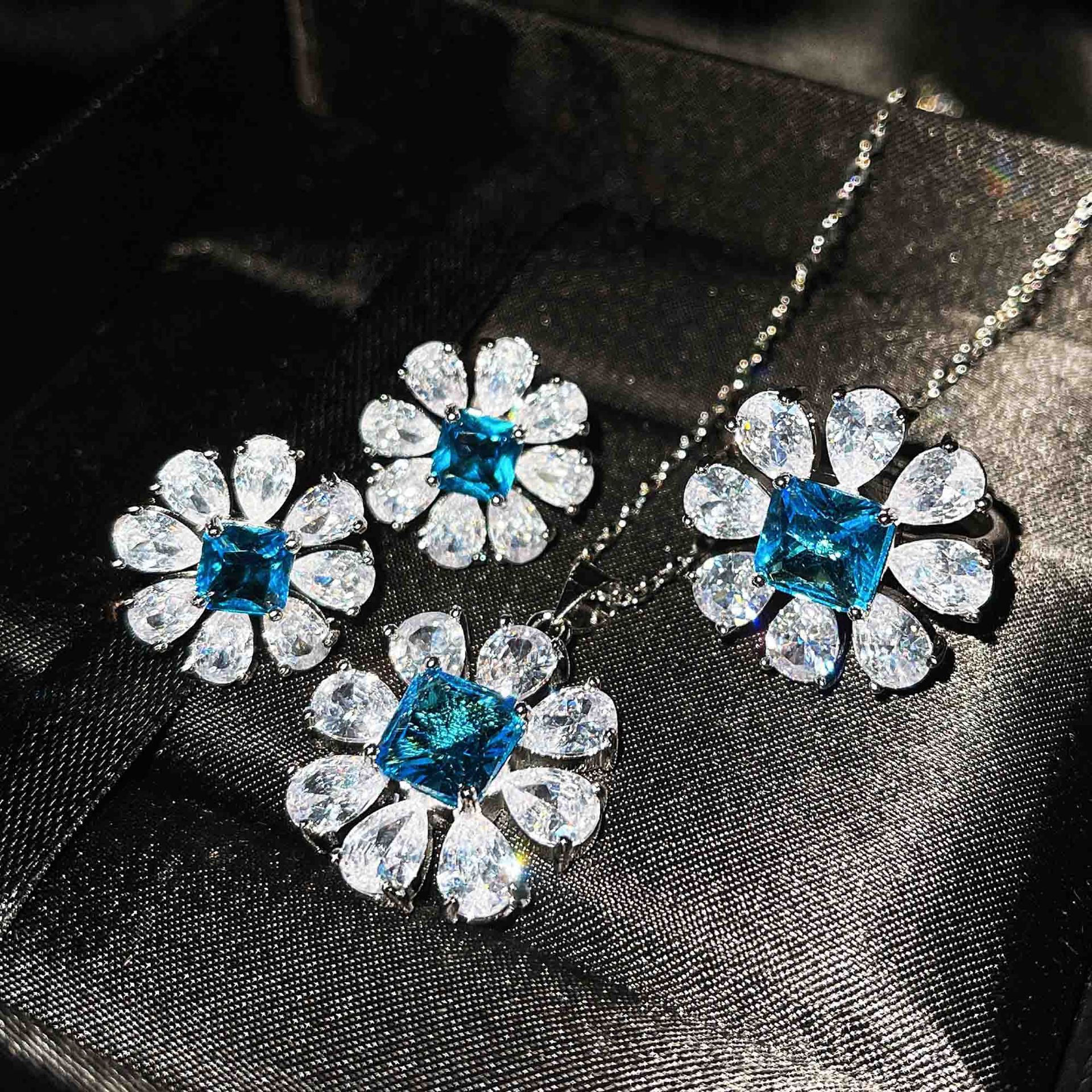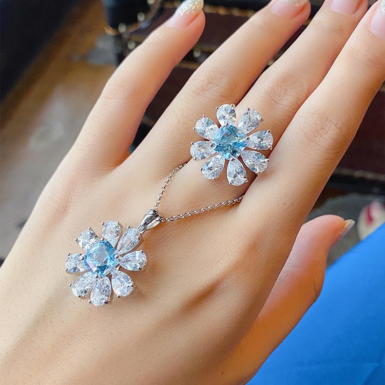 Collar con colgante de topacio azul cielo natural de imitación de diseño de joyería Gaoding, pendientes de diamantes de alto carbono, anillo y traje para mujer