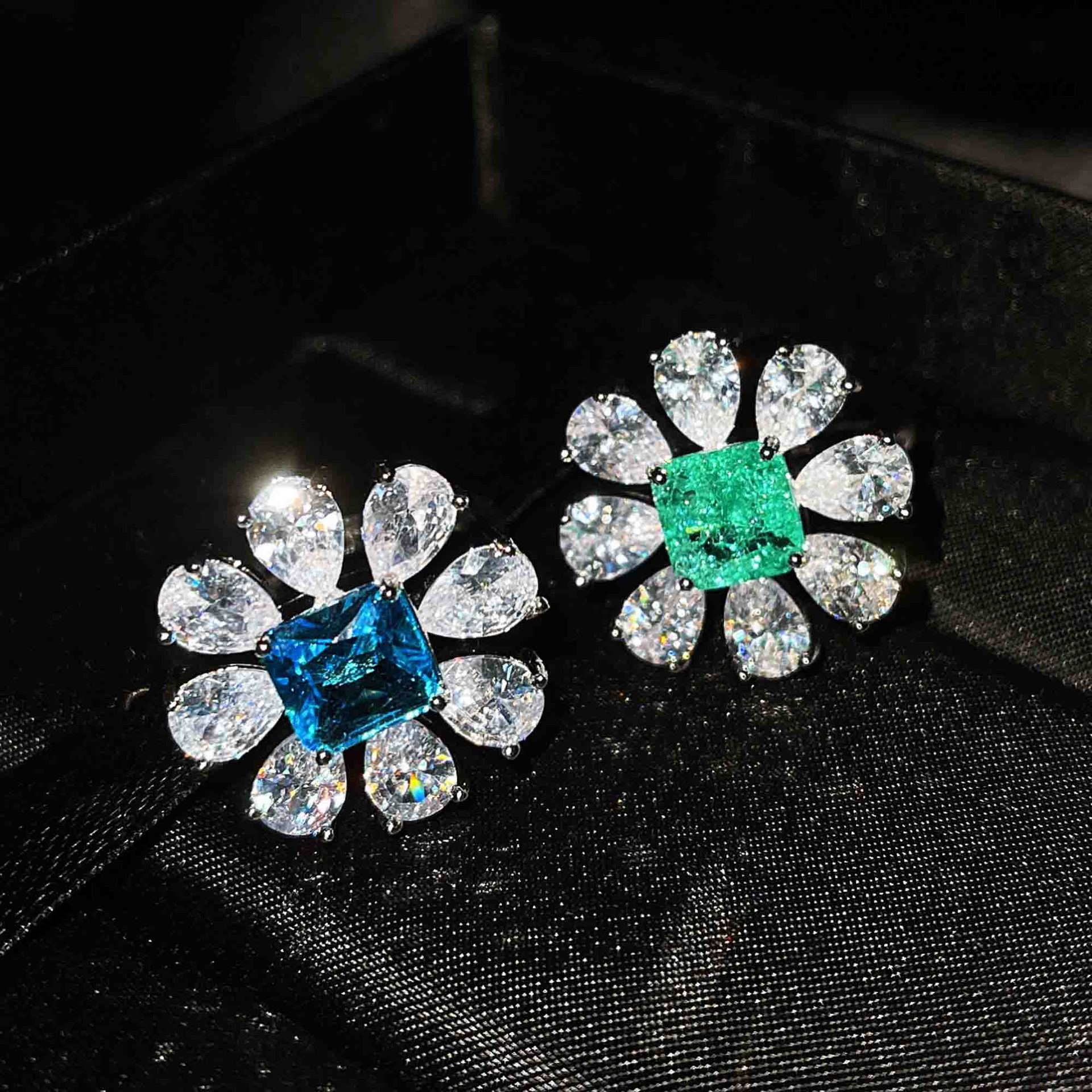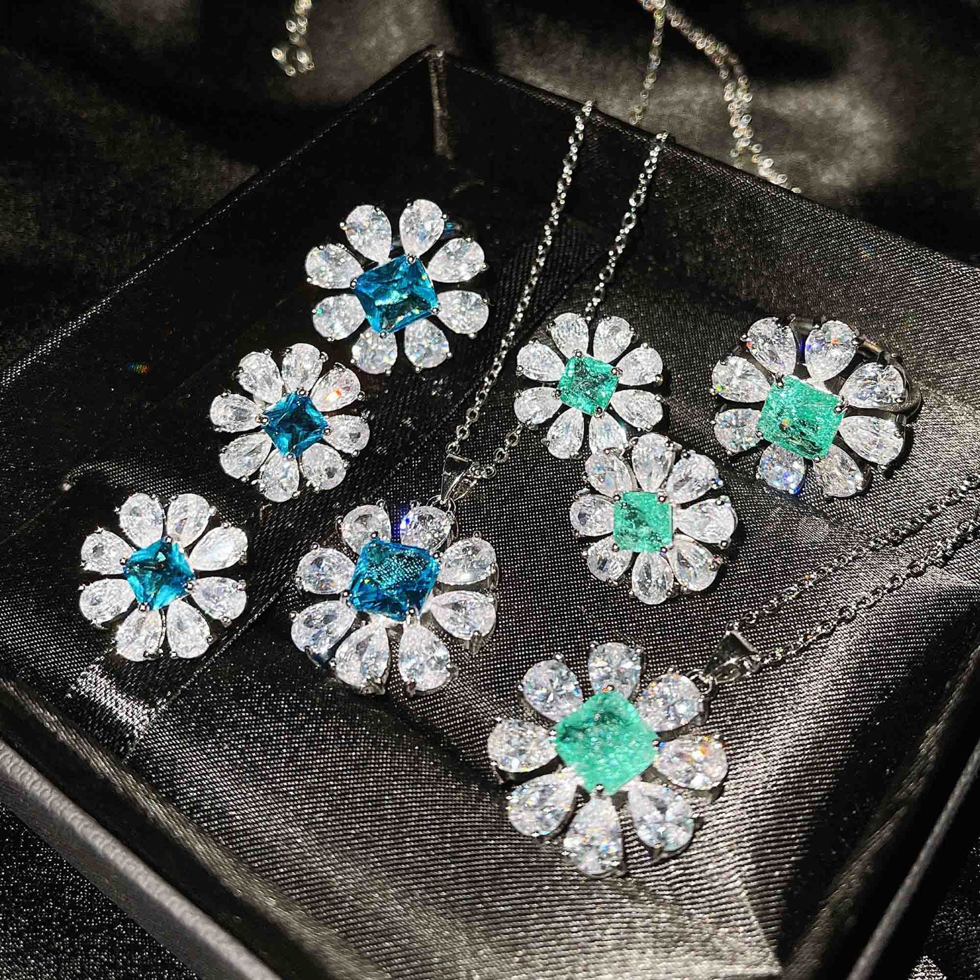 Paraíba stud earrings, Paraíba color ring [opening adjustable]], Paraíba color pendant [without chain]], Topa ...