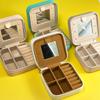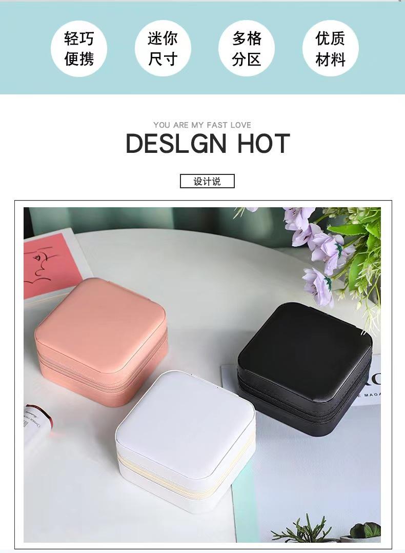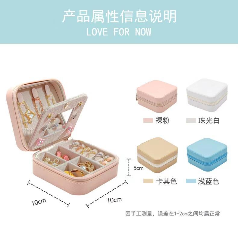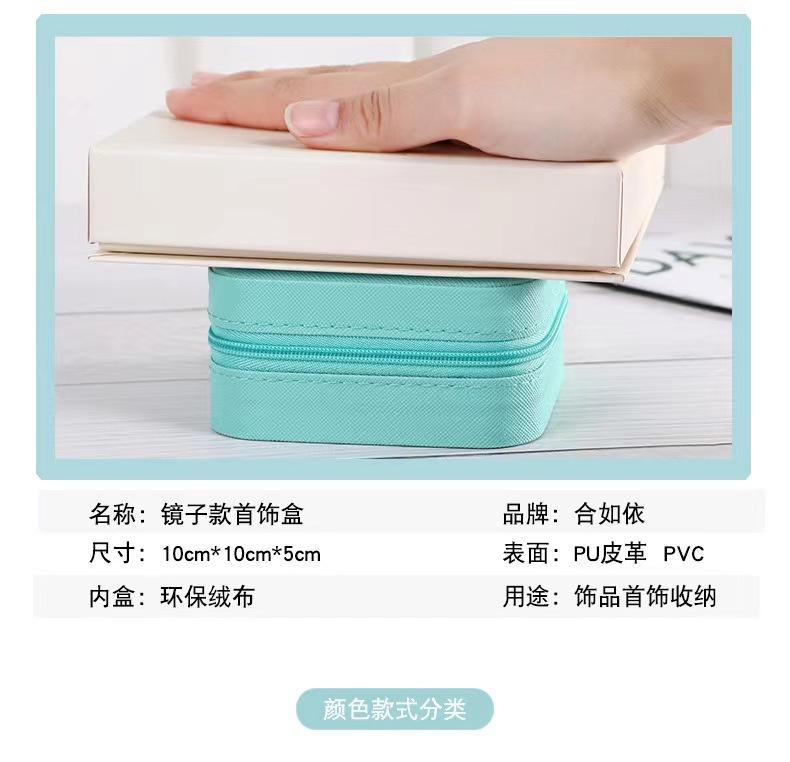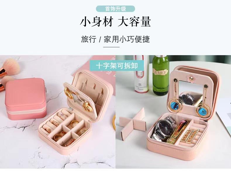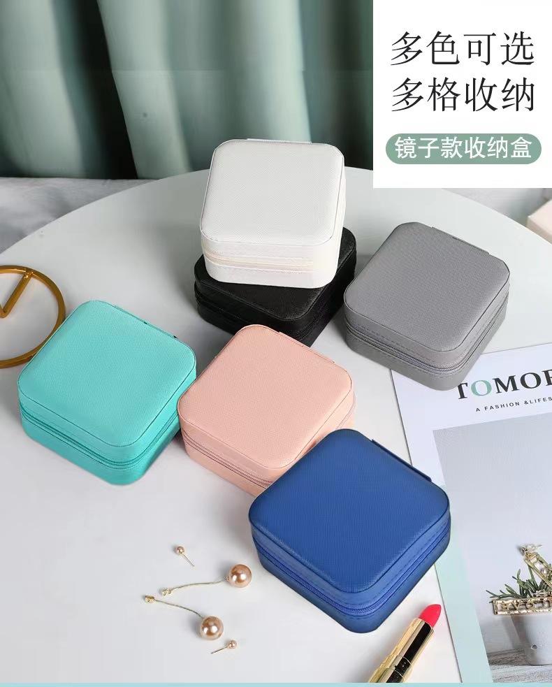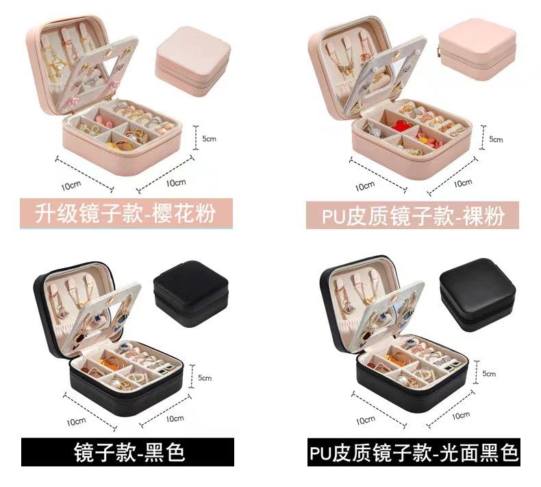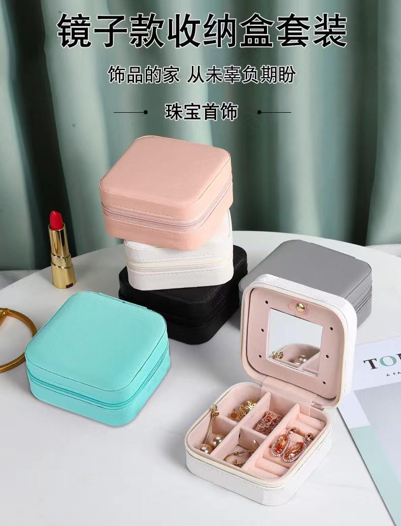 Caja de almacenamiento de joyas con espejo, caja de joyería de PU, caja de almacenamiento de pendientes y collares portátil simple, venta directa de fábrica