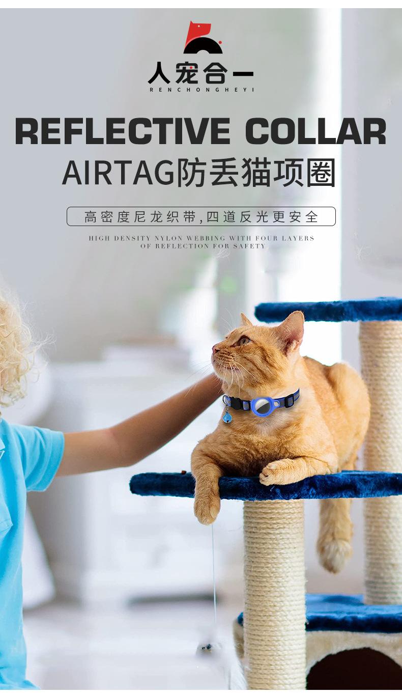 Nombre del producto:Collar para gato Airtag reflectante anti-pérdida campana collar para gato localizador de seguimiento Apple collar para mascota al por mayor