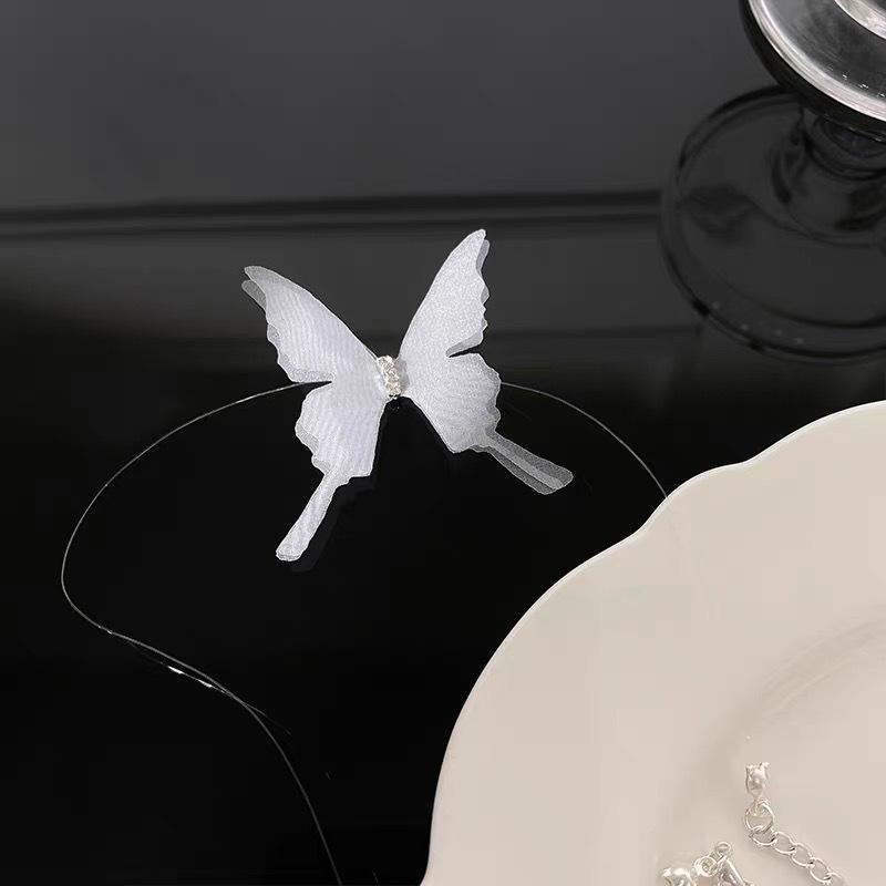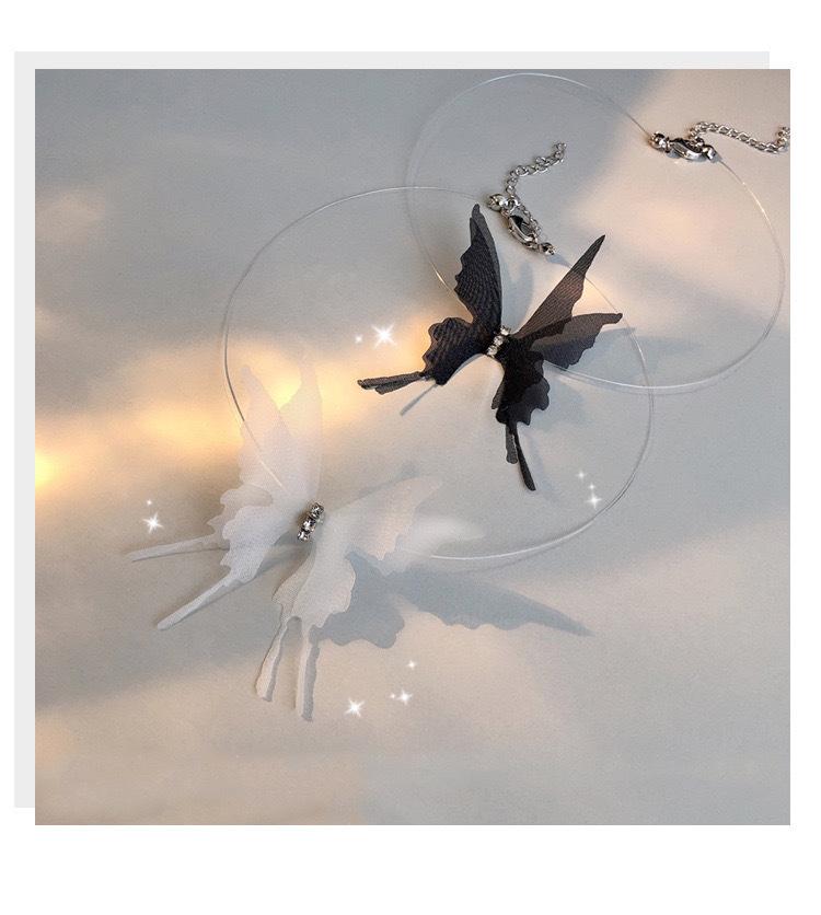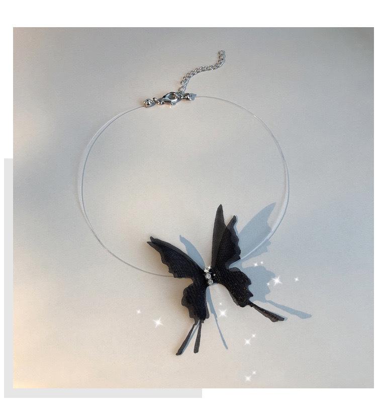 Material: Mariposa de tela + hilo de pescar + hebilla de cola de acero titanio (no se decolora ni es alérgica)