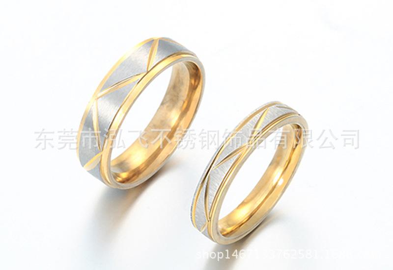 Anillo de pareja de moda europea y americana, acero inoxidable, personalidad, patrón de triángulo, anillo de pareja bicolor de acero de titanio, baratijas al por mayor