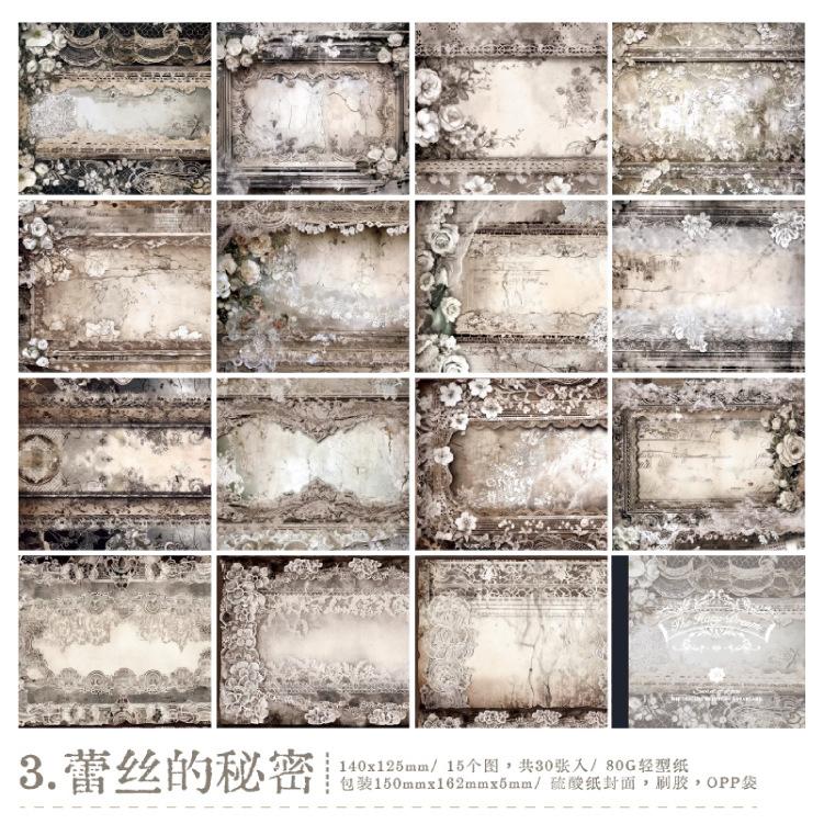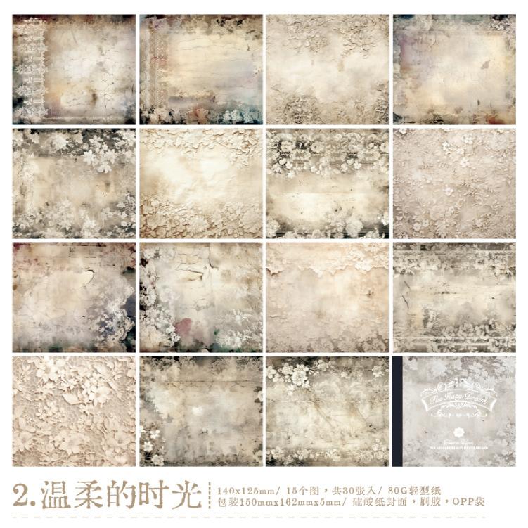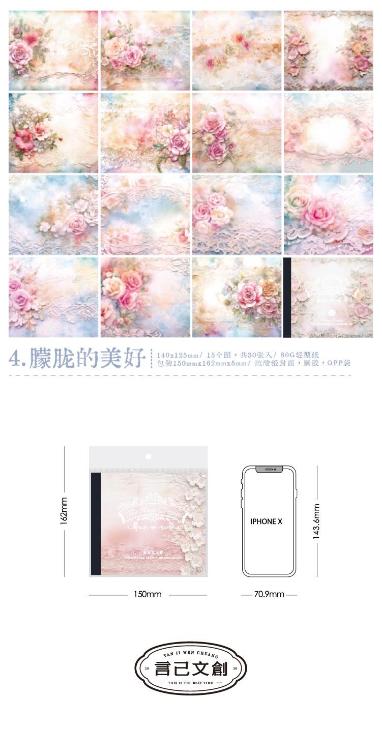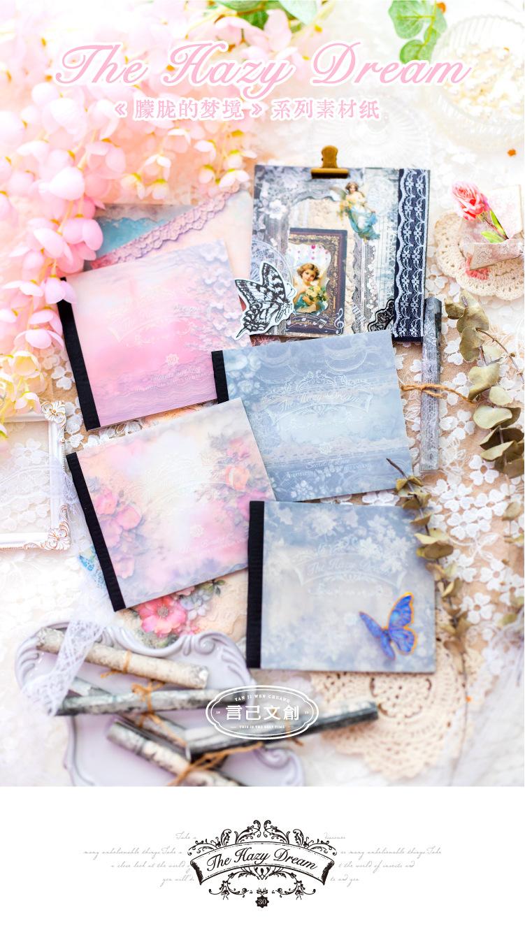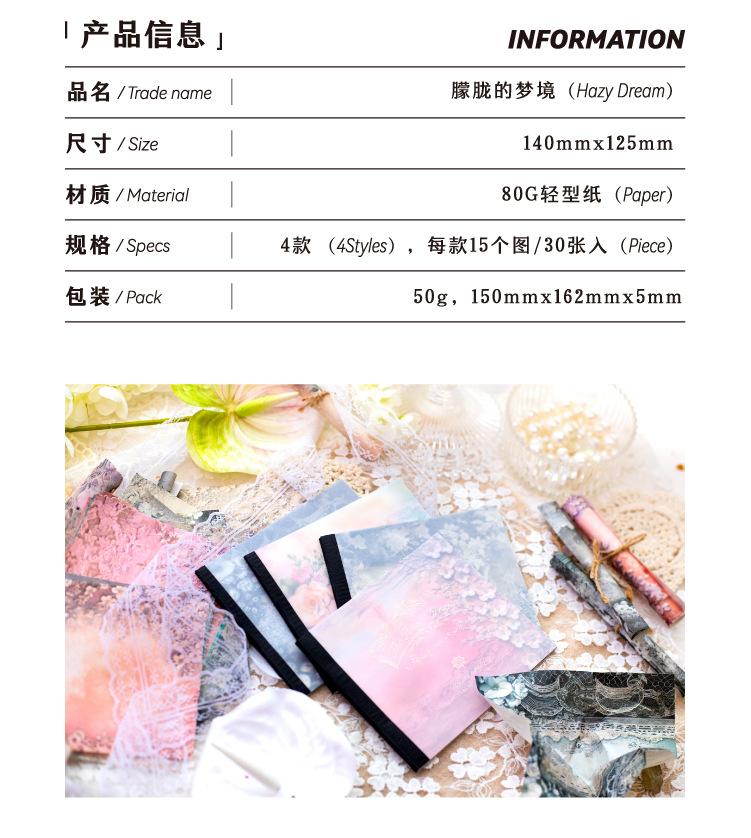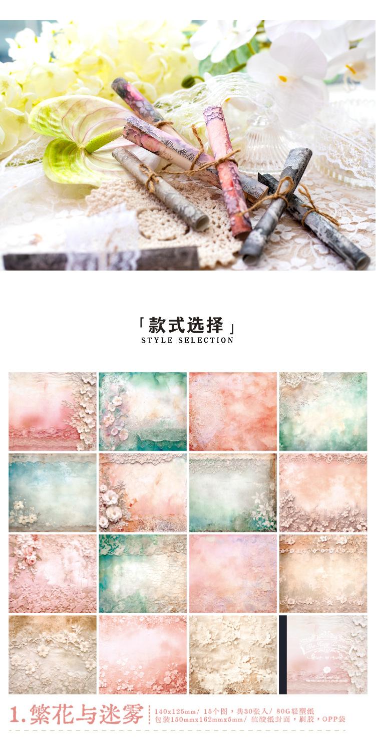 Papel de Material Yanji Serie Sueño Nebuloso Materiales de Decoración de Álbum de Recortes Retro 30 Hojas en 4 Estilos