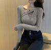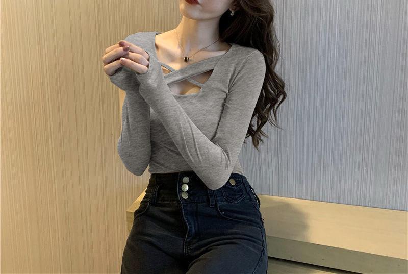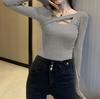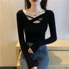 Ropa para mujer, otoño 2024, nuevo diseño de top, camisa interior, camiseta negra ajustada de manga larga para mujer