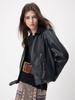 Chaqueta de Cuero Negra de Solapa sin Capucha para Mujer 2024 Sin Cinturón Chaqueta de Cuero Recta Chaqueta de Cuero Corta para Mujer