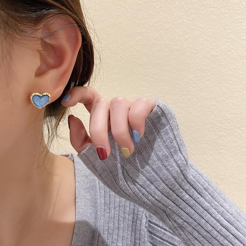 Aretes de amor azul con aguja de plata s925 para mujer estilo coreano estilo ins aretes de temperamento pequeños y lindos aretes estilo celebridad de internet