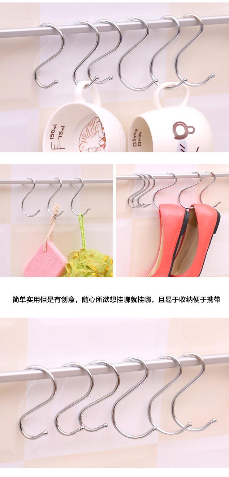 Gancho para colgar en la pared, perchero de acero inoxidable con forma de S, gancho para secar ropa de cocina, sin perforaciones, gancho en forma de S