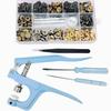 Contenido del producto:120 juegos de botones a presión de 12,5 mm (20 juegos en 6 colores) + alicates de presión manual azules + pinzas de metal
