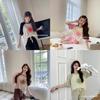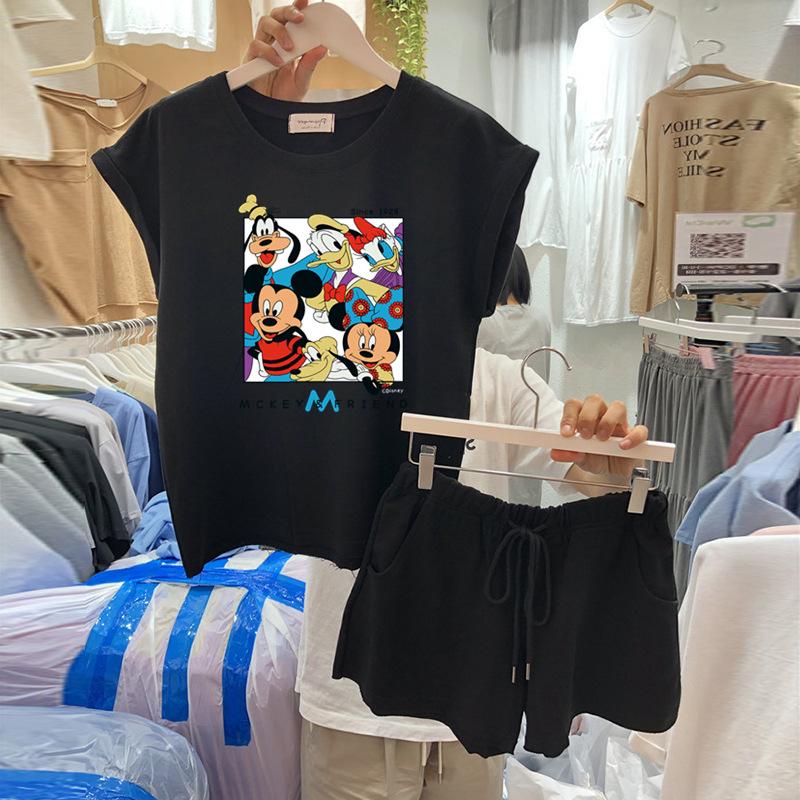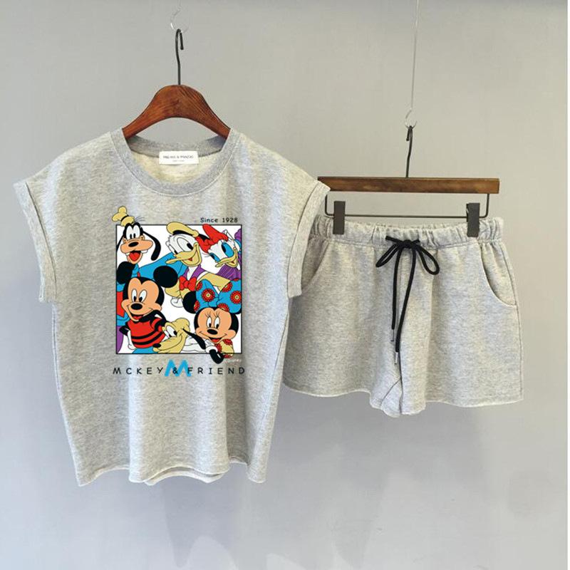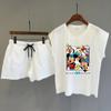 Traje deportivo estampado de dibujos animados para mujer 2024 Primavera y Verano Nuevo Camiseta Pantalones cortos Ropa de mujer Dongdaemun Traje estilo Chanel para mujer