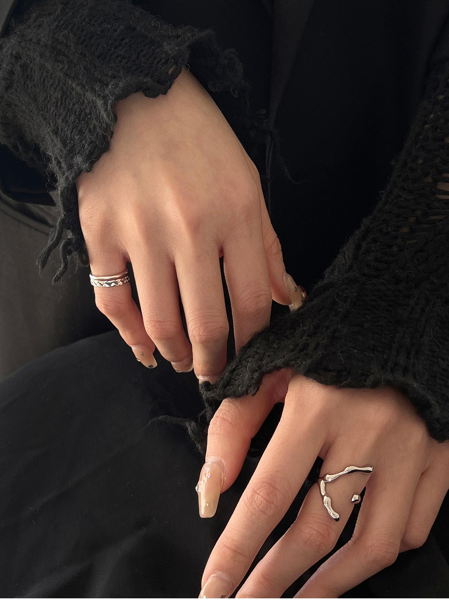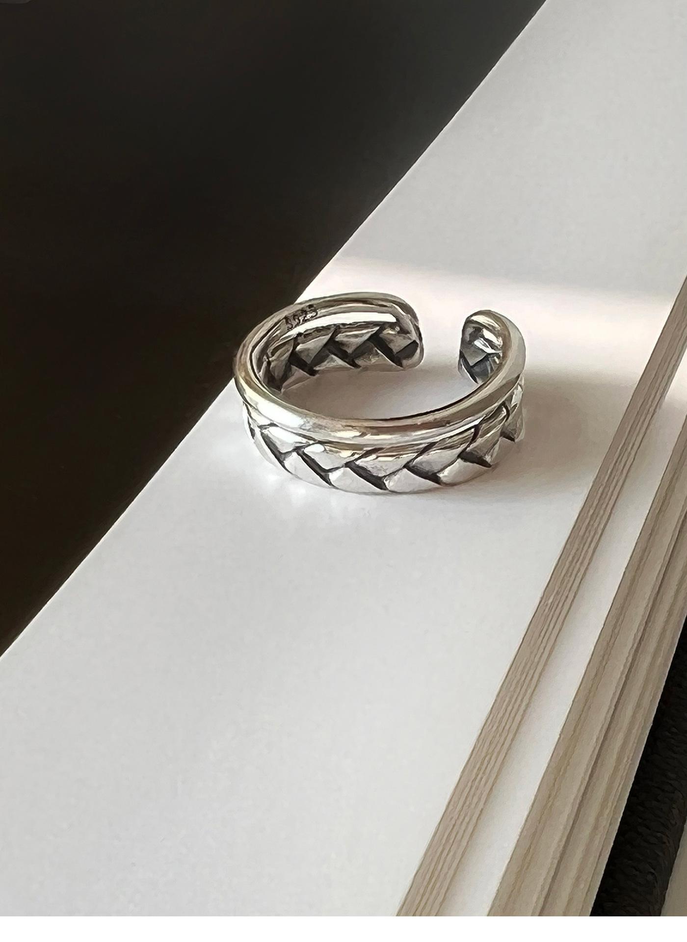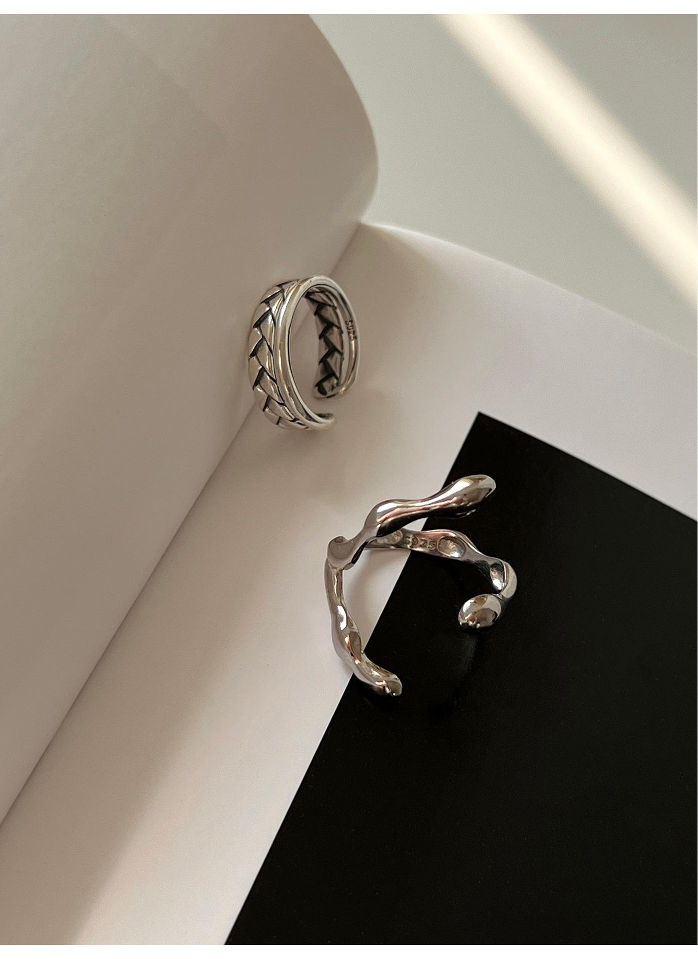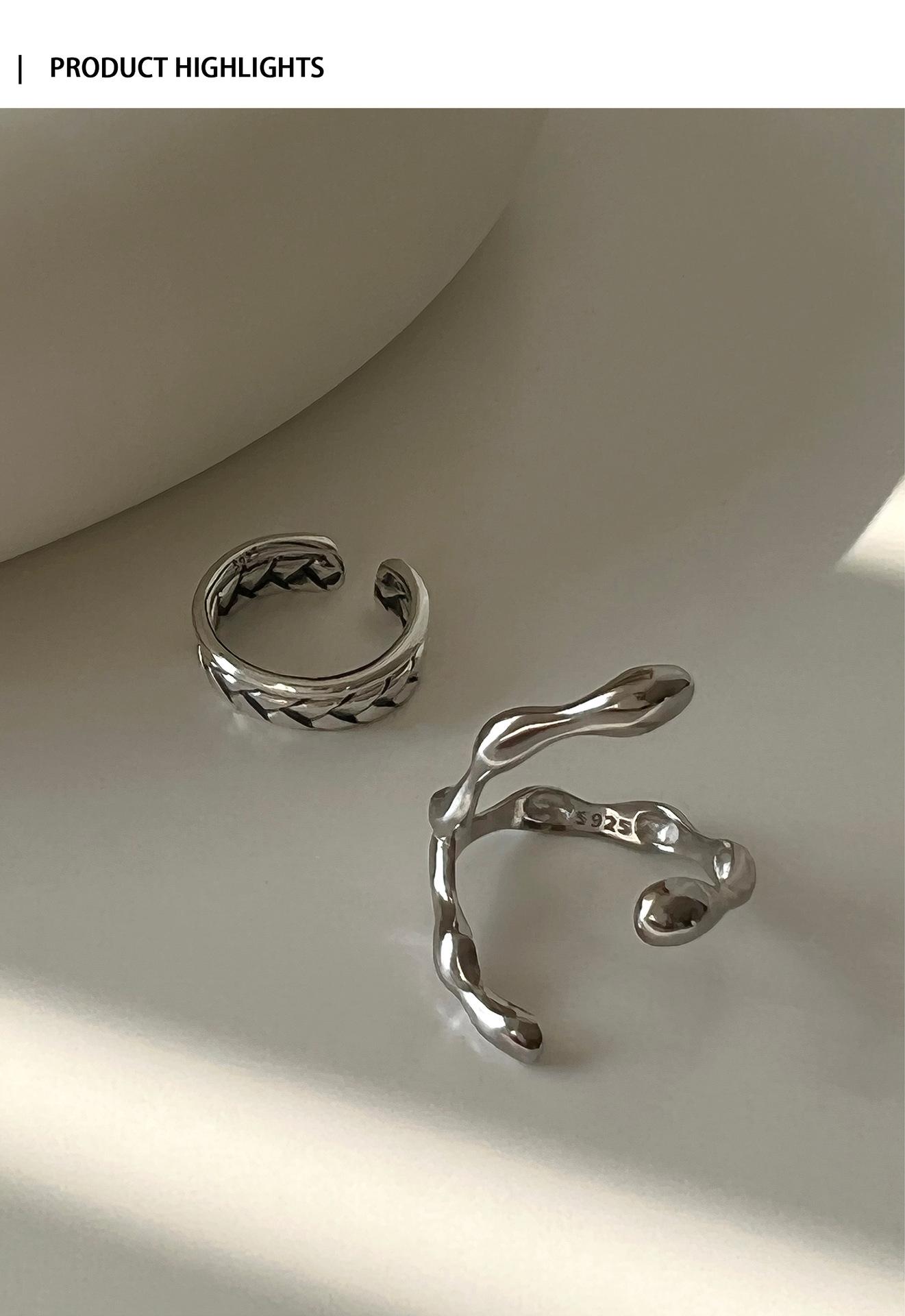 Anillo de Textura de Plata S925 Estilo Coreano para Mujer Retro Moderno Elegante Doble Capa Trenzado Abierto Anillo para Dedo Hip-Hop Anillo para Dedo Moda