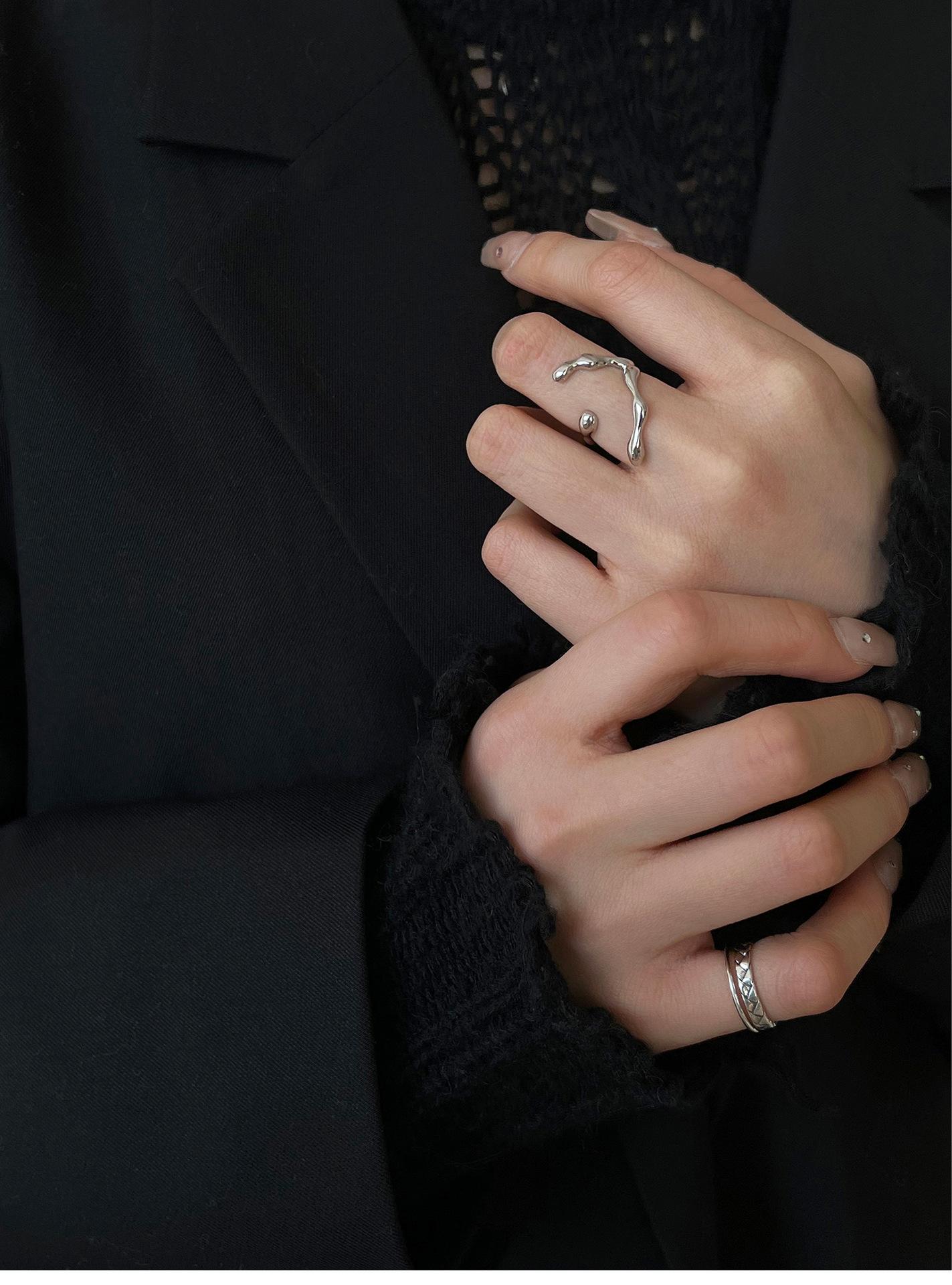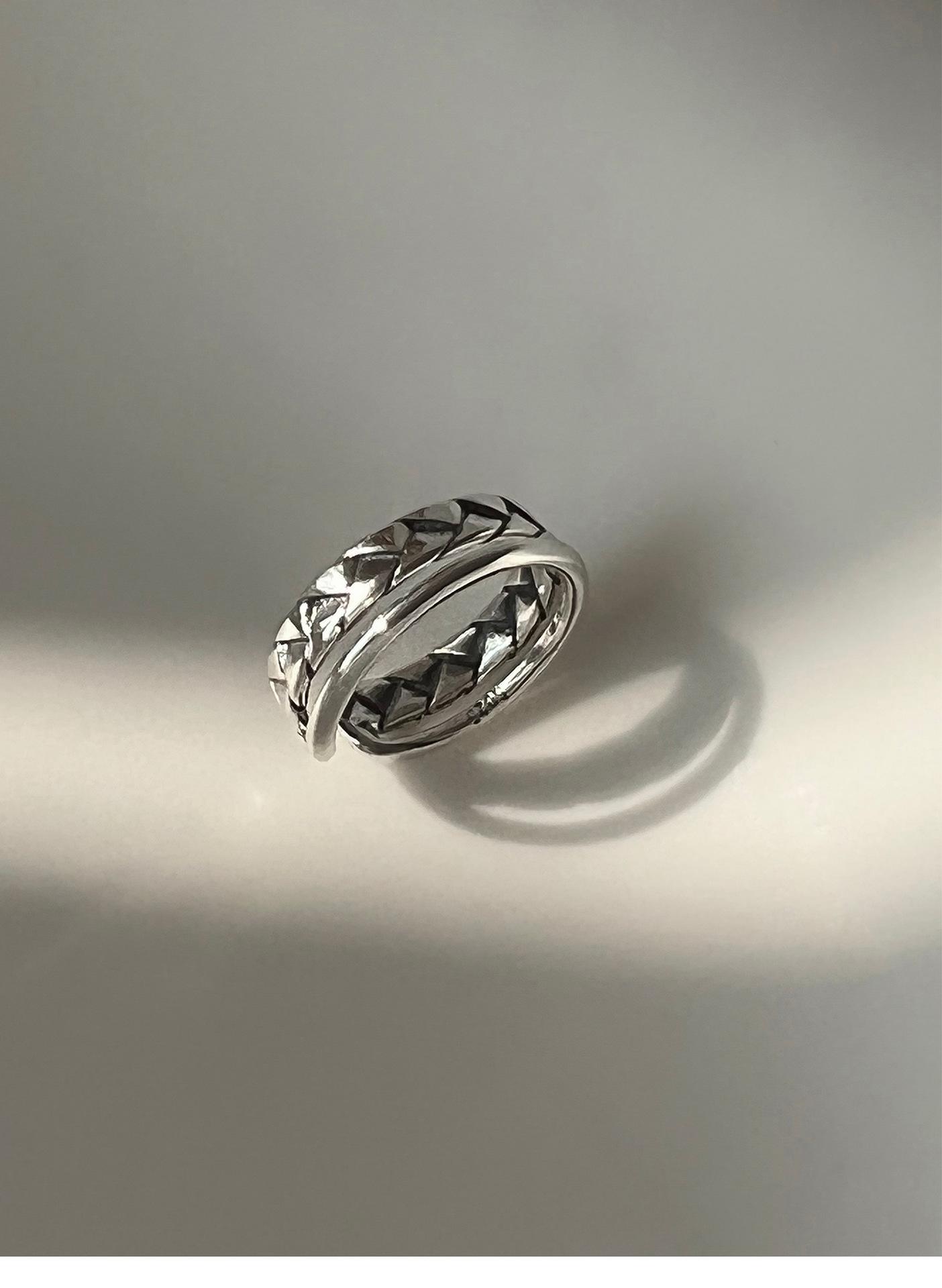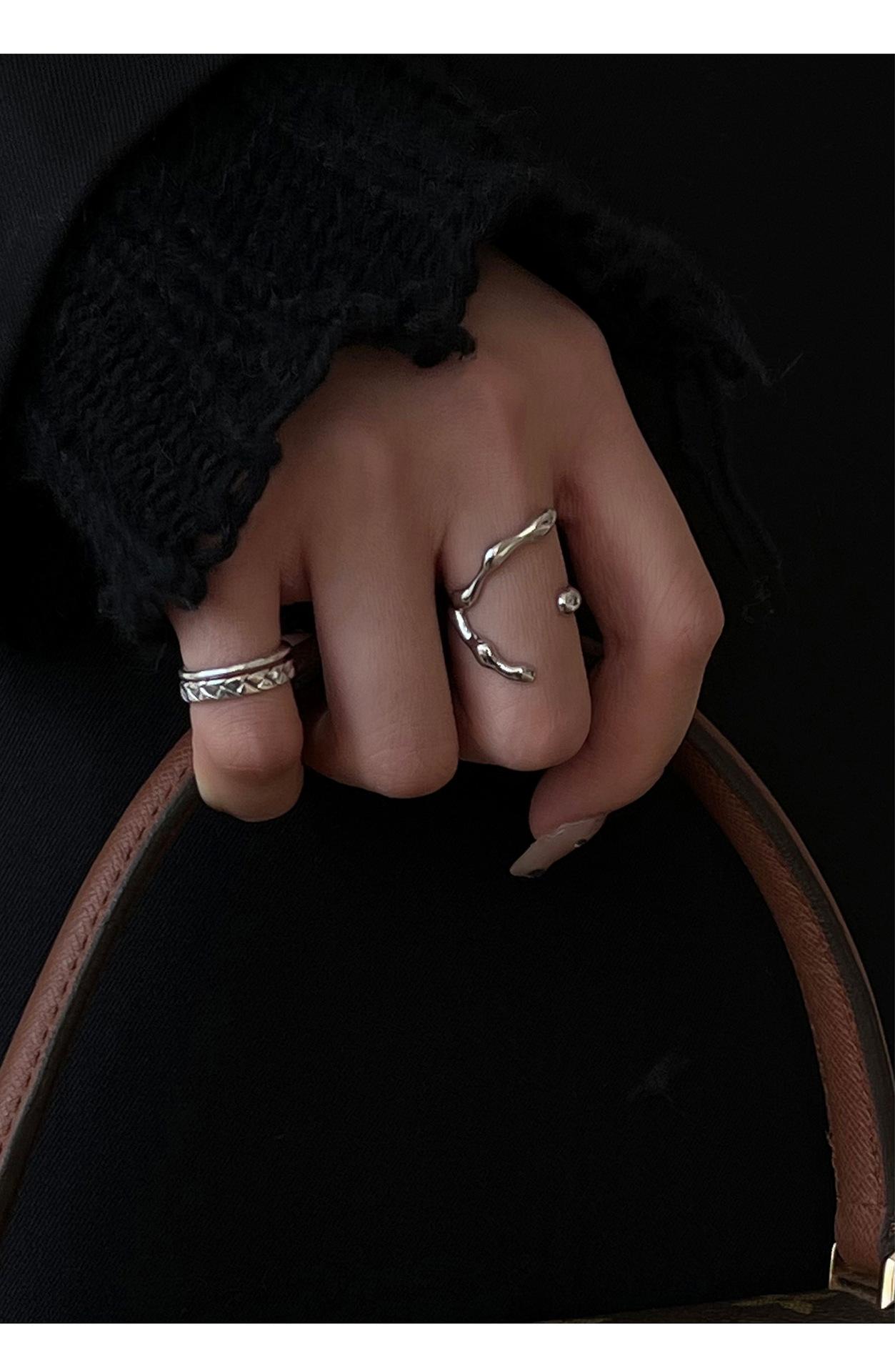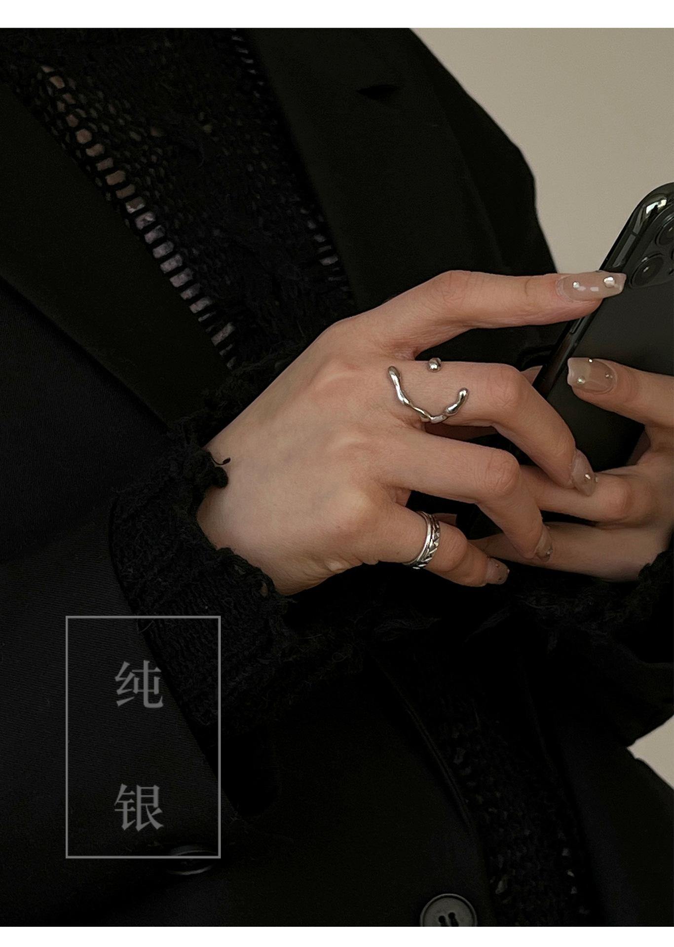 Anillo de Textura de Plata S925 Estilo Coreano para Mujer Retro Moderno Elegante Doble Capa Trenzado Abierto Anillo para Dedo Hip-Hop Anillo para Dedo Moda