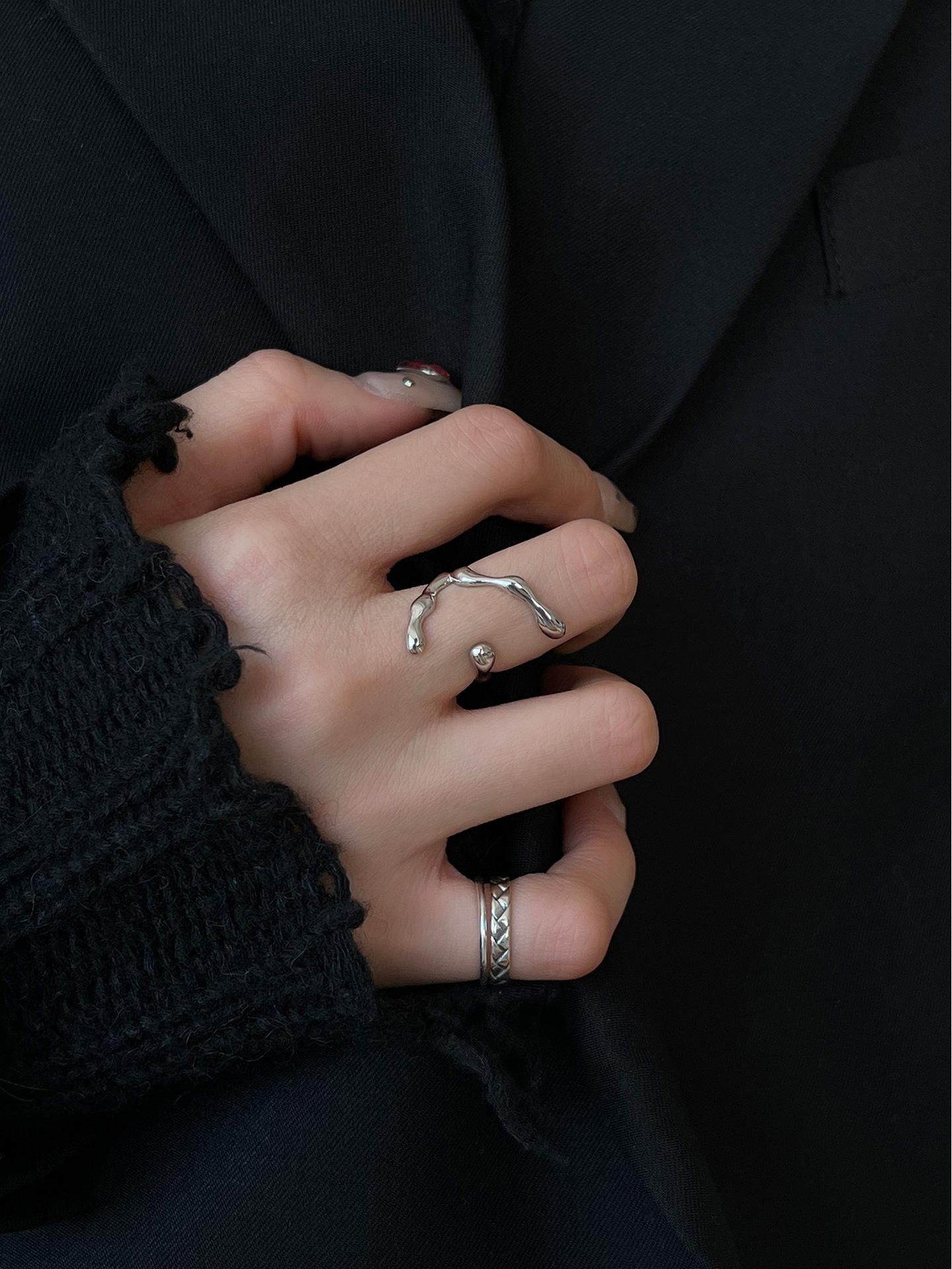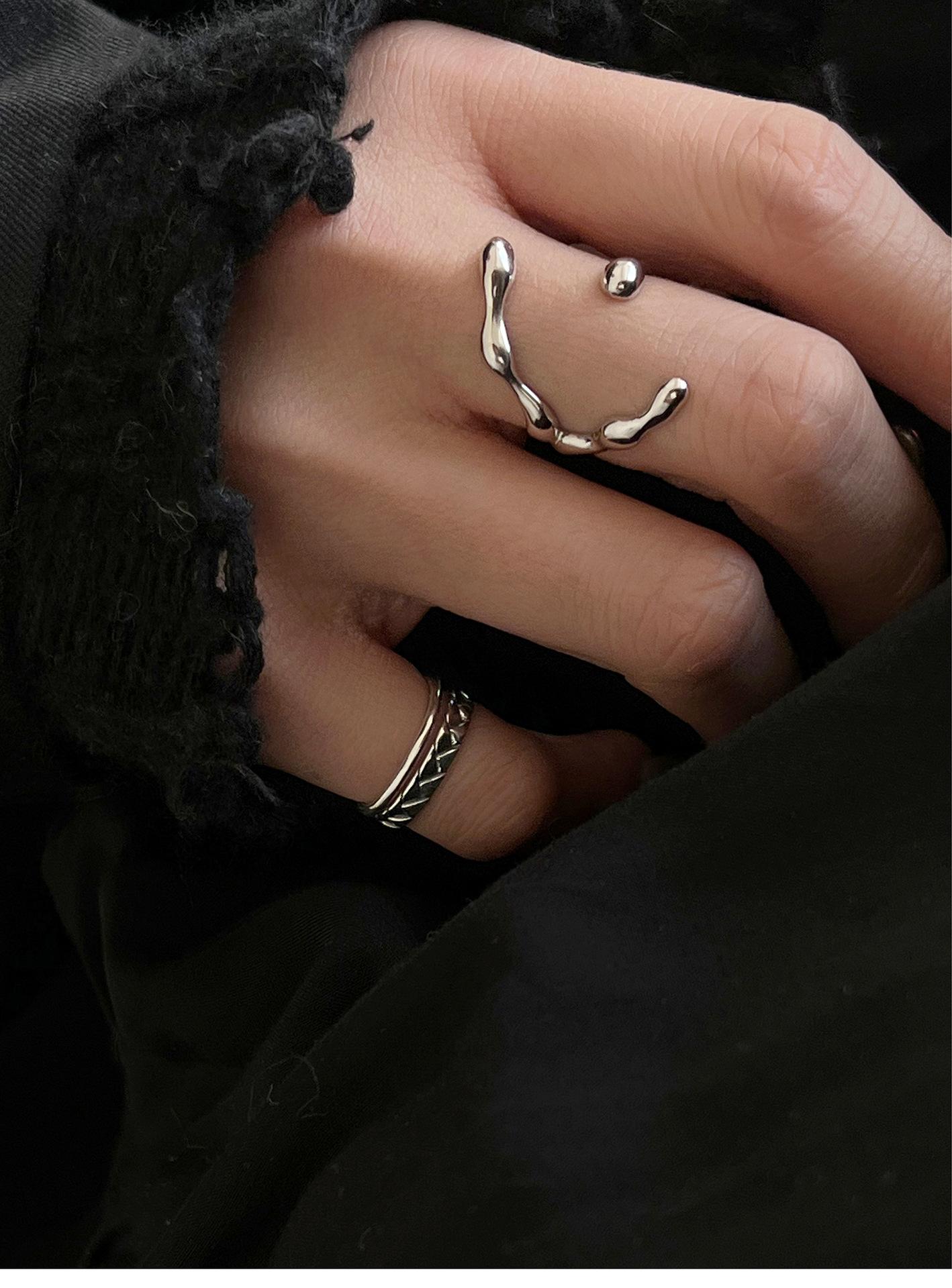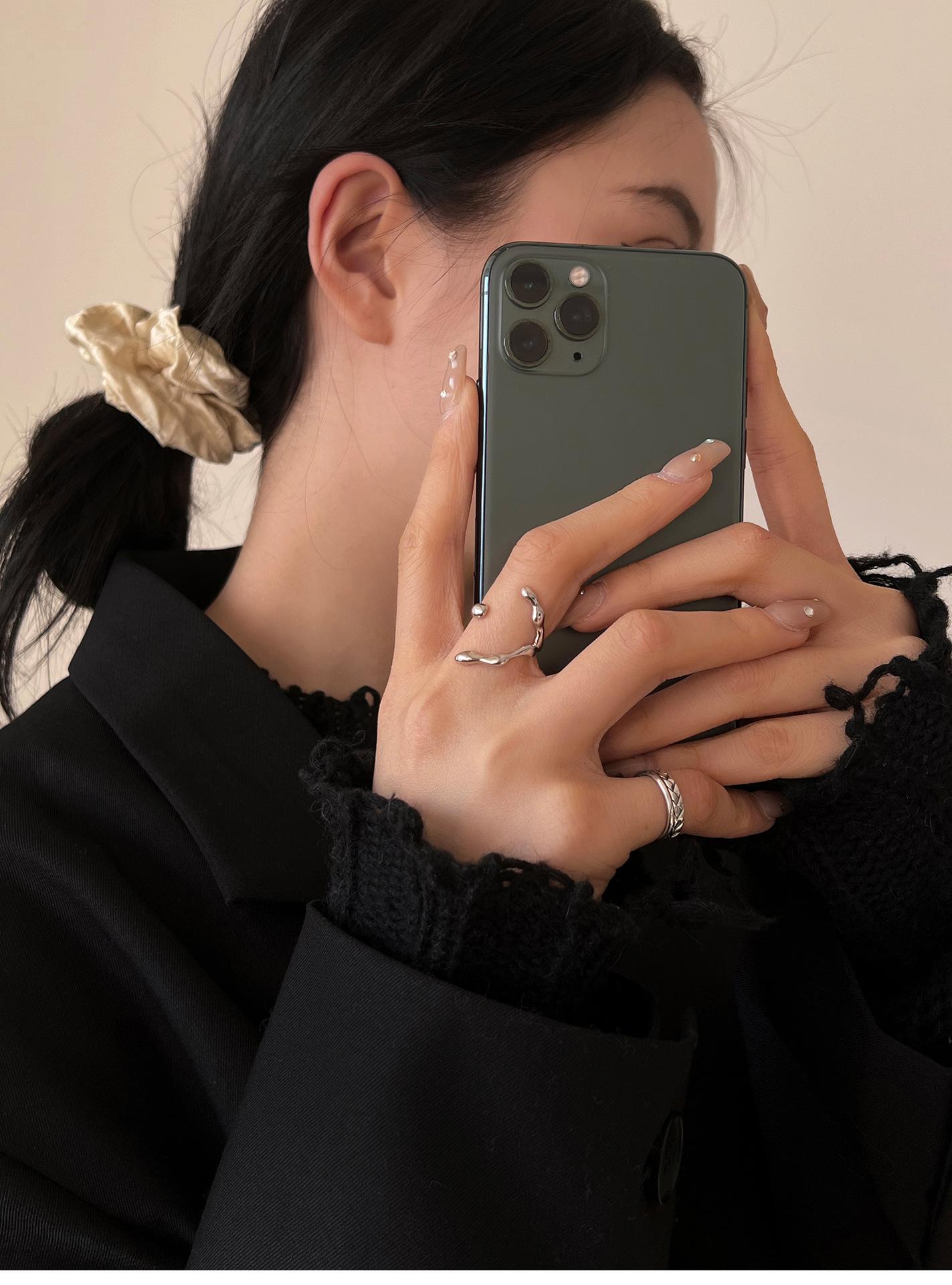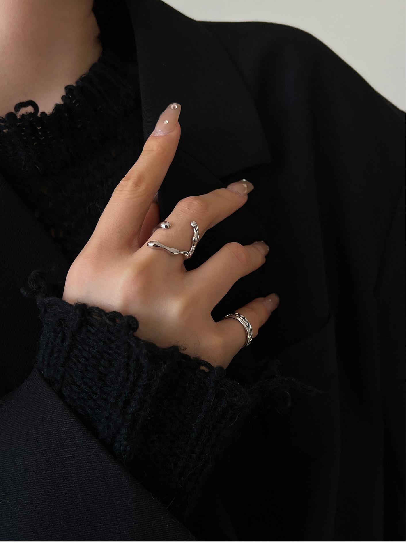 Anillo de Textura de Plata S925 Estilo Coreano para Mujer Retro Moderno Elegante Doble Capa Trenzado Abierto Anillo para Dedo Hip-Hop Anillo para Dedo Moda