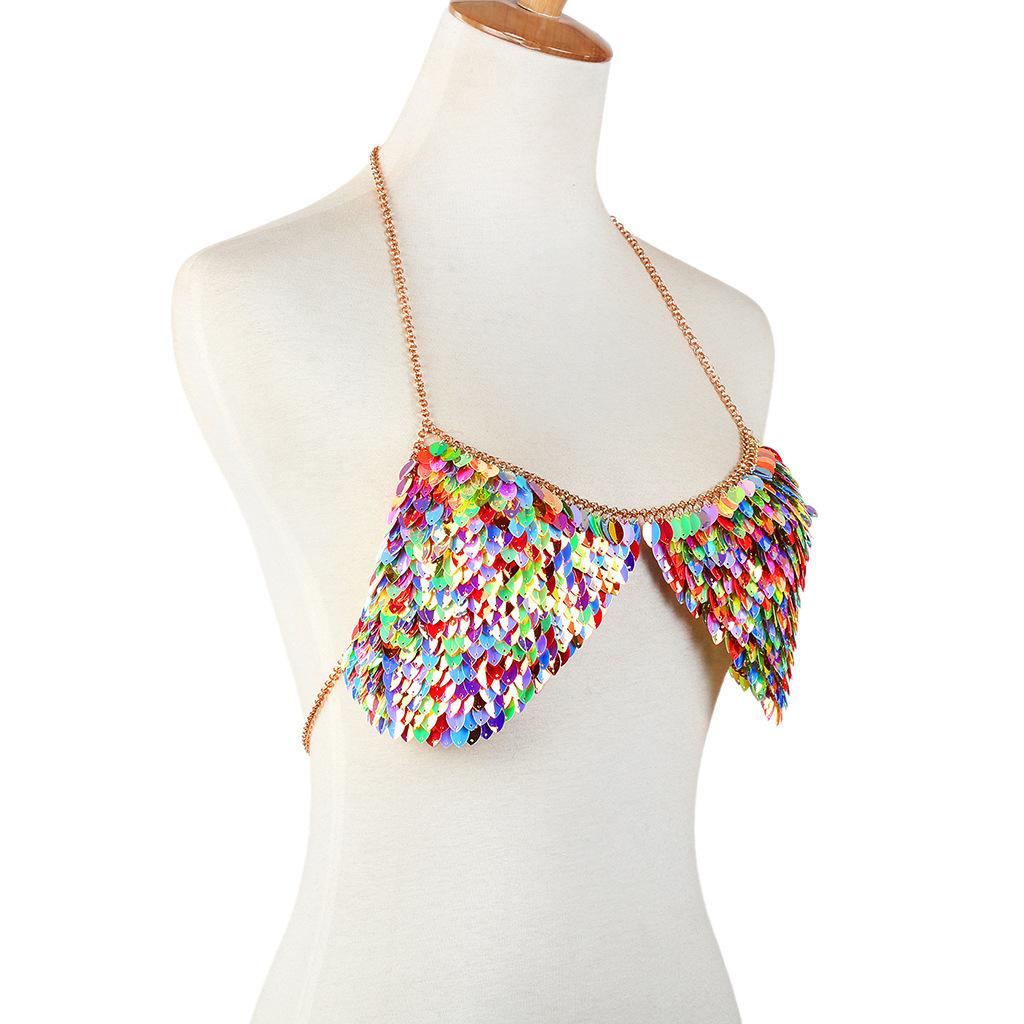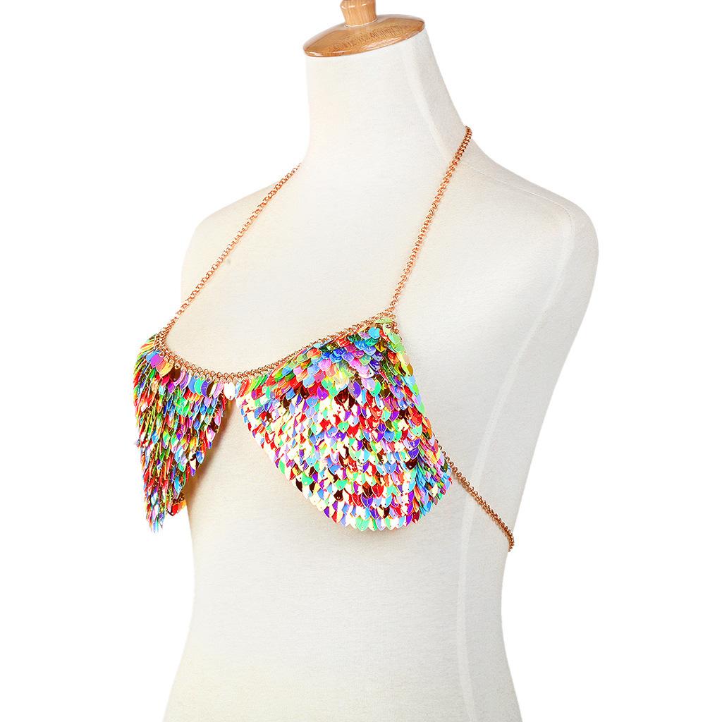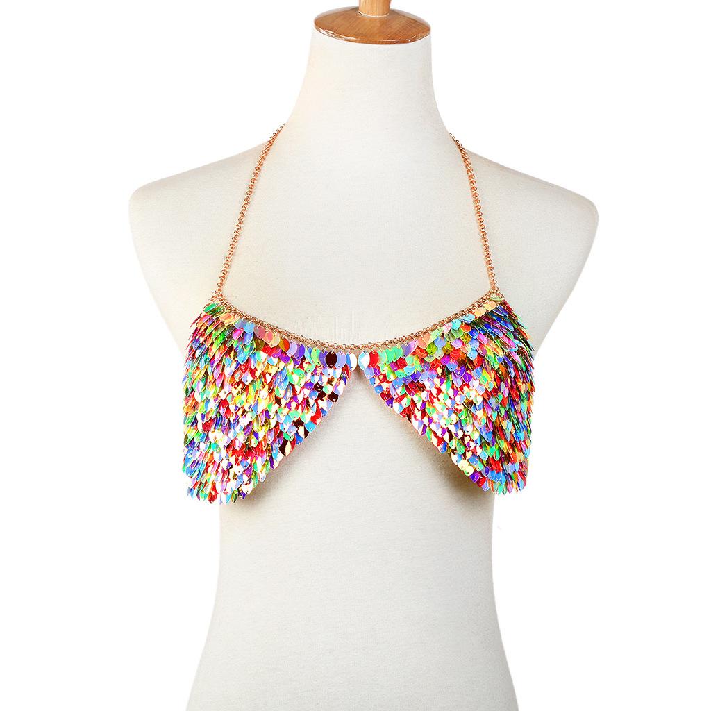Joyería Transfronteriza Europea y Americana Halter Sexy Colorido Cadena para el Pecho Lentejuela Acrílica Cadena para el Sujetador Playa Bikini Cadena para el Cuerpo