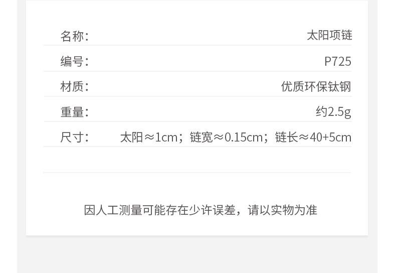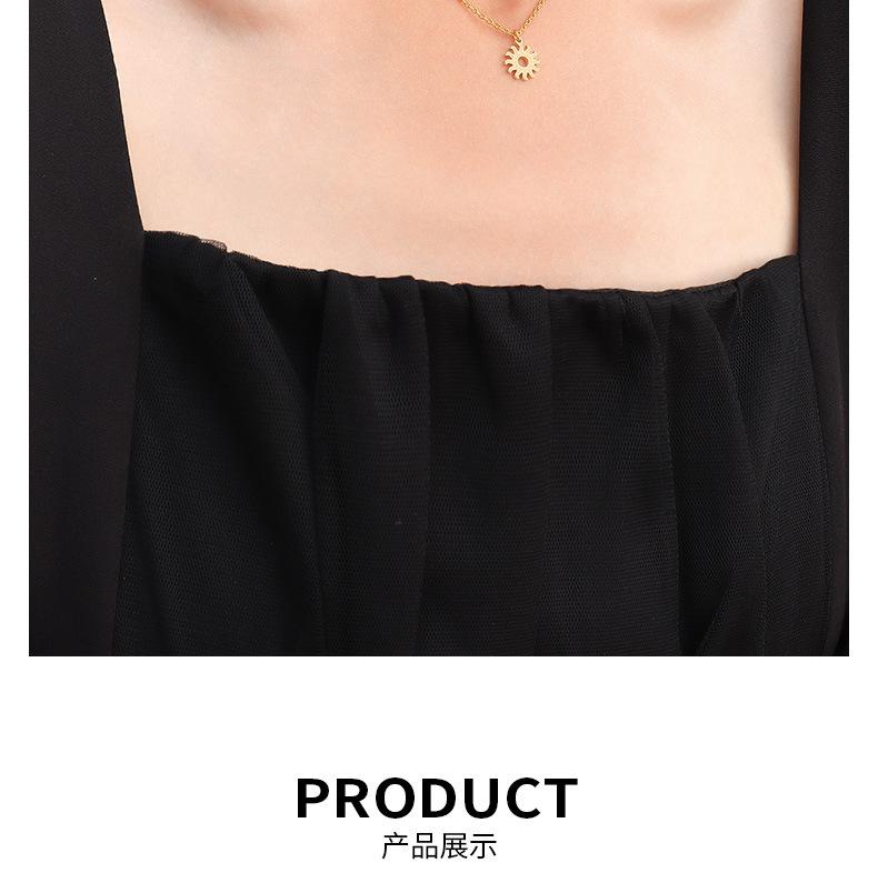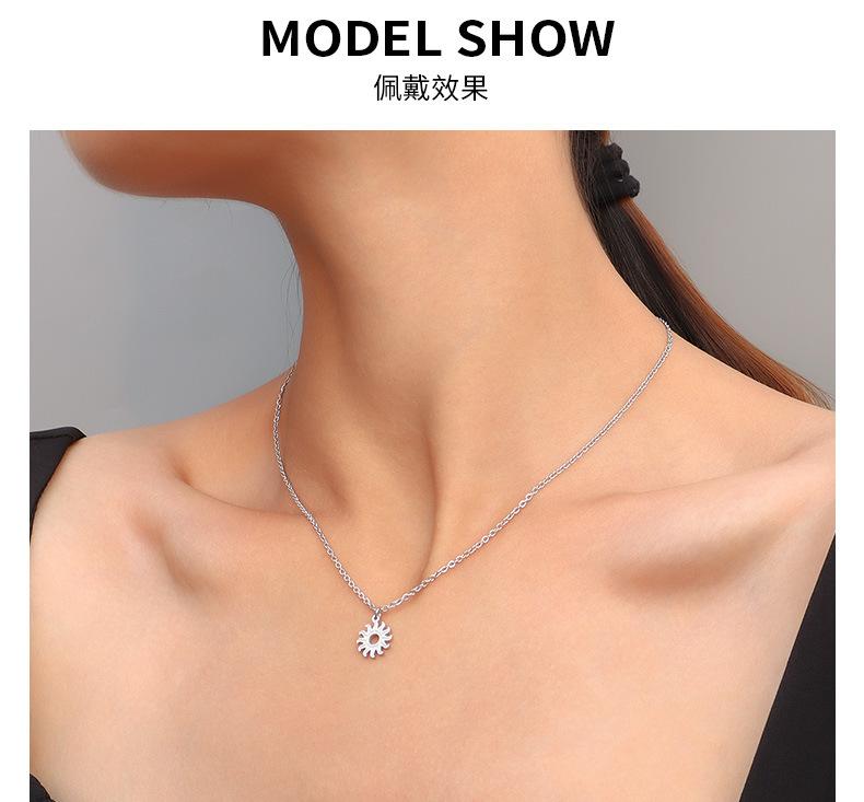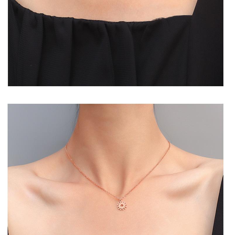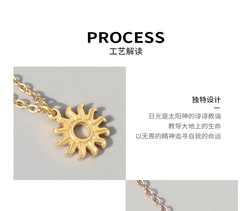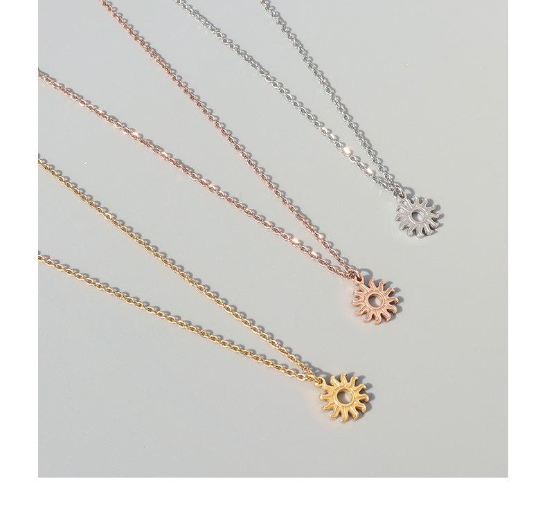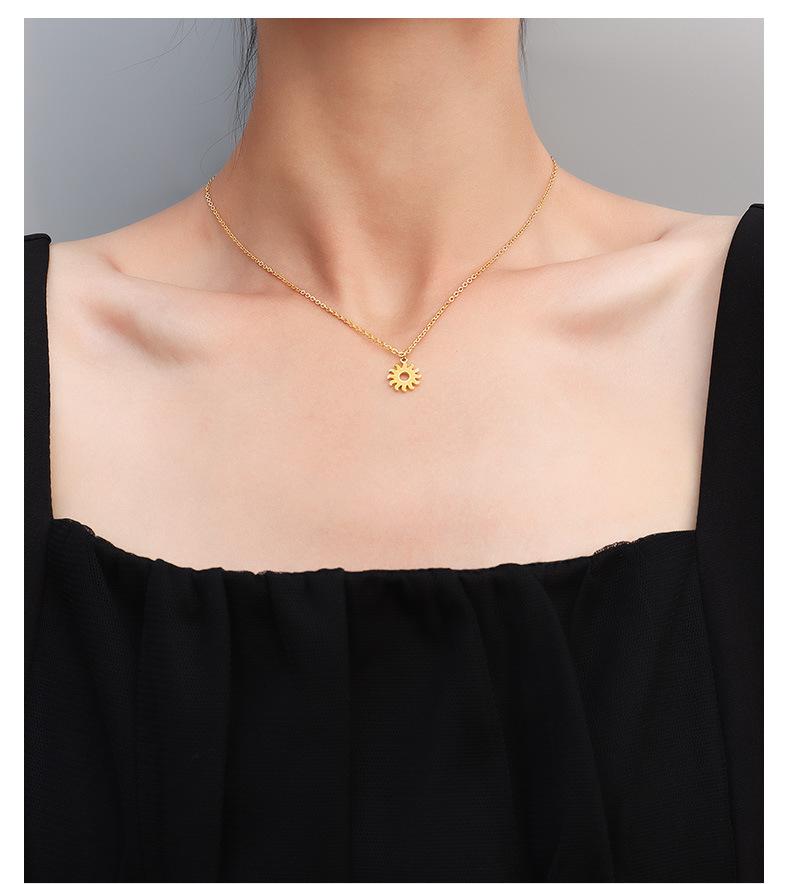 Collar con colgante de sol pequeño estilo retro europeo y americano, gargantilla de cadena de clavícula para mujer, acero de titanio, oro de 18 quilates, P725