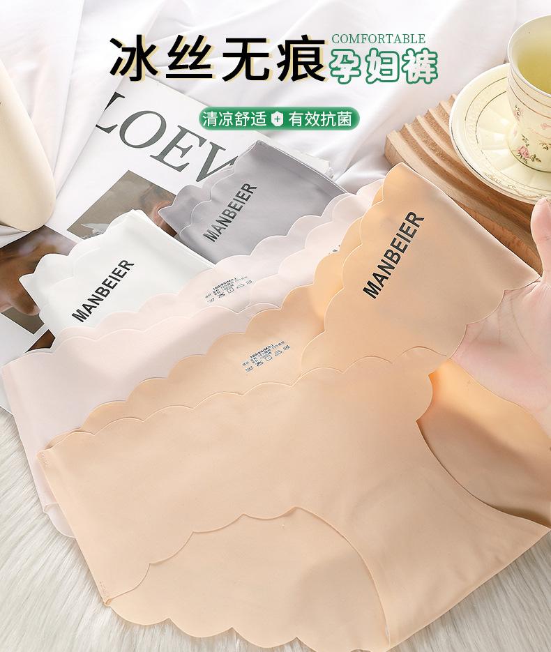 Ropa interior de seda helada de cintura baja para embarazadas, de algodón puro, para embarazadas tempranas y tardías, sin costuras, transpirable, de talla grande.