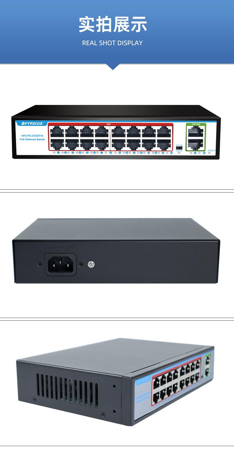 Conmutadores PoE de 18 puertos de 100 M de Source Factory, Plug and Play, monitoreo de red, compatibilidad con Ethernet, fuente de alimentación PoE