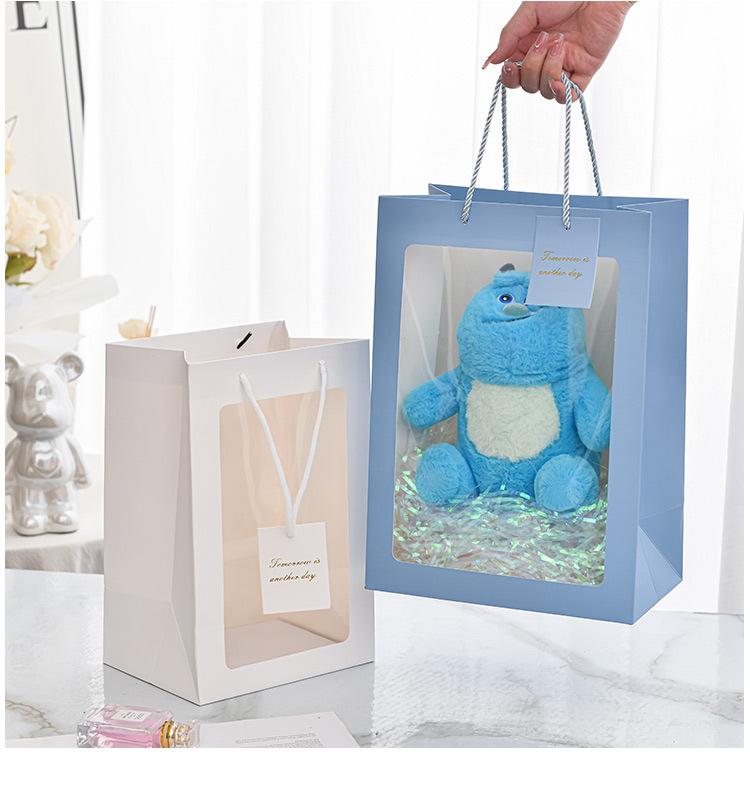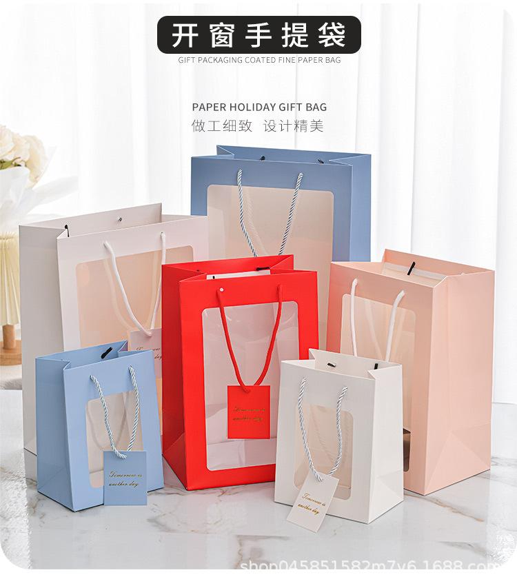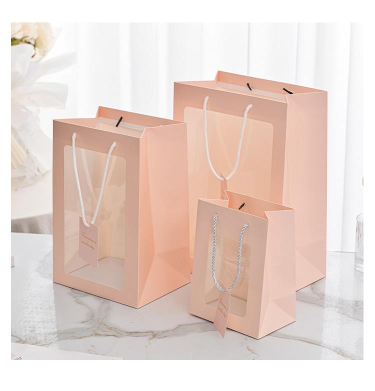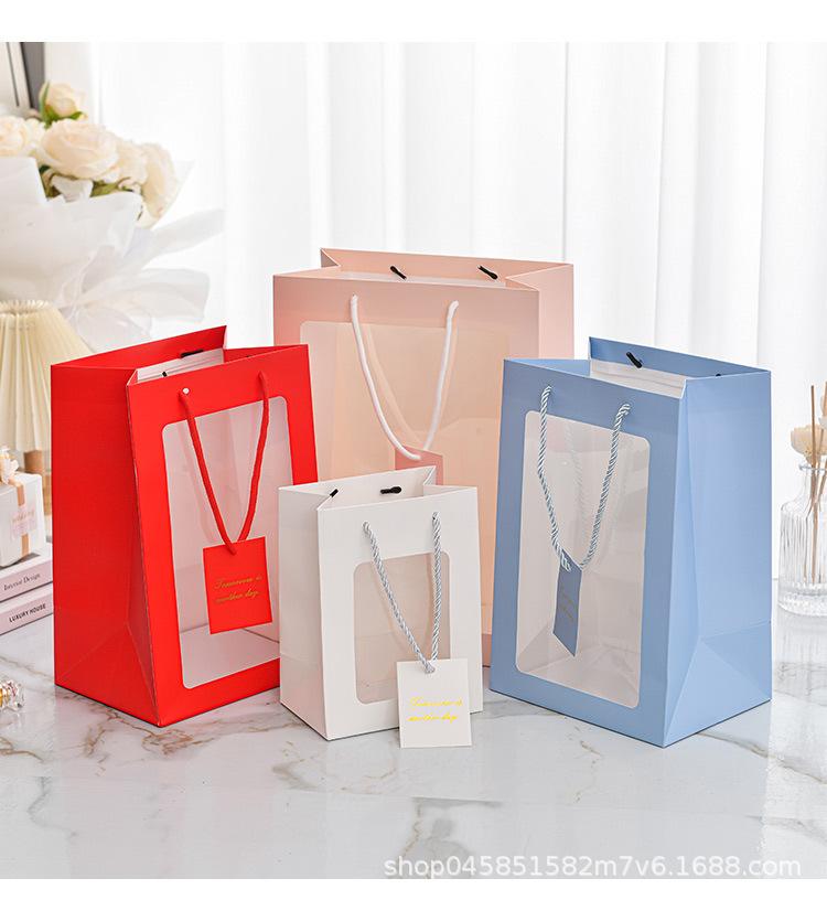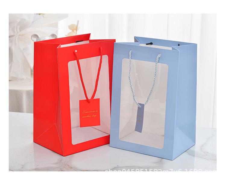 Bolso con ventana transparente para ramo de flores, bolsa de PVC con ventana para regalo de Internet, bolsa de mano para regalo.