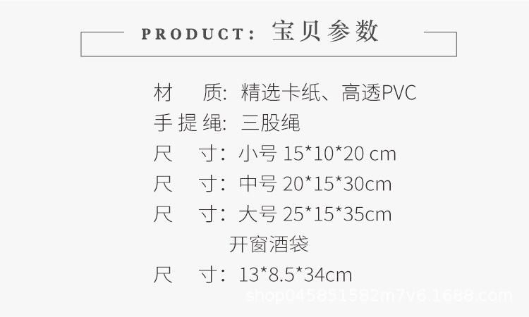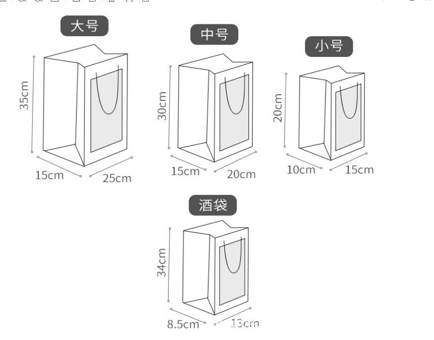 Blue window bag; White cardboard; Large (1) Length 25 Width 15 Height 35cm