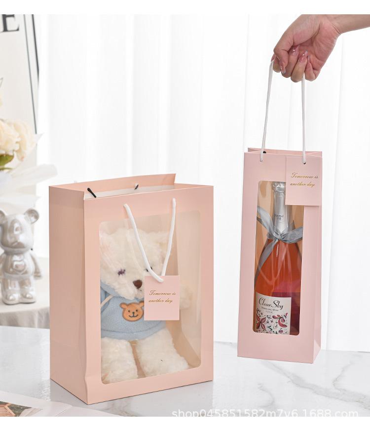 White window bag, Pink Window Bag, White open window wine bag, red window bag, blue window bag, Pink Window Wine Bag