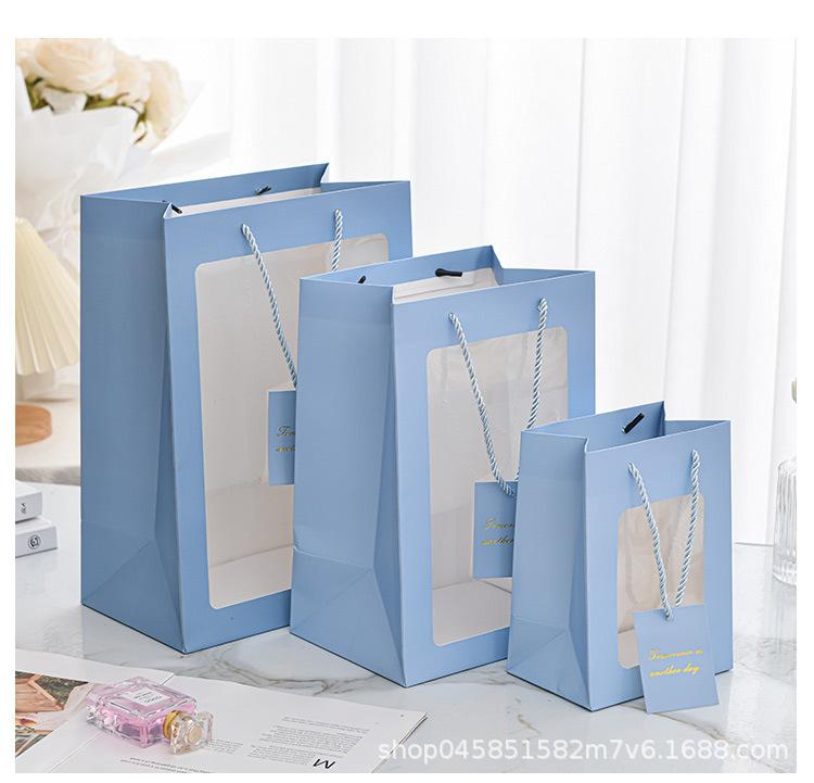 Blue window bag; White cardboard; small size (1) length 15 width 10 height 20cm