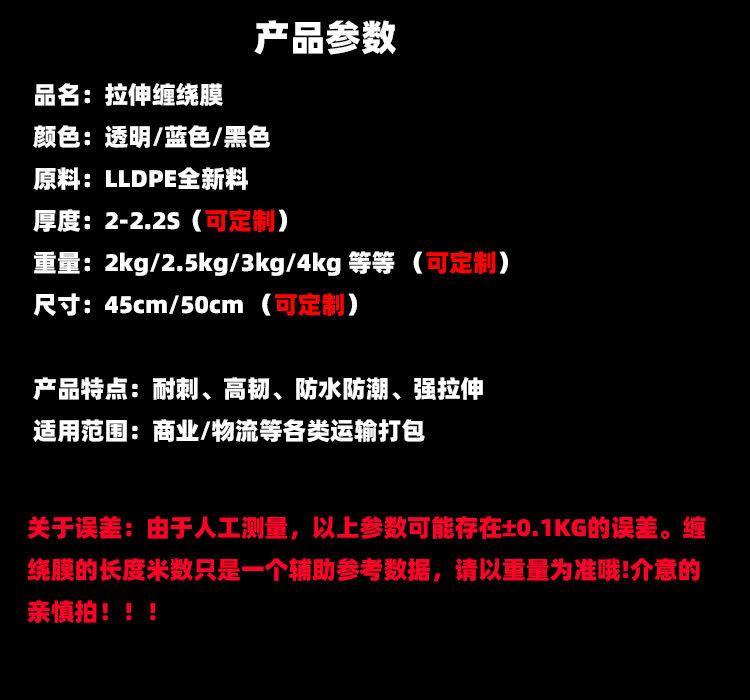 Se pueden personalizar diversas especificaciones de film estirable transparente, film estirable impreso y film estirable de color. Para más información, contacte con atención al cliente.