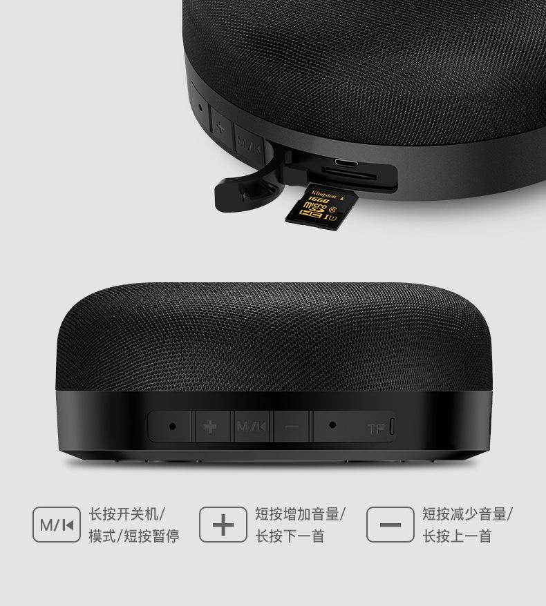 Características: Reproducción de música por Bluetooth, llamadas manos libres, reproducción de tarjeta TF, conexión en serie TWS, radio FM